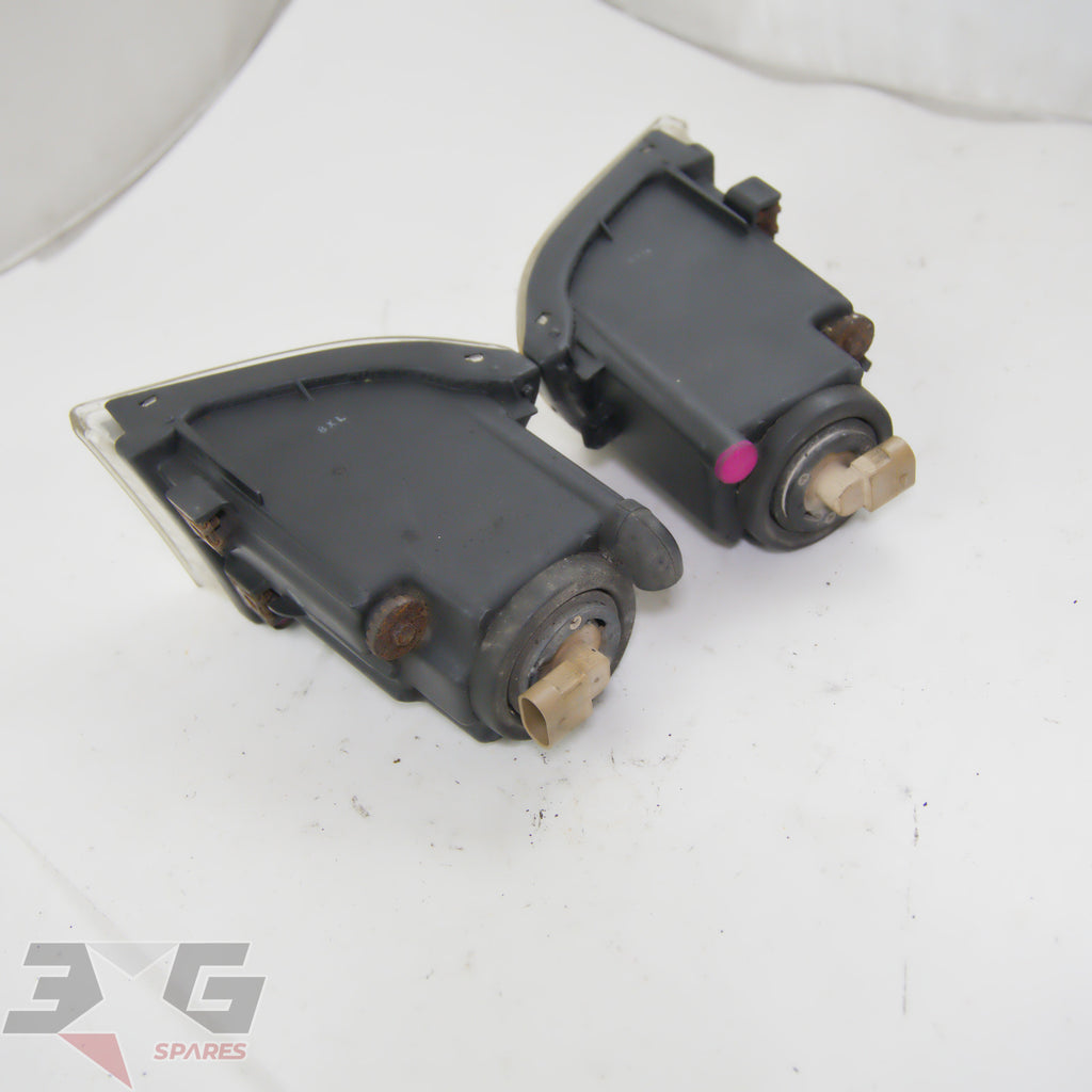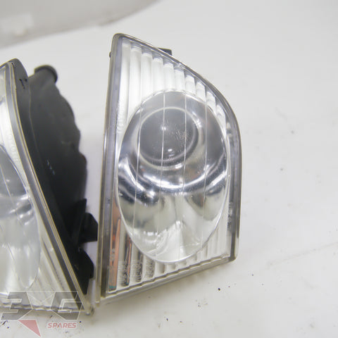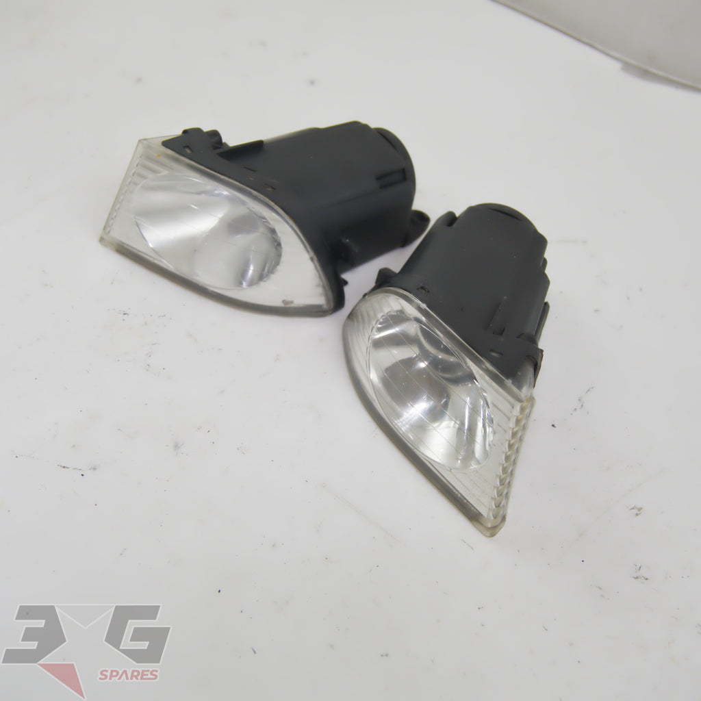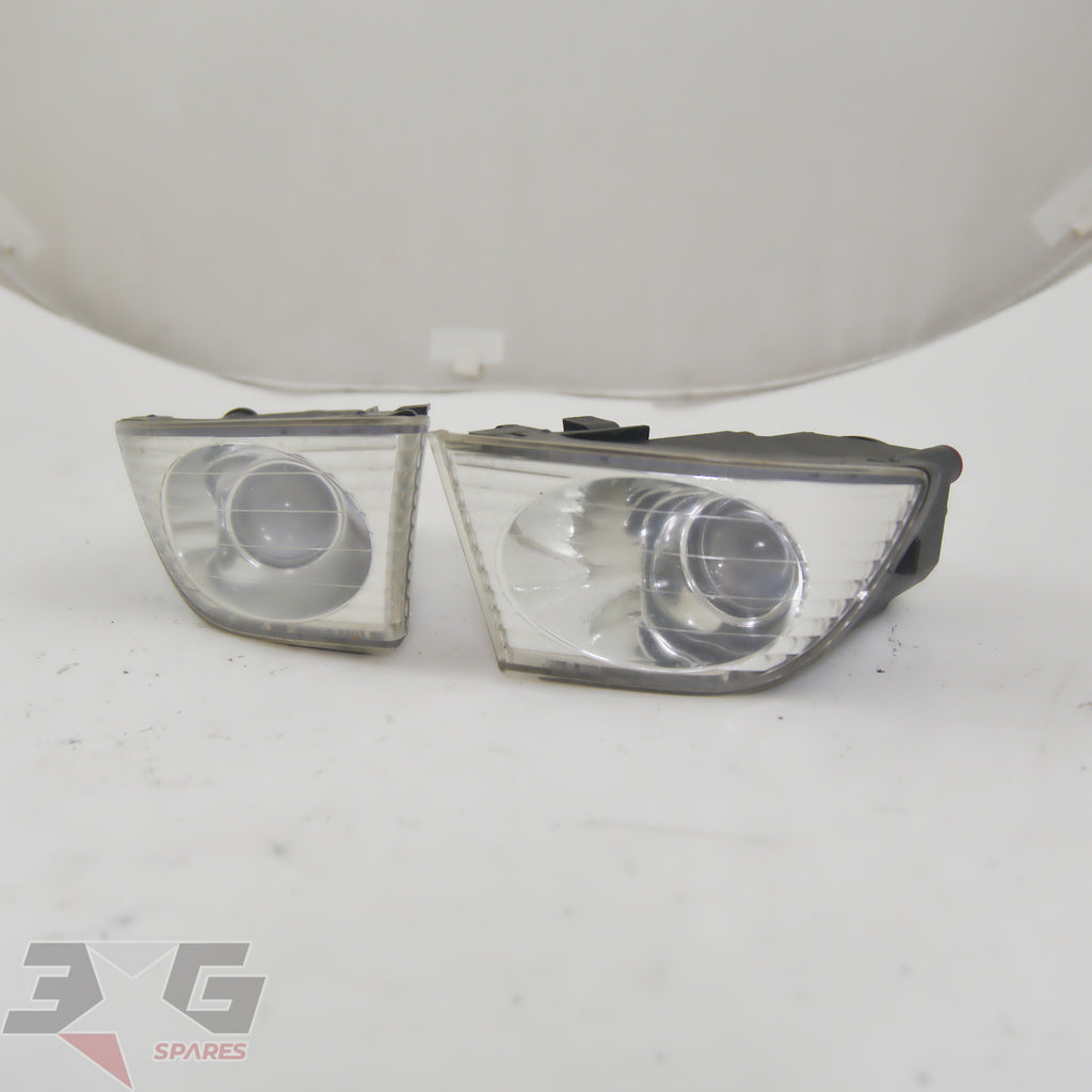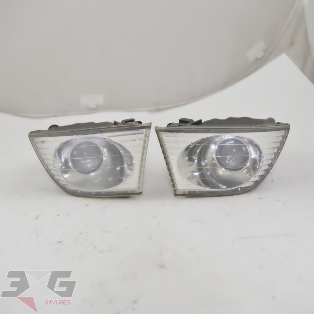 OEM factory projector fog lights, as removed from a SXE10 chassis Toyota Altezza Sedan, years 1998 - 2001.Condition: Good used condition as pictured. There is light UV damage and stone pitting as shown in the photos. There is also some debris within the right side light.