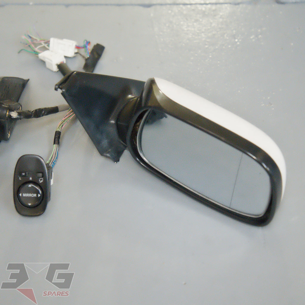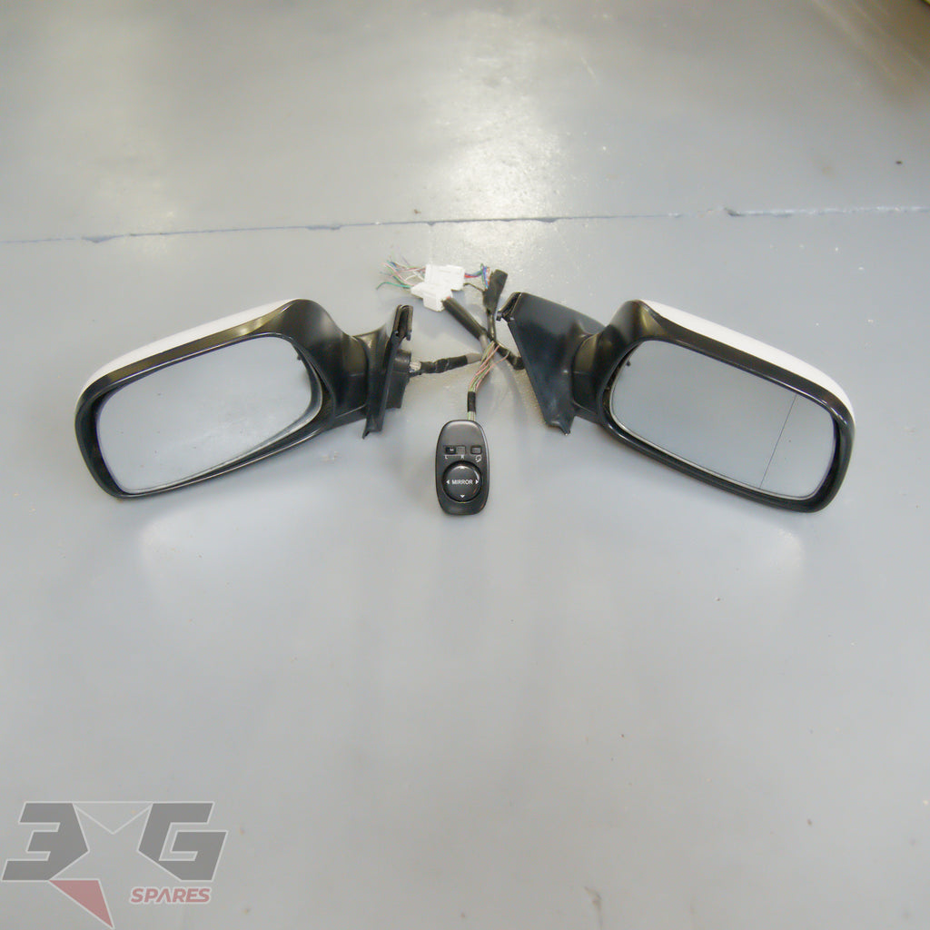 OEM factory power folding mirror set as removed from a SXE10 chassis Toyota Altezza Sedan, years 1998 - 2005.