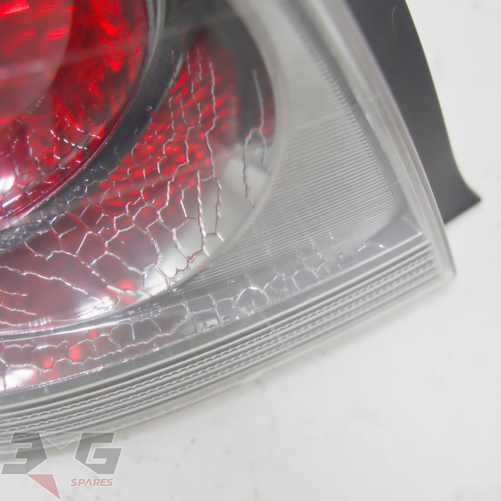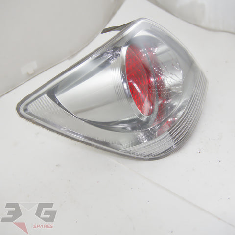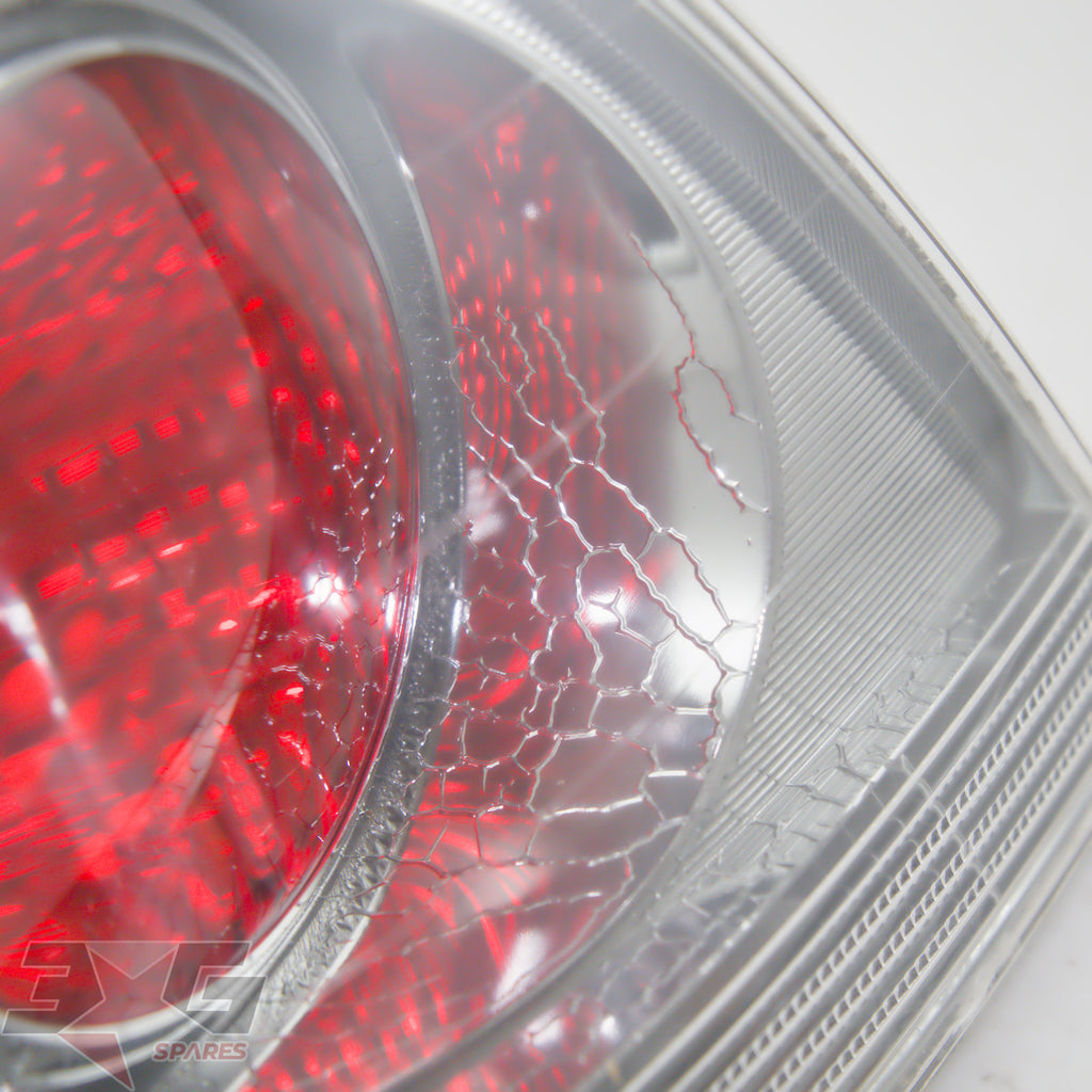 OEM factory left side tail light, as removed from a JCE10 chassis Toyota Altezza Gita Wagon, years 2001 - 2005.This light has the chrome finish inside as pictured.This will also fit Lexus IS300 Wagon years 2001 - 2005.Condition: Good used condition with light surface scratches as pictured. There is crazing of the inner chrome finish as can be seen in photos 4-8.