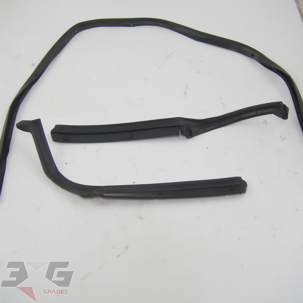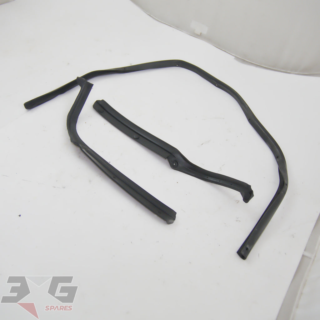 OEM factory hood or bonnet rubber weatherstrip seal set including left and right headlamp sealing rubbers and bonnet to radiator support seal, as removed from a JZX100 chassis Toyota Chaser Tourer V, years 1996-2001.