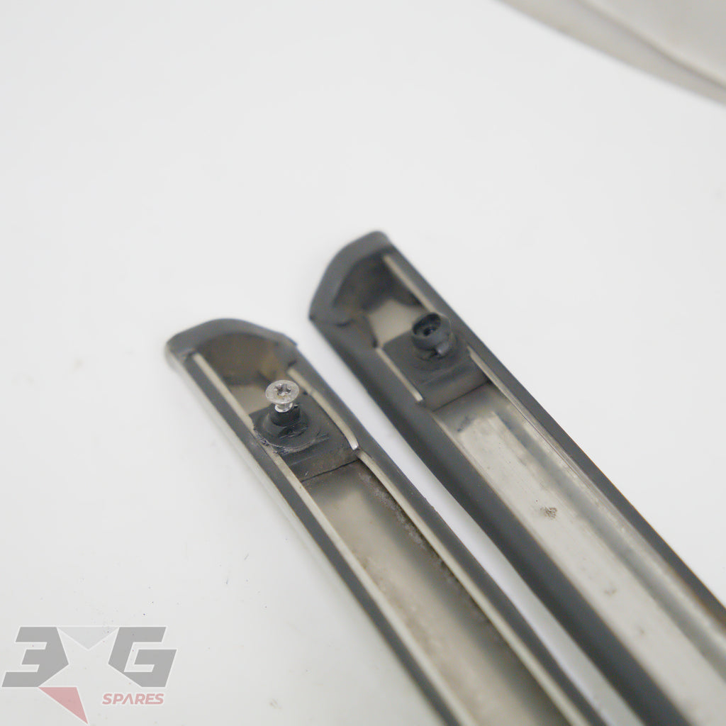 Condition: Good used condition as pictured. There are scratch marks on all mouldings as shown in the photos. There is some slight bending around some of the mounting clips on these as can be seen in photo 14-18.