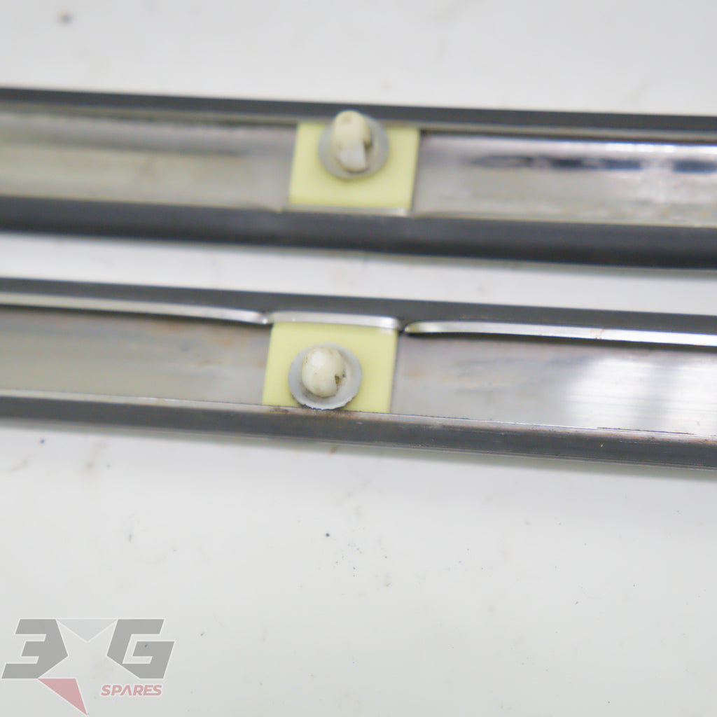OEM factory set of four door lower mouldings or trims, these mount to the bottom of each door near the side skirt. As removed from a JZX100 chassis Toyota Chaser Tourer V, years 1996-2001.