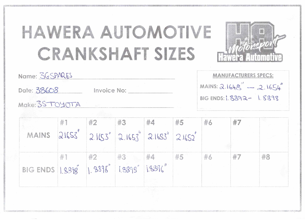 Genuine used unit removed from a running vehicle then cleaned & checked out by local shop & all sizes in spec.
