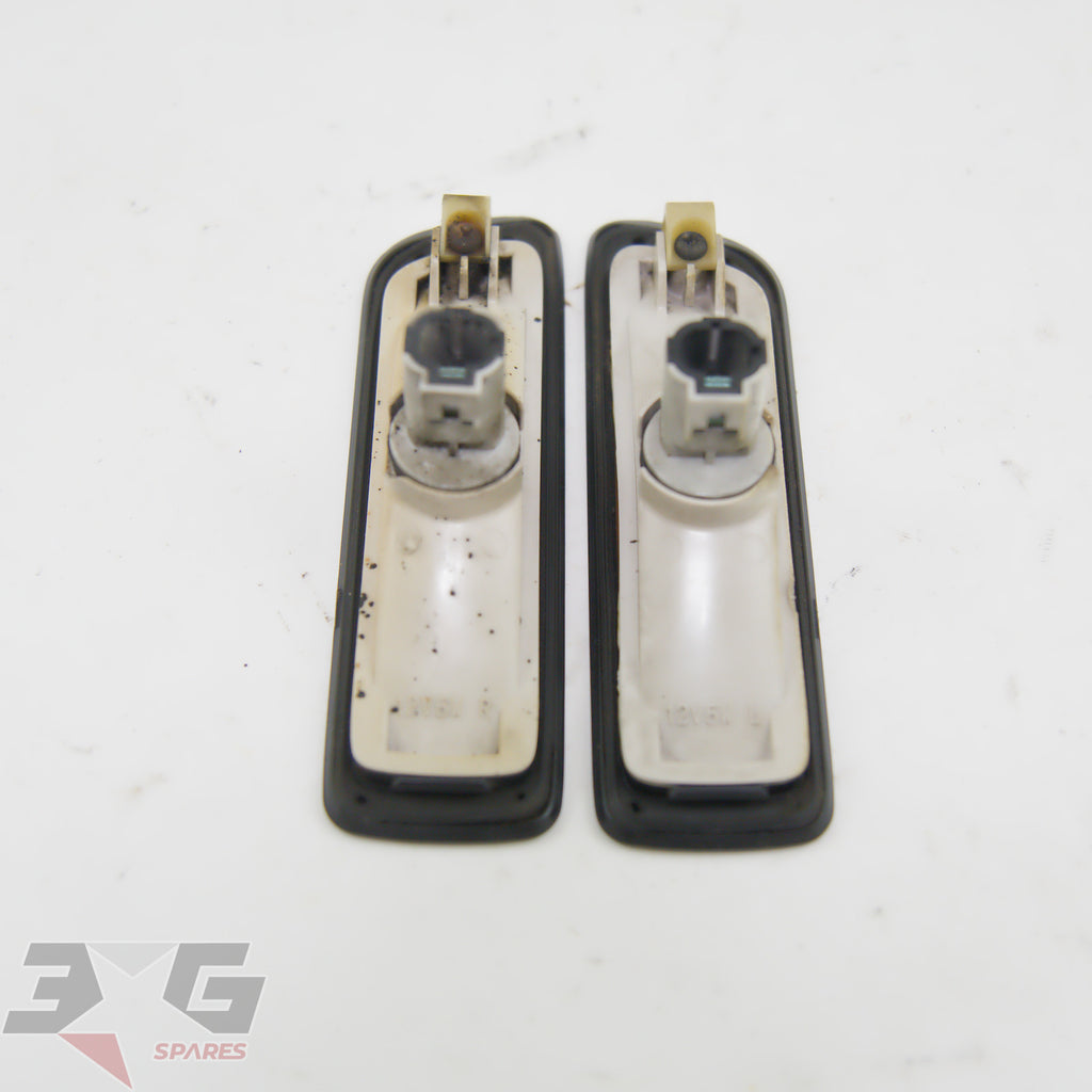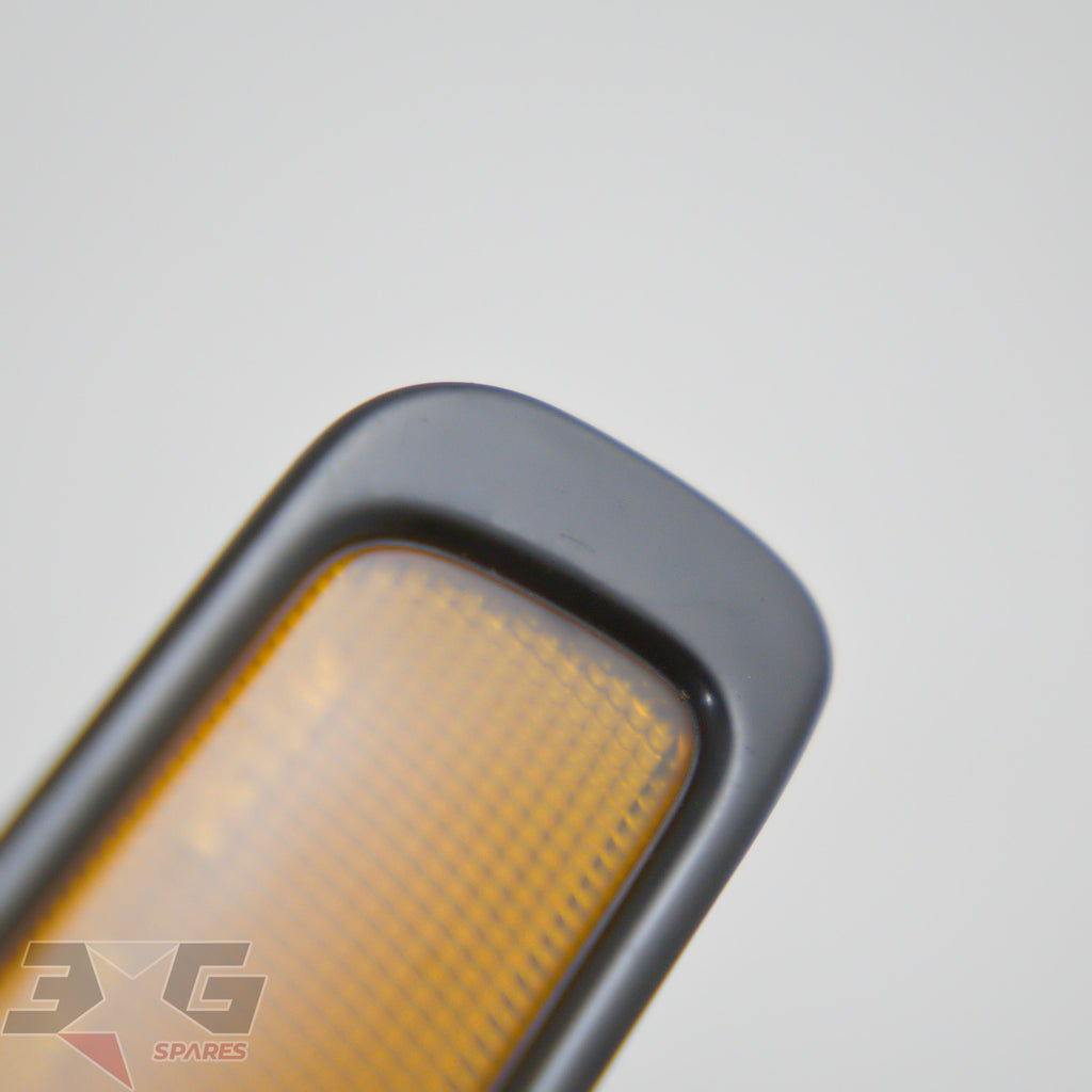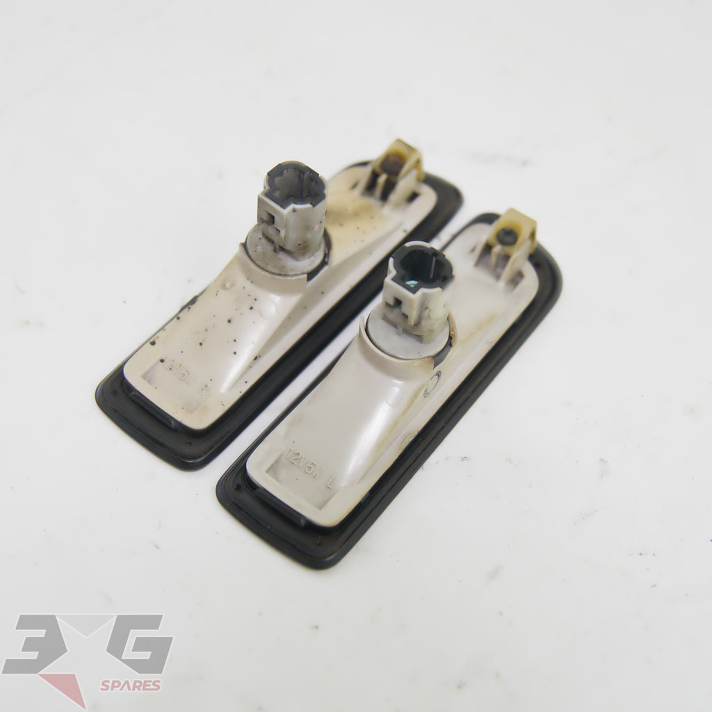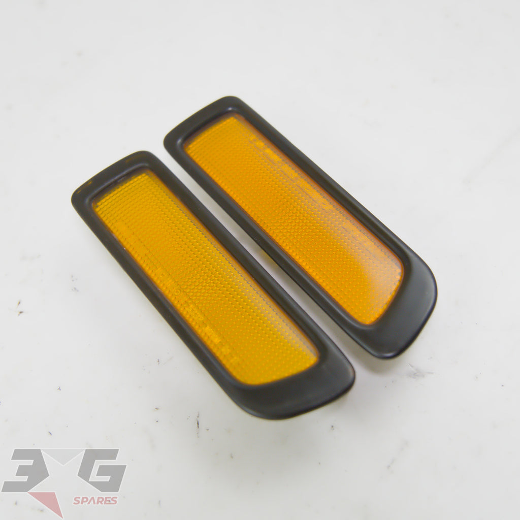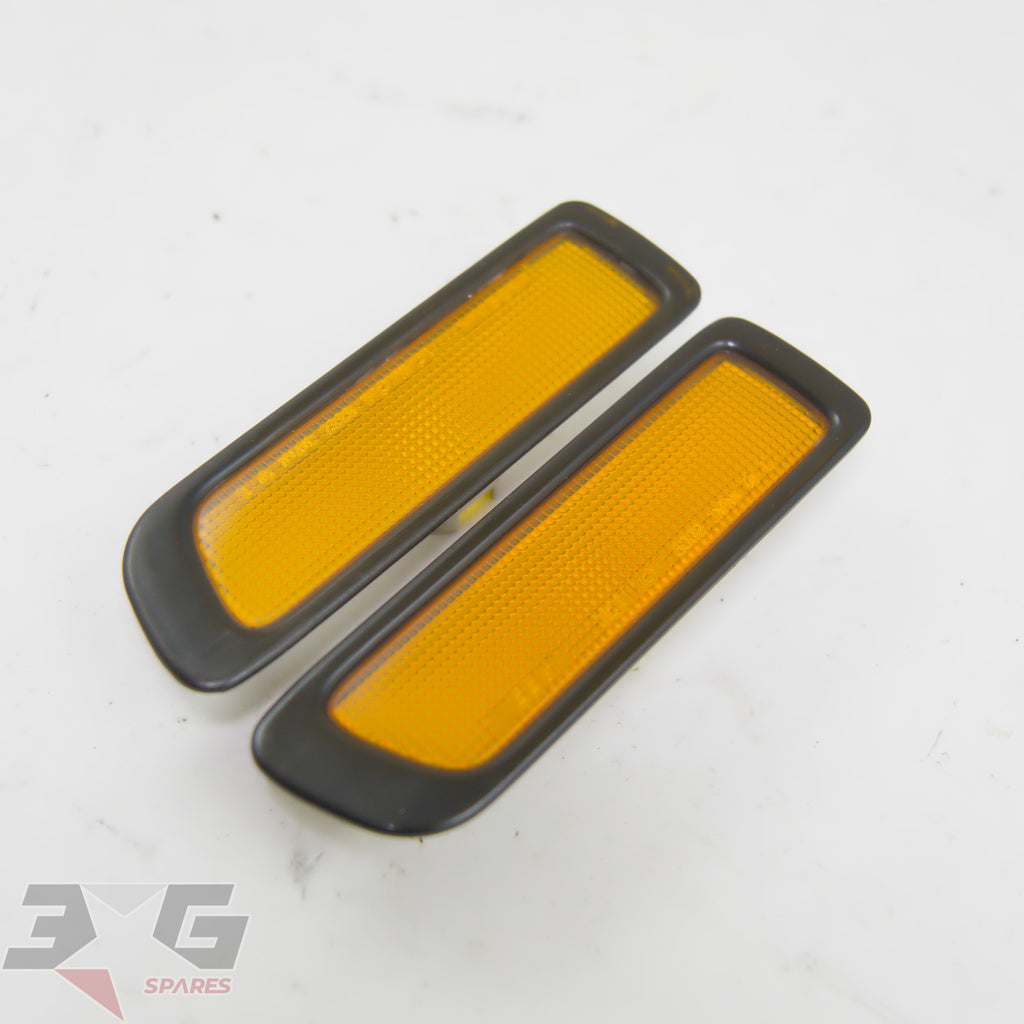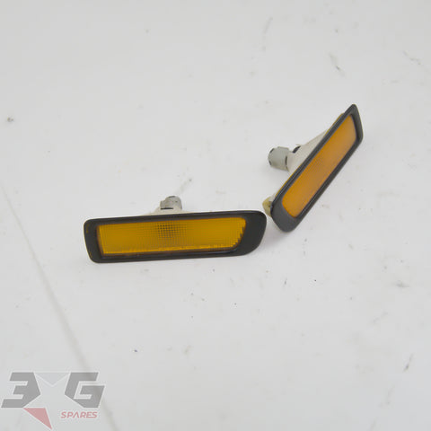 OEM factory fender side markers or guard indicator lamps, as removed from a R33 chassis Nissan Skyline, years 1993 - 1998.Please NOTE: these will not suit BCNR33 Skyline GT-R.Condition: Good used condition as pictured. There are light scrapes on the black surround particularly on the right light as shown in the photos 17-19.
