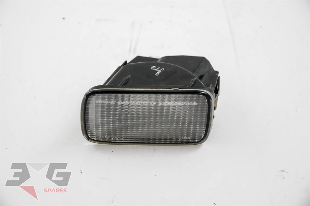 OEM Nismo clear type left front bumper turn signal or indicator light, removed from an R34 chassis Nissan Skyline, years 1998 - 2002.Condition: Good used condition as pictured. There are some stone chips and scratches to the lens as shown in the photos. There is a small crack on the housing as shown in photos 7 and 8.