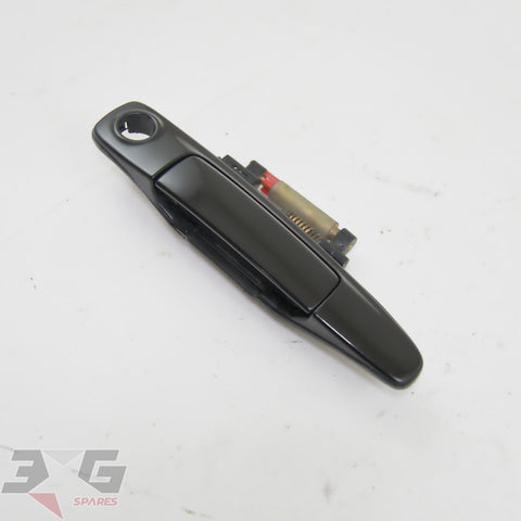 OEM factory right or drivers side front exterior door handle, as removed from a R34 Nissan Skyline, years 1998 - 2002.