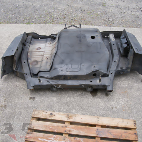 OEM factory rear boot or trunk floor panel section cut, as removed from a R34 chassis Nissan Skyline Sedan, years 1998 - 2002.