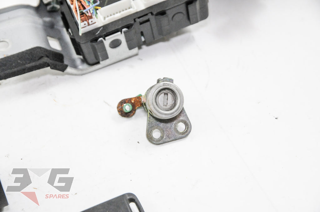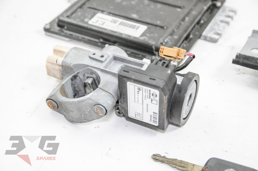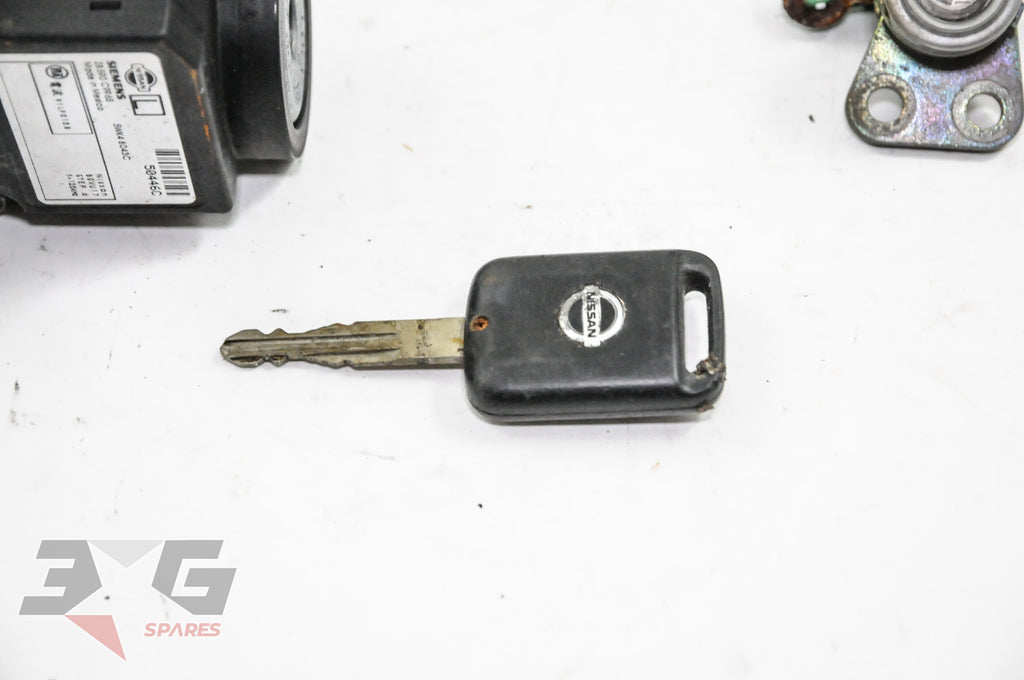 OEM factory smart key setup which includes engine ECU, body control unit or BCU, door lock barrel, ignition barrel and key fob set, as removed from a Z33 chassis Fairlady Z, years 2005 - 2007.