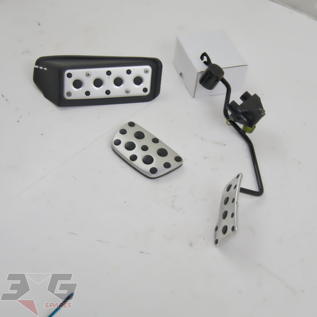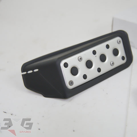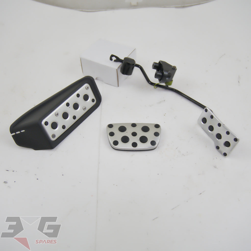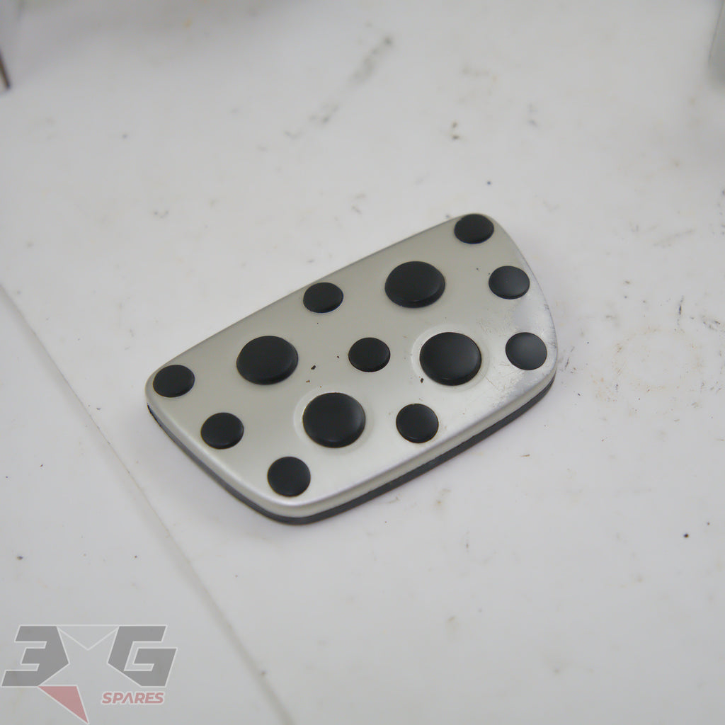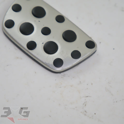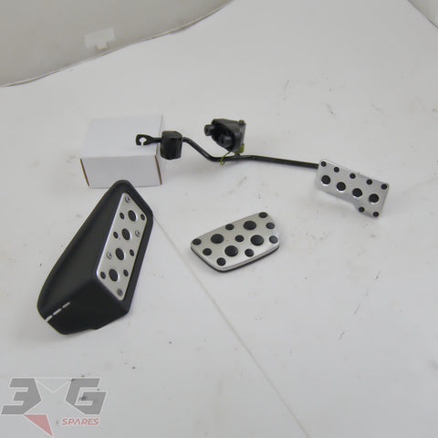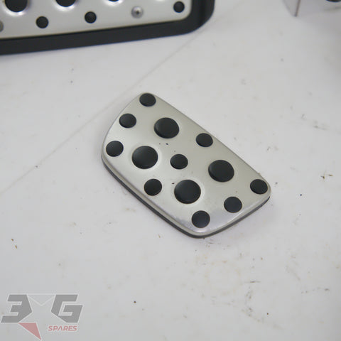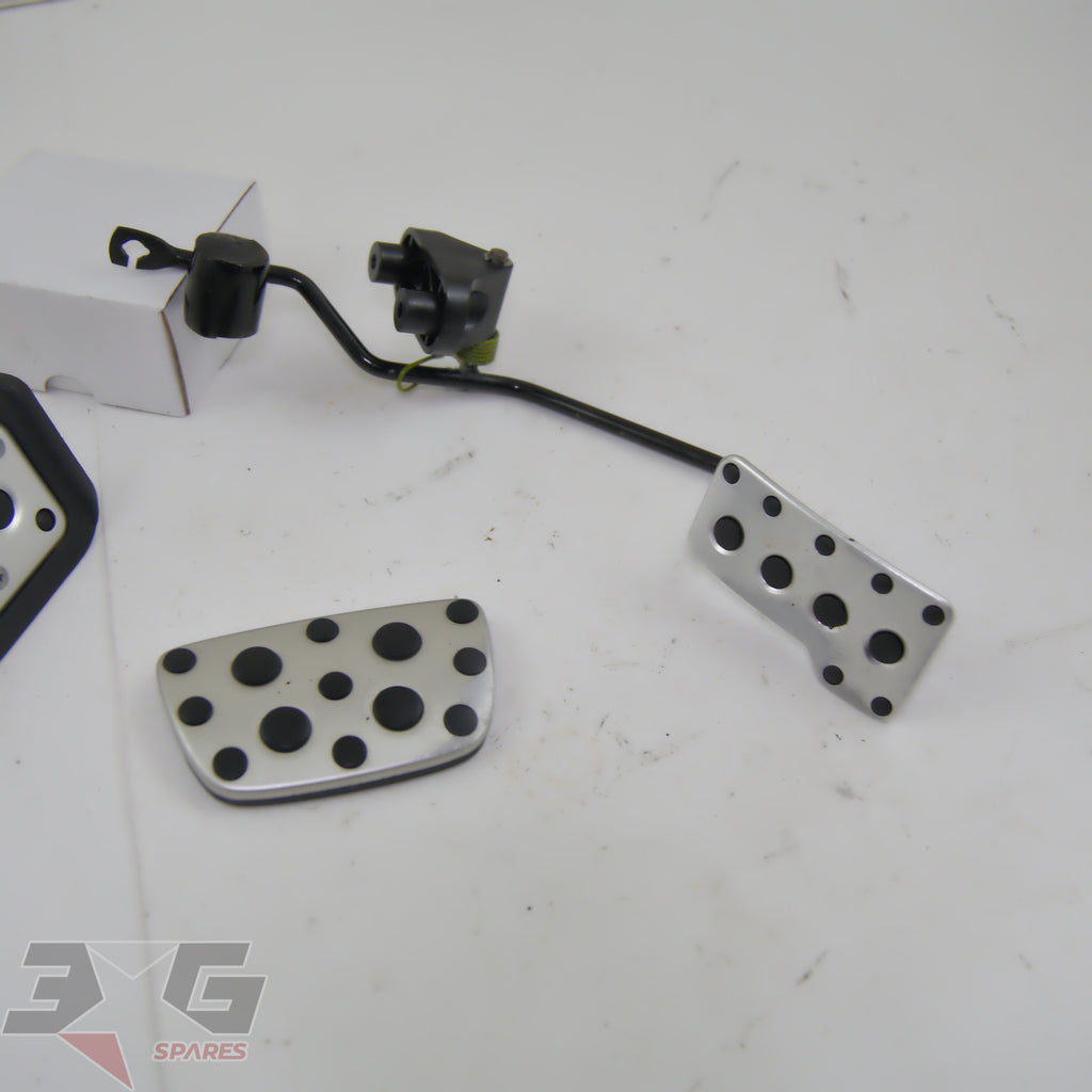OEM factory optional auto sports pedal set, includes accelerator or gas pedal, brake pedal cover and dead pedal, removed from a right hand drive (RHD) JCE10 chassis Toyota Altezza Gita Wagon, years 2001 - 2005.