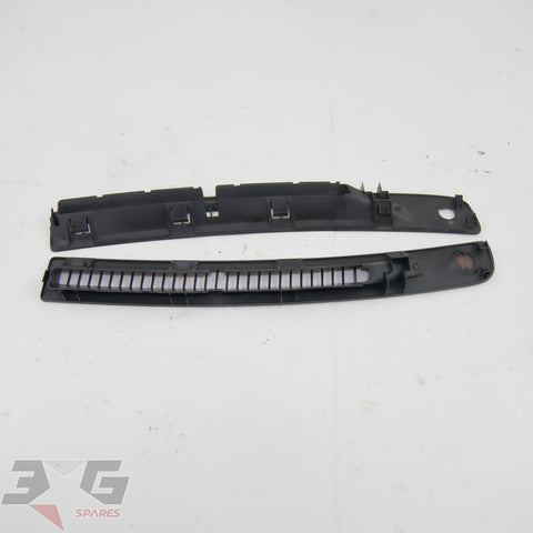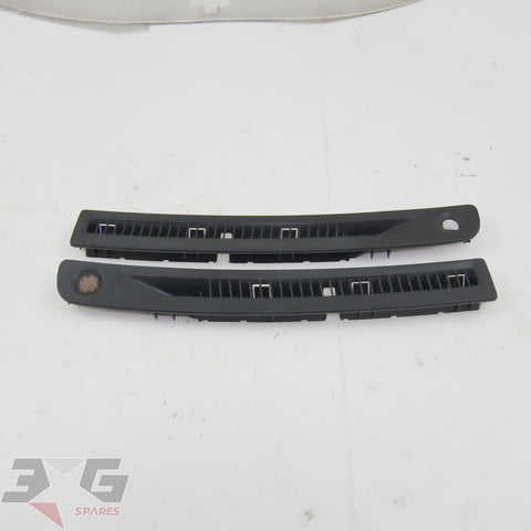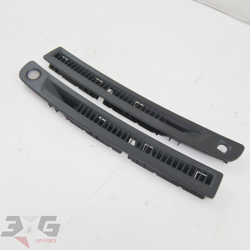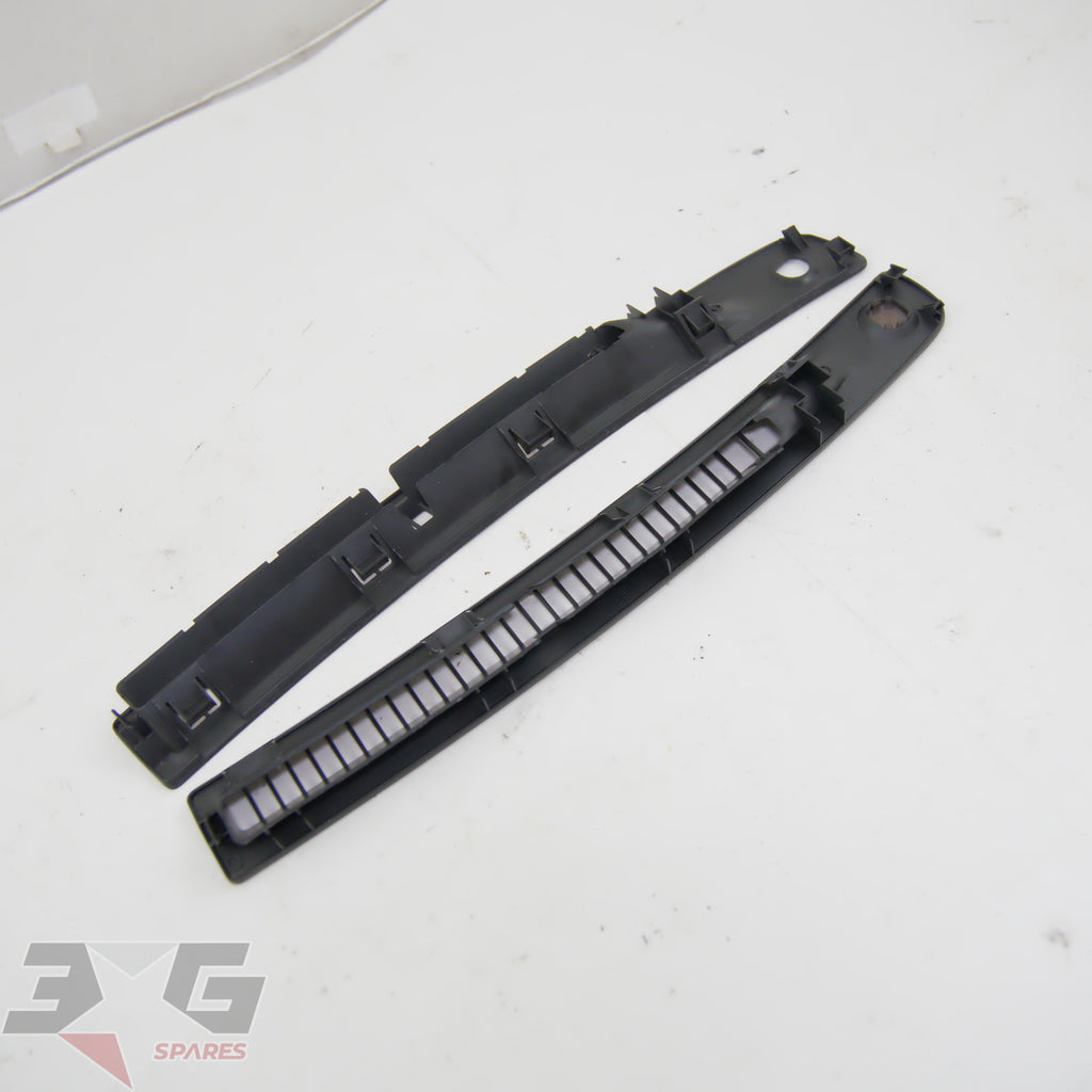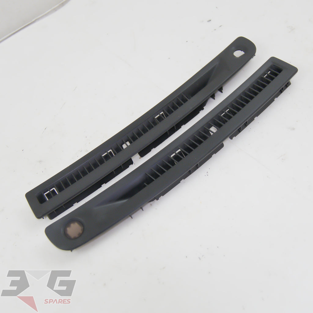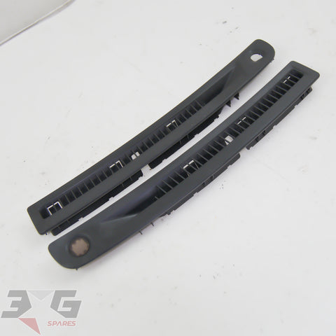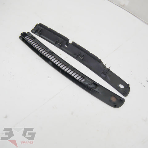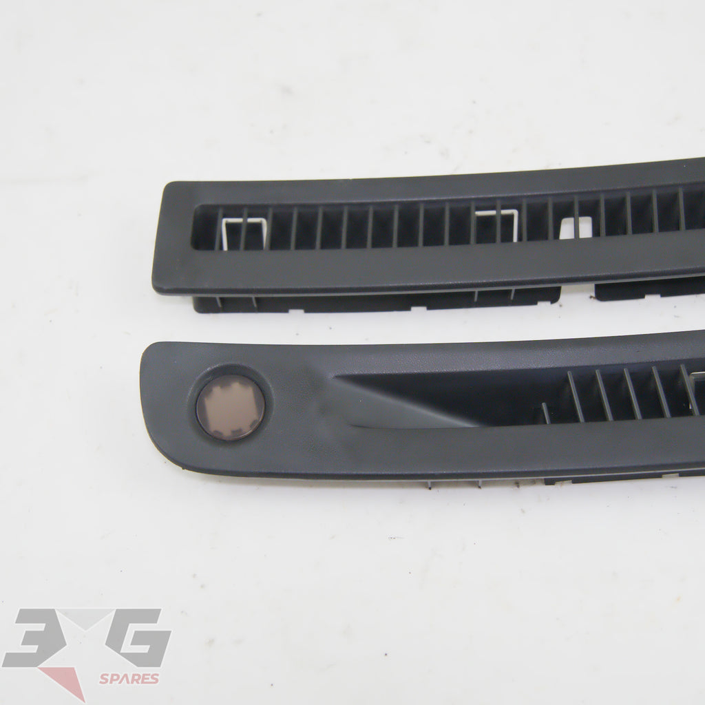 OEM factory top dash or windscreen demister vents, as removed from a R34 chassis Nissan Skyline, years 1998 - 2002.This vent set has the small trim on the right side which covers the auto headlight sensor.Condition: Good used condition as pictured, there are some scratches as shown in photos 9-11.
