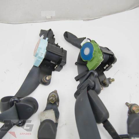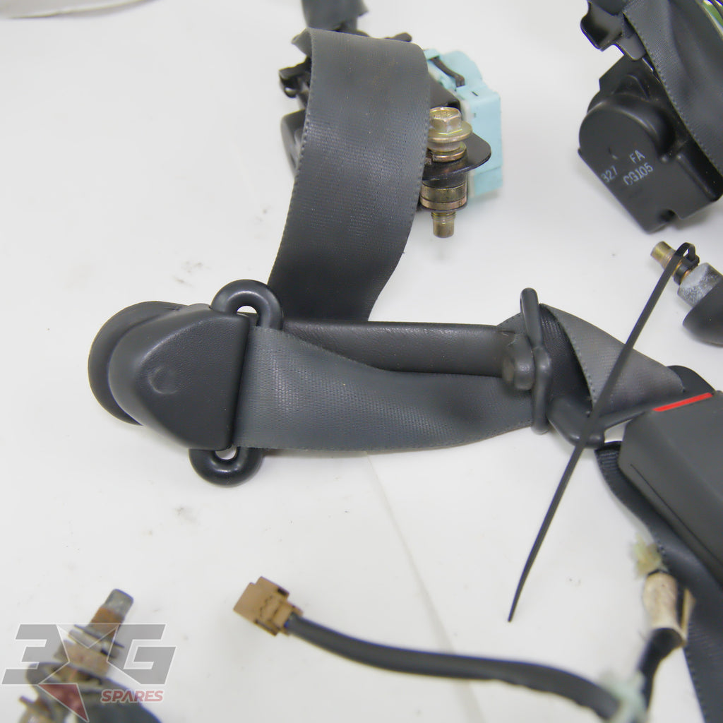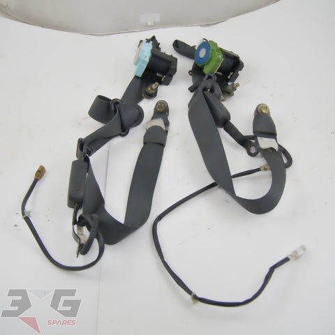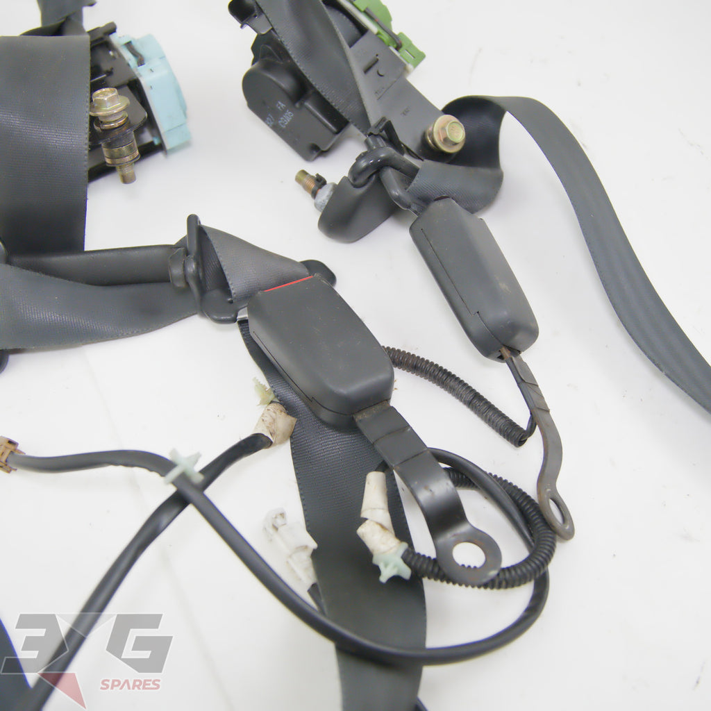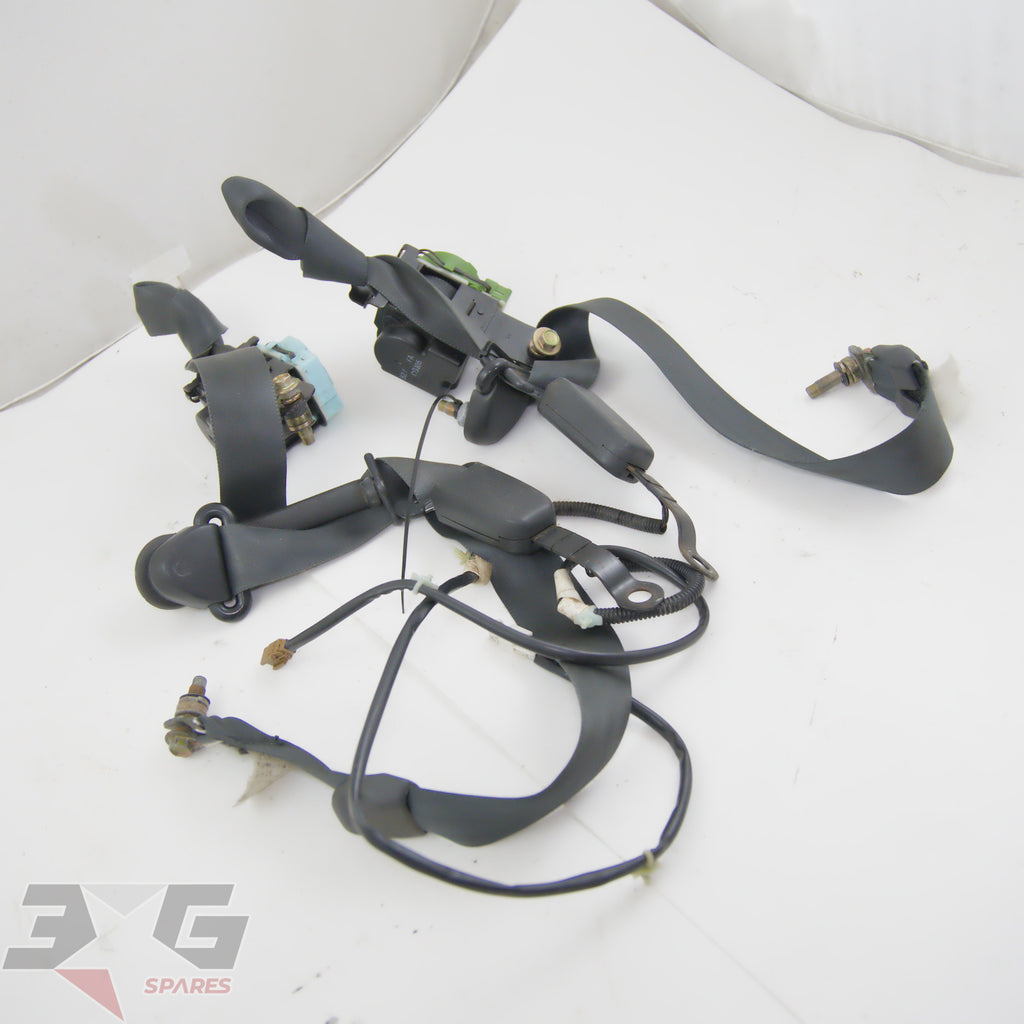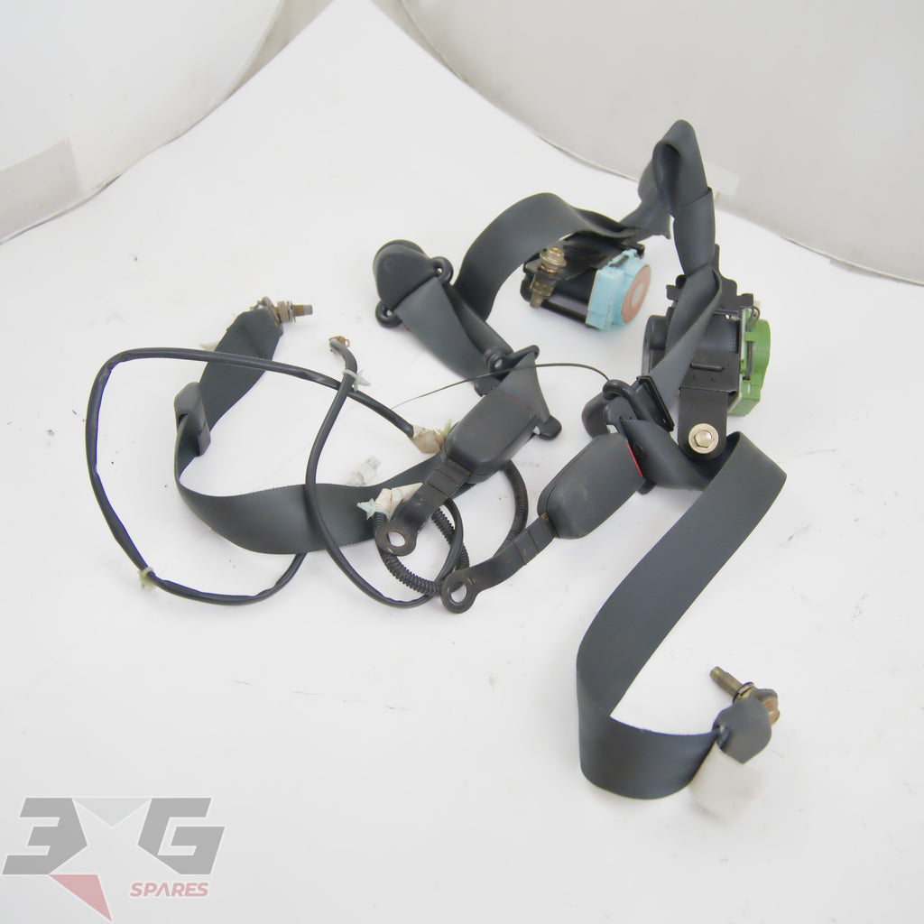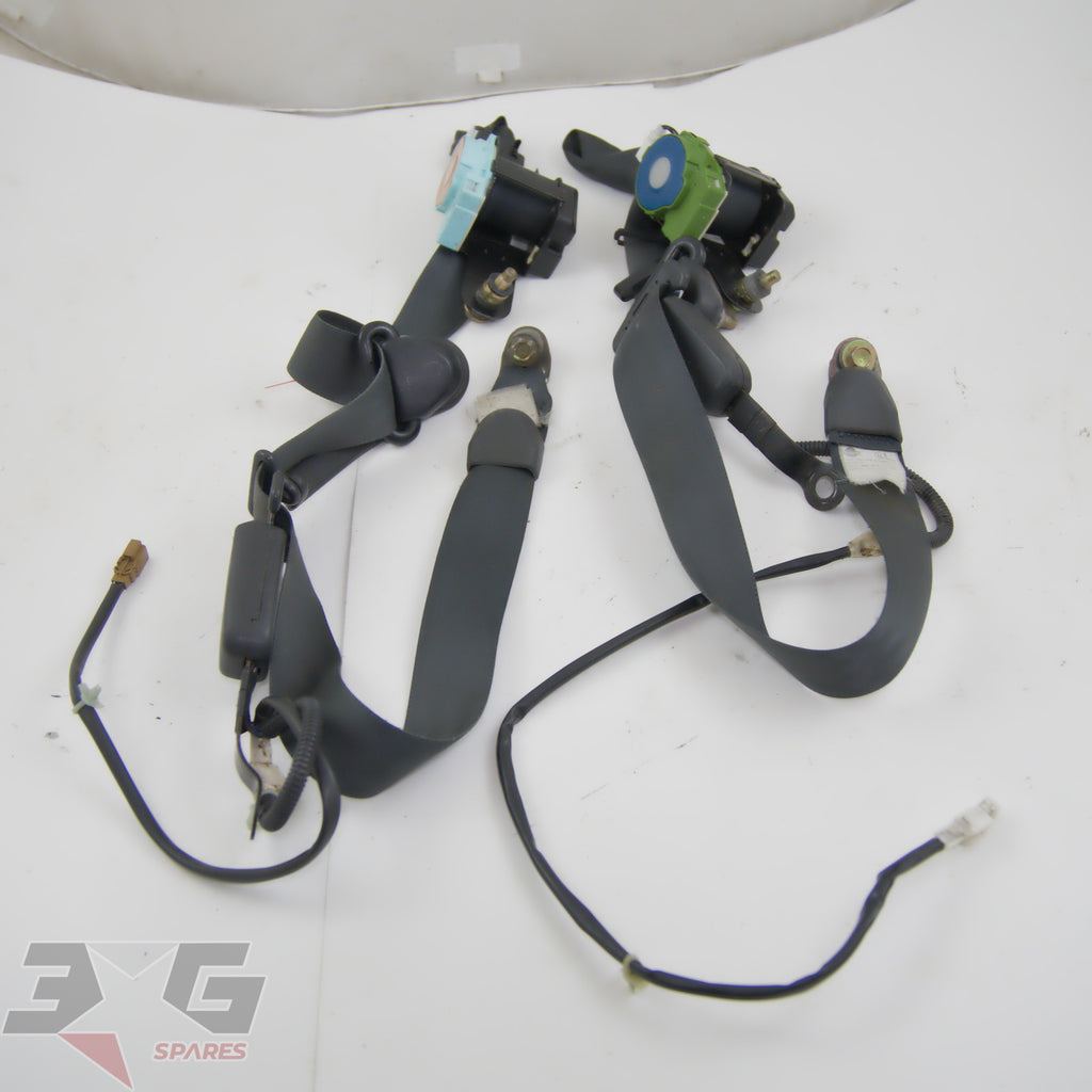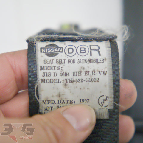 OEM factory front seatbelt set complete with buckles, as removed from a right hand drive (RHD) S14 chassis Nissan Silvia, years 1993 – 1998.