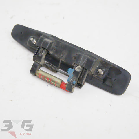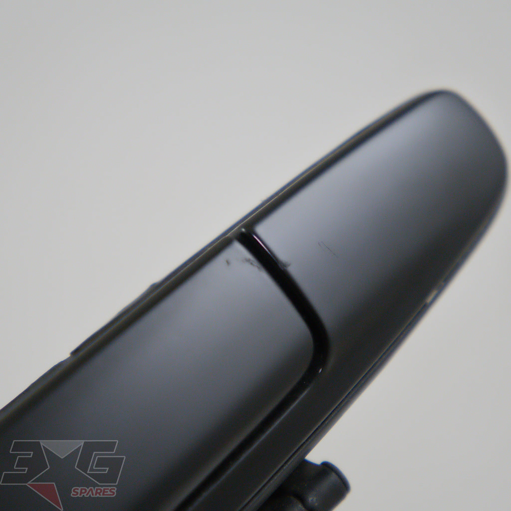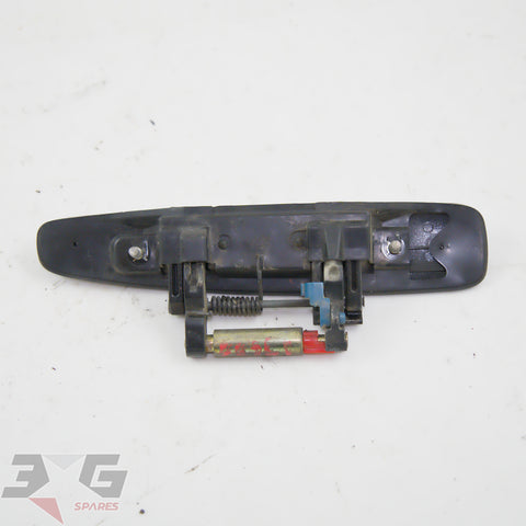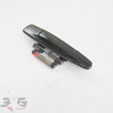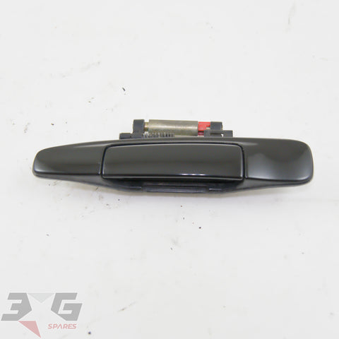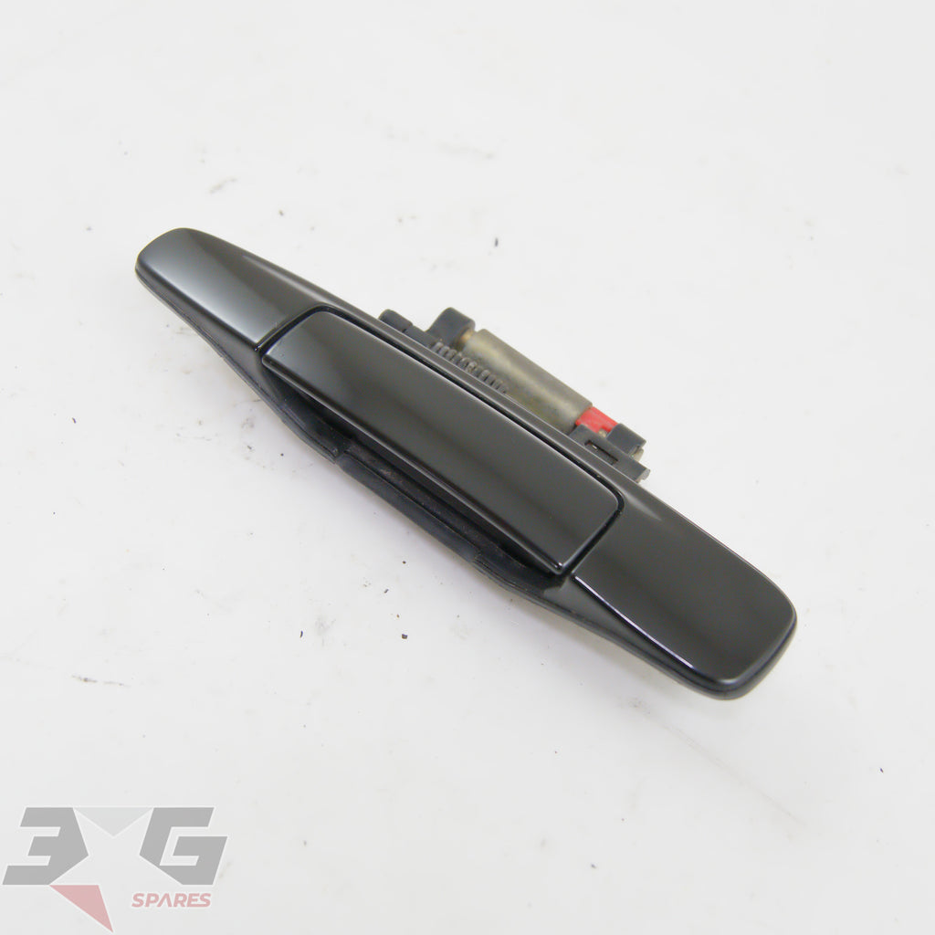 OEM factory left hand rear exterior door handle, as removed from a R34 chassis Nissan Skyline Sedan, years 1998 - 2002.Color code: GV1 Black PearlCondition: Good used condition as pictured, there is some wear and minor scratching to the paint.