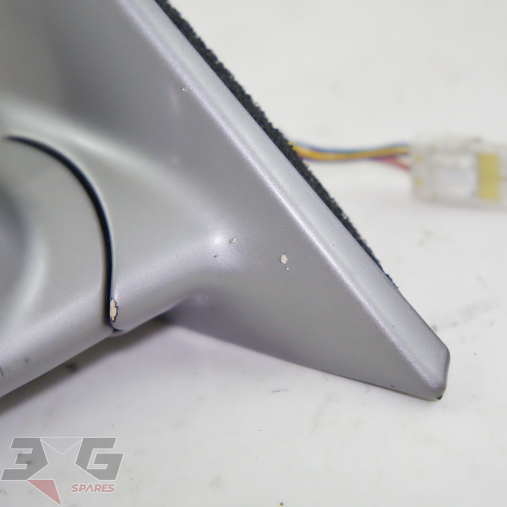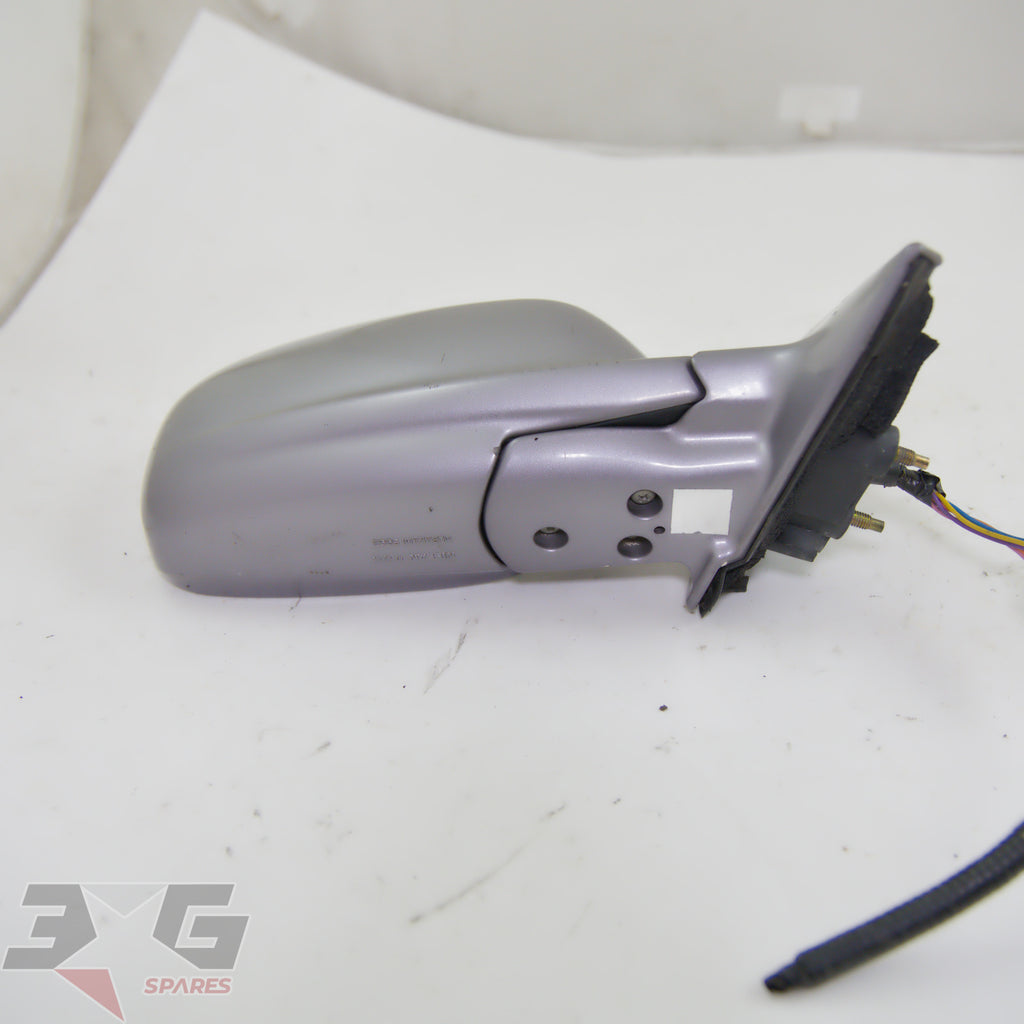 OEM factory right or drivers side power folding mirror,as removed from a R34 chassis Nissan Skyline Sedan years 1998 - 2002.Color code: KV2Please NOTE: This will NOT fit a coupe.Condition: Good used condition as pictured, there are paint chips and scratches as shown in the photos. All electric functions have been tested & verified working well.