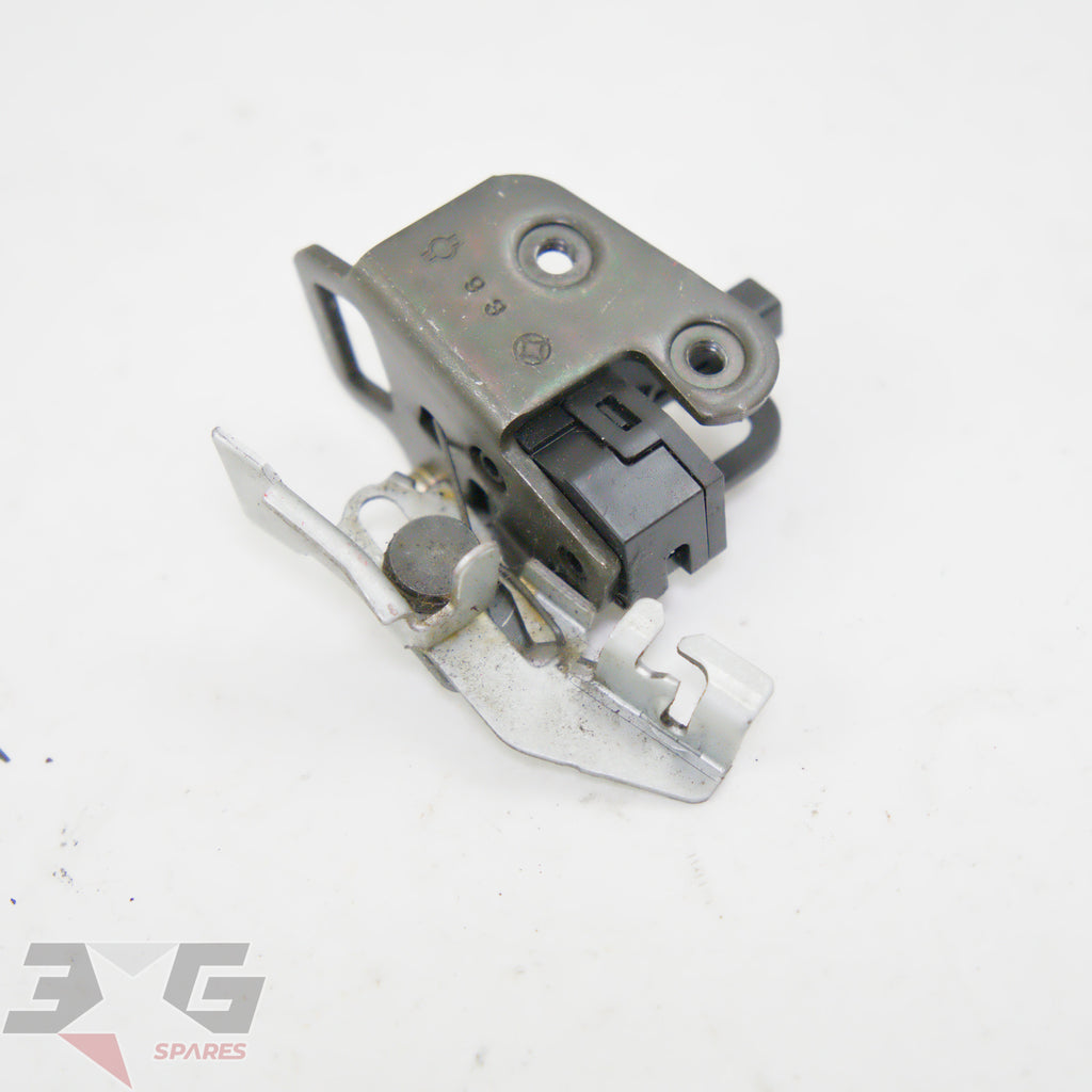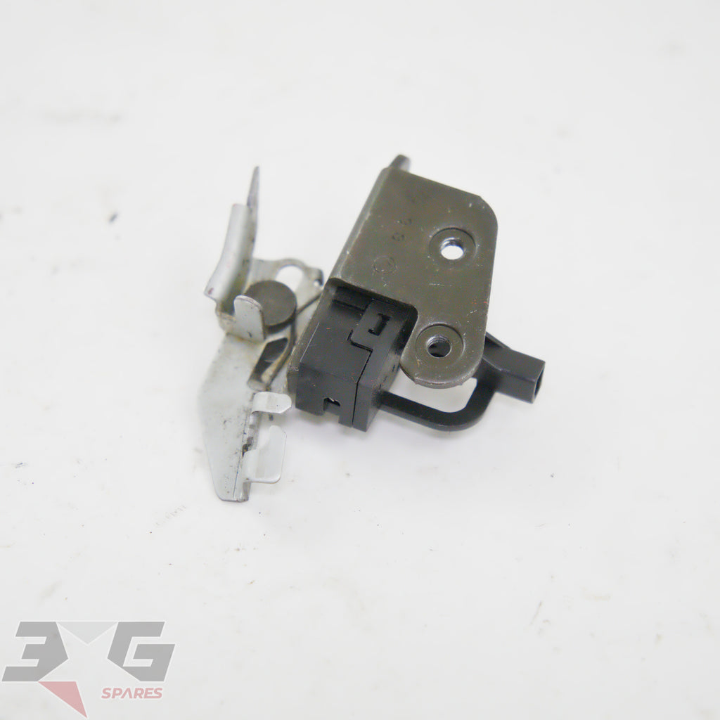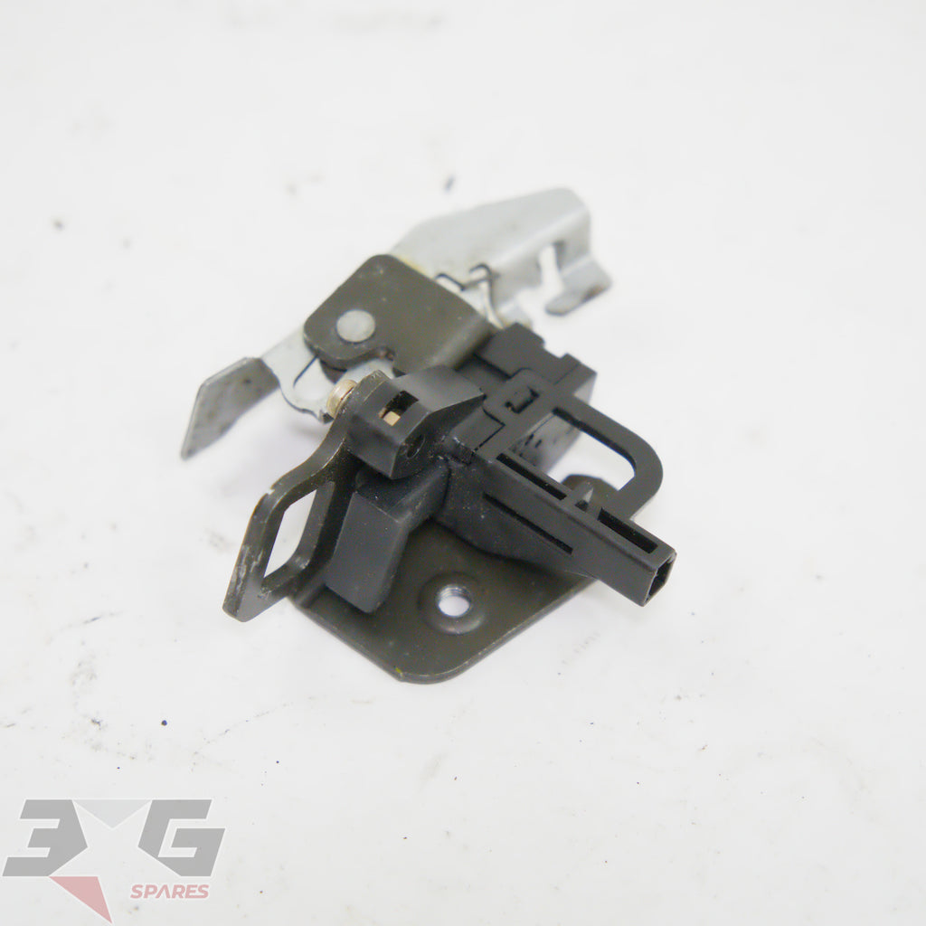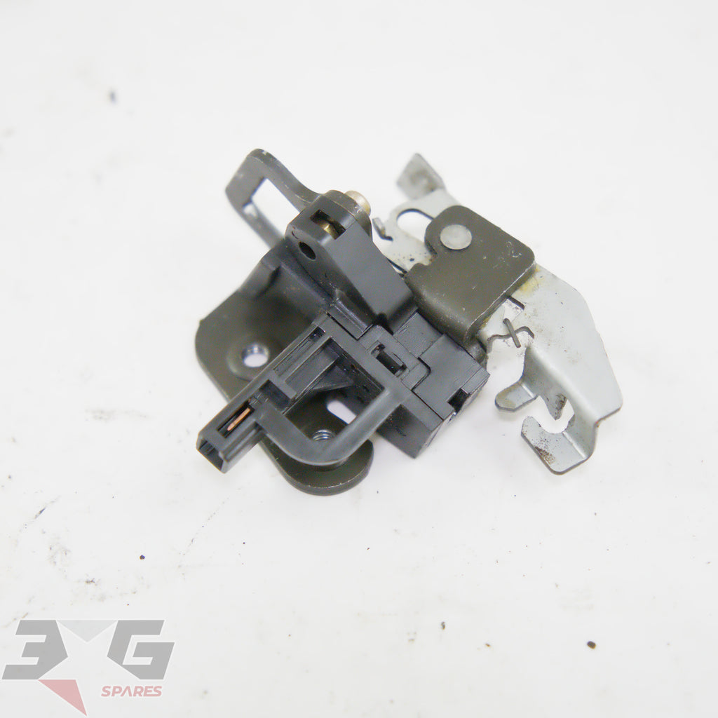 OEM factory trunk or boot latch striker assembly as removed from a R34 chassis Nissan Skyline, years 1998 - 2002.