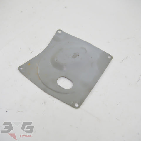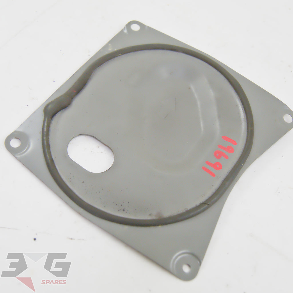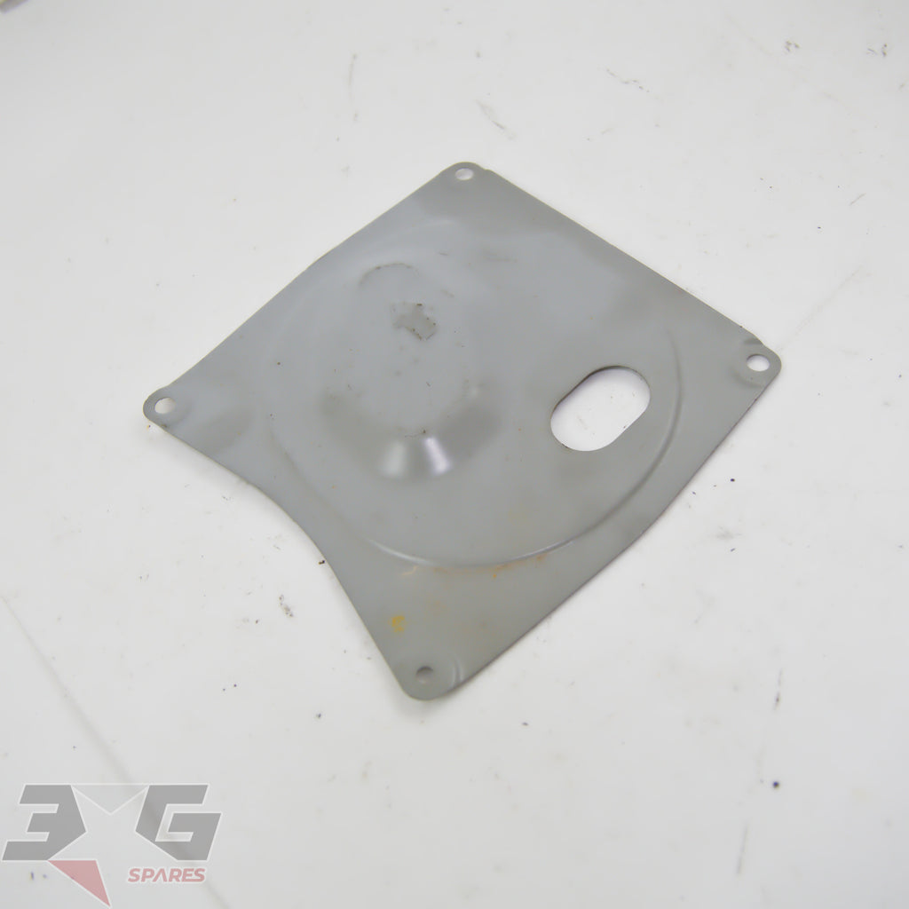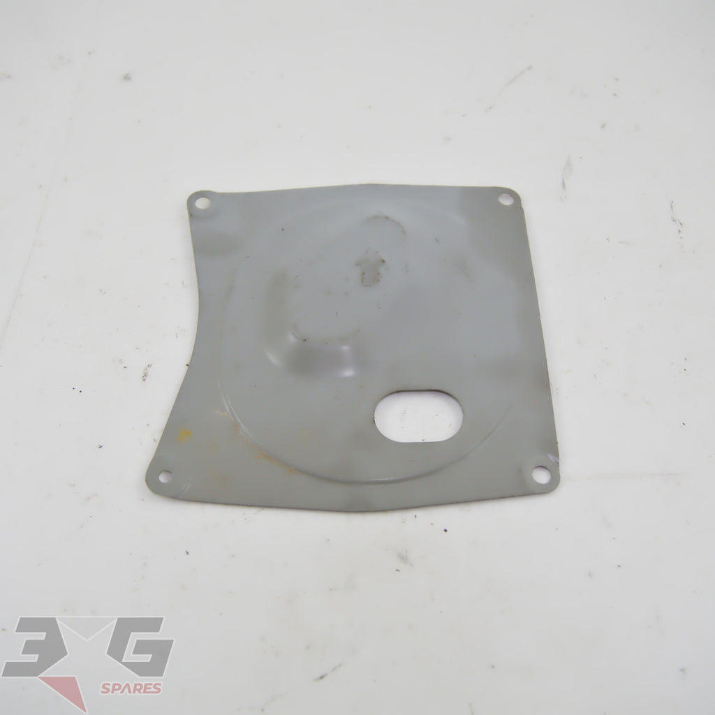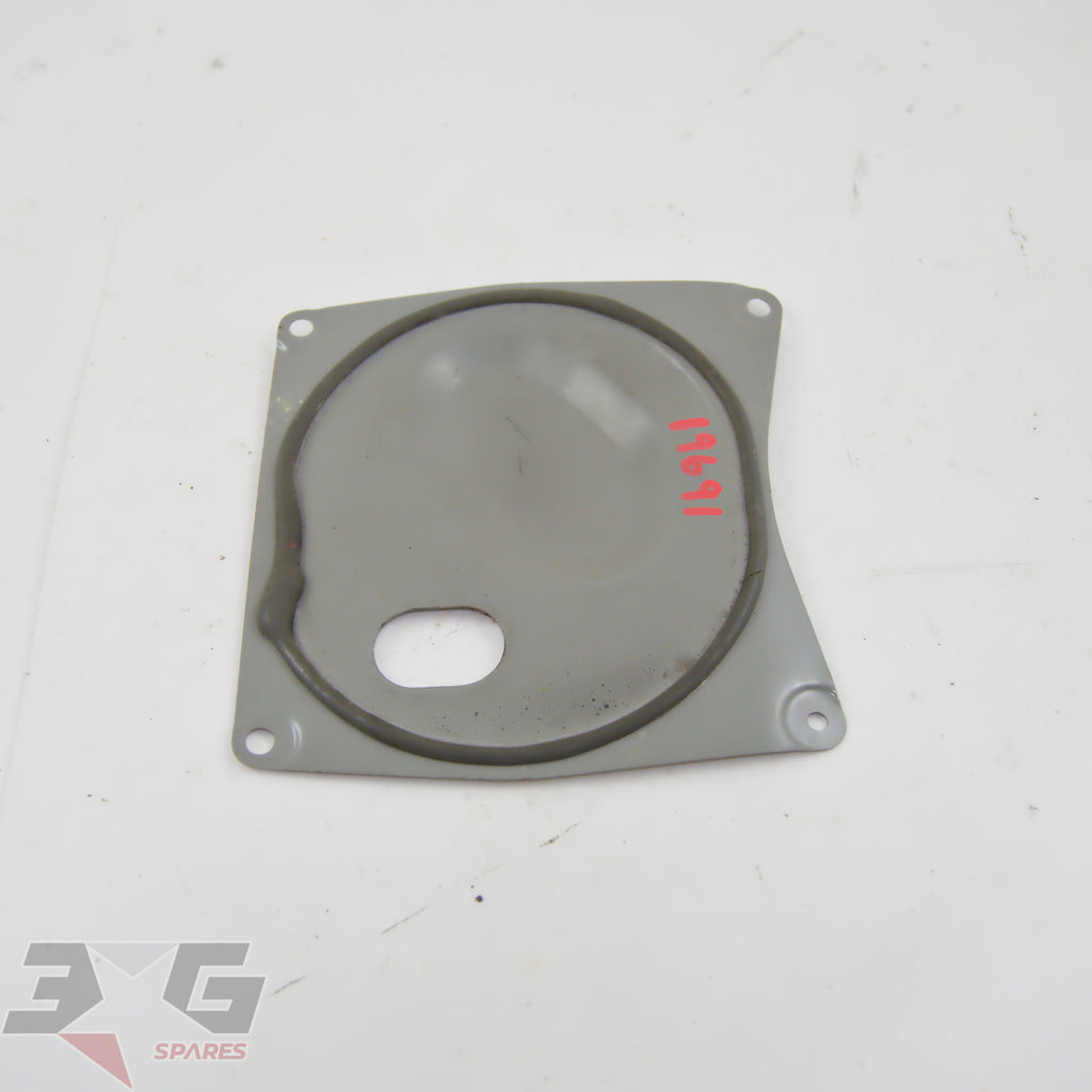 OEM factory fuel pump inspection hole cover panel as removed from an R34 chassis Nissan Skyline, years 1998 - 2002.