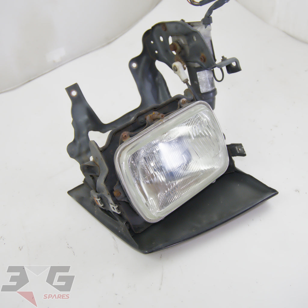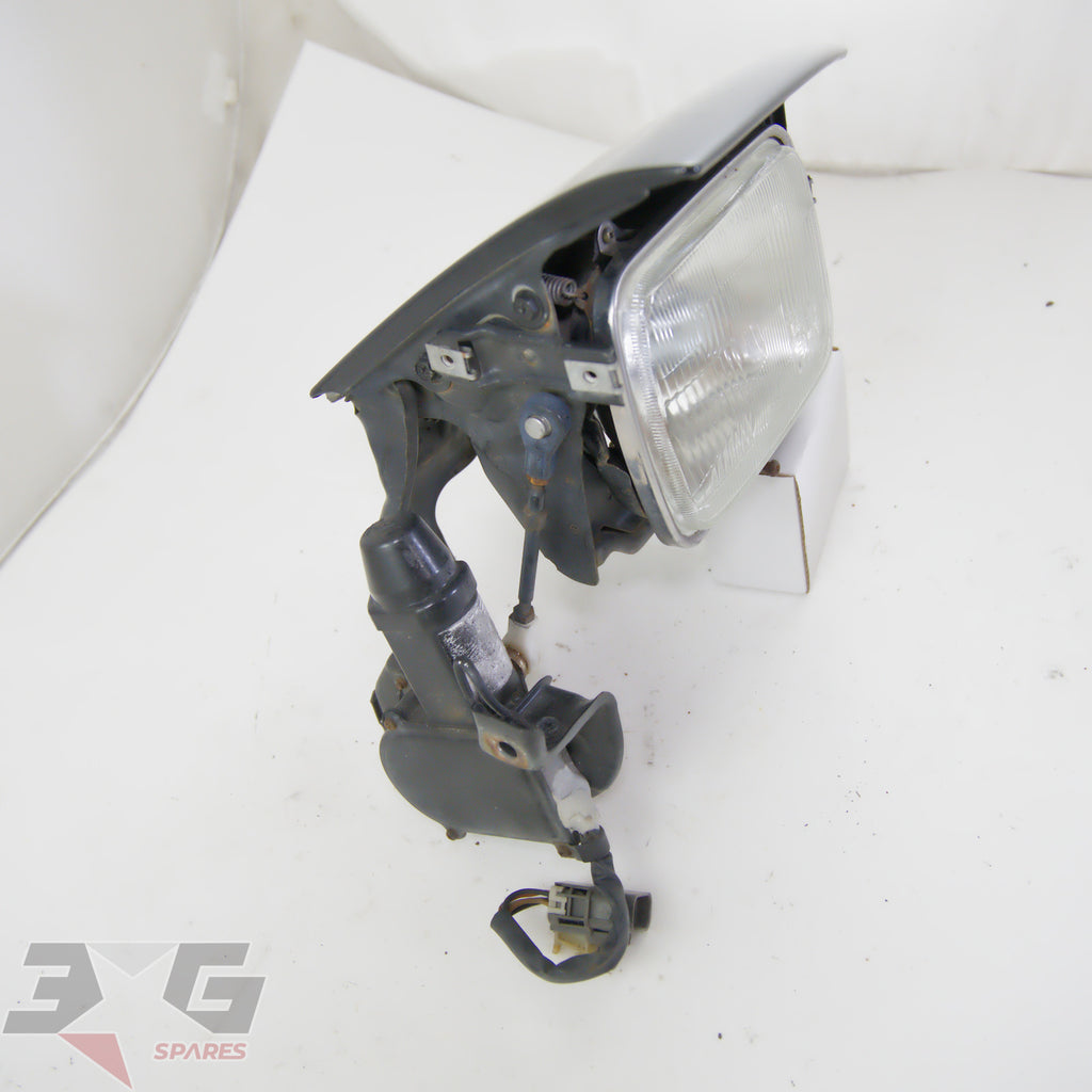 OEM factory left side pop or flip up headlight assembly, as removed from a S13 chassis Nissan 180SX, years 1989 - 1998.
