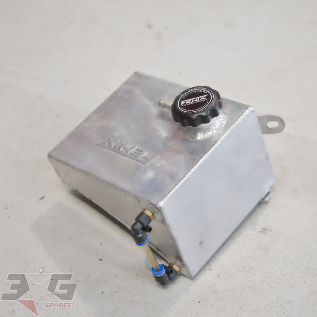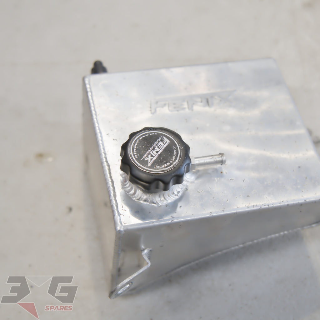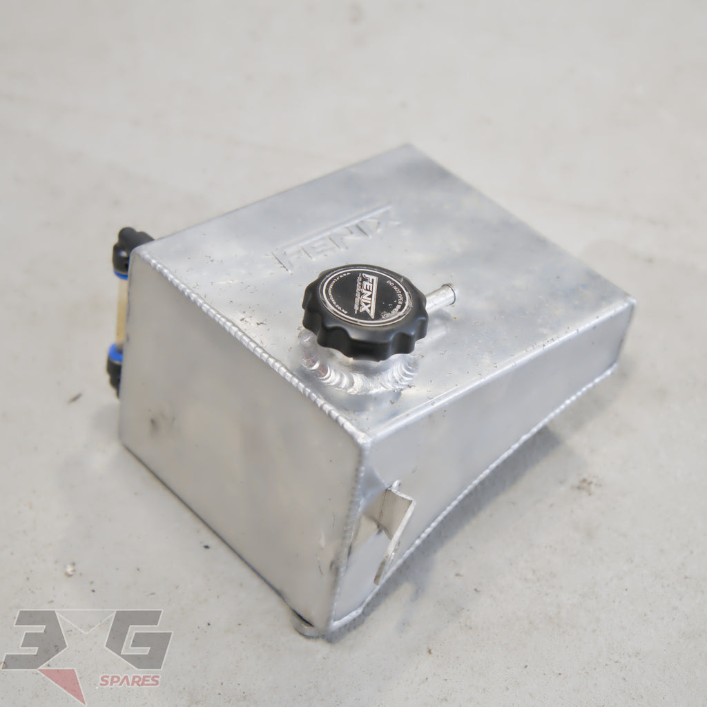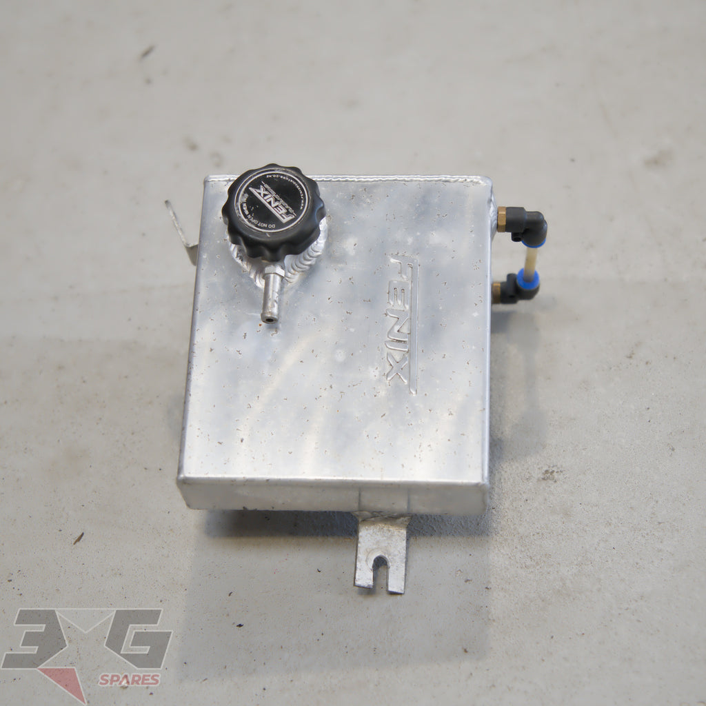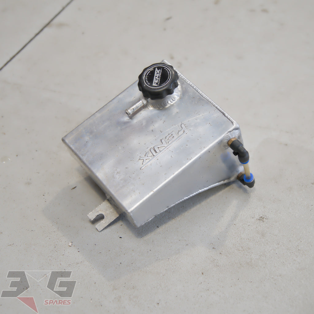 Aftermarket Fenix alloy overflow tank or coolant reservoir, as removed from a S13 chassis Nissan 180SX, years 1989 - 1998.
