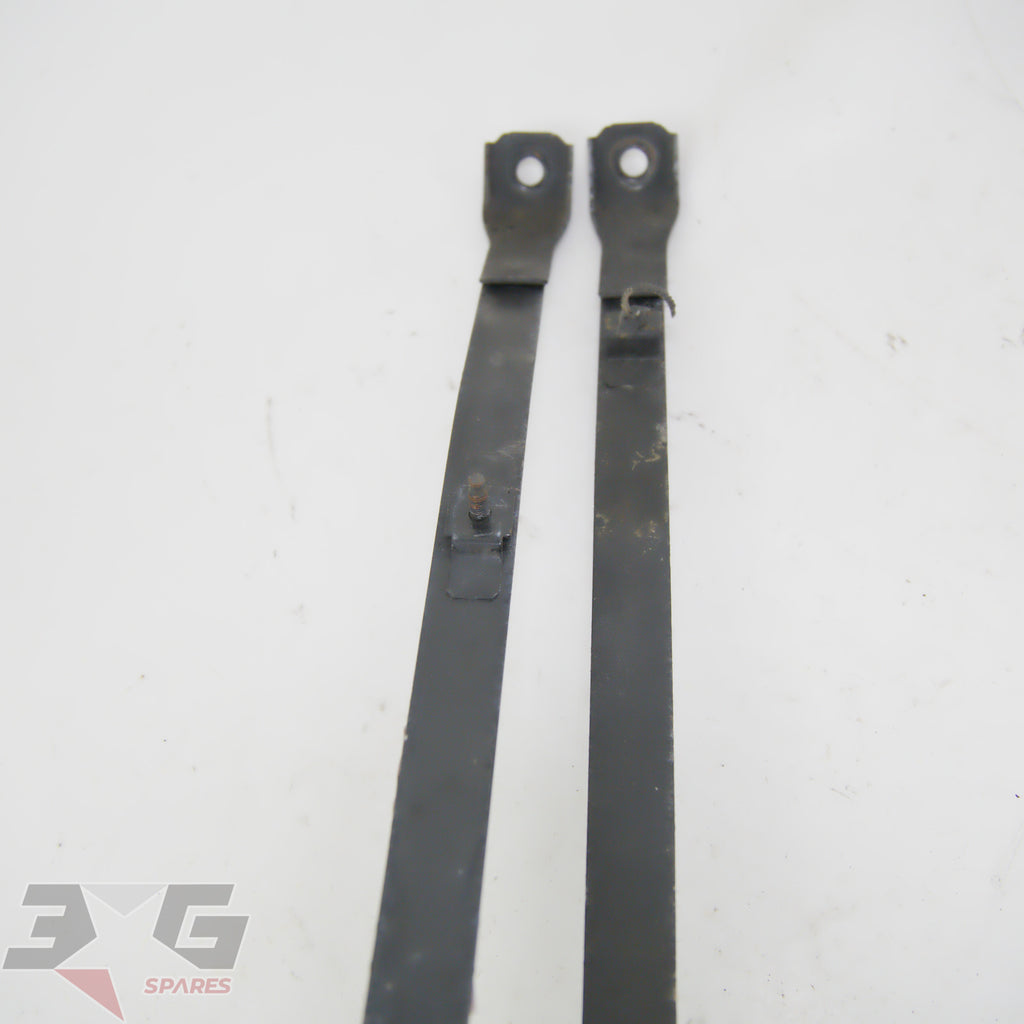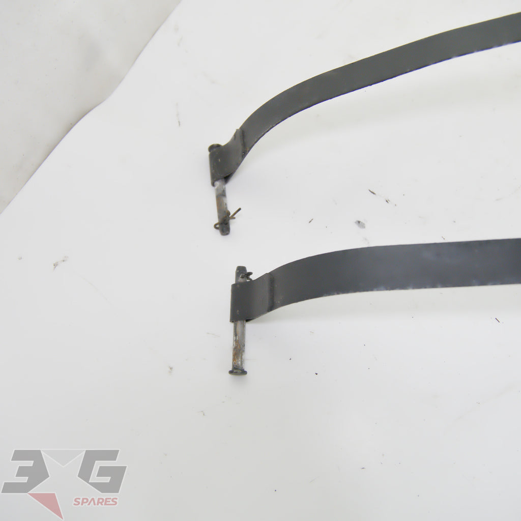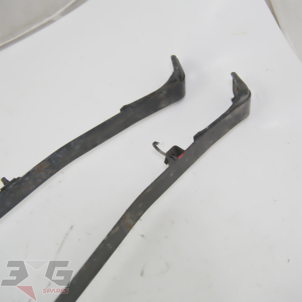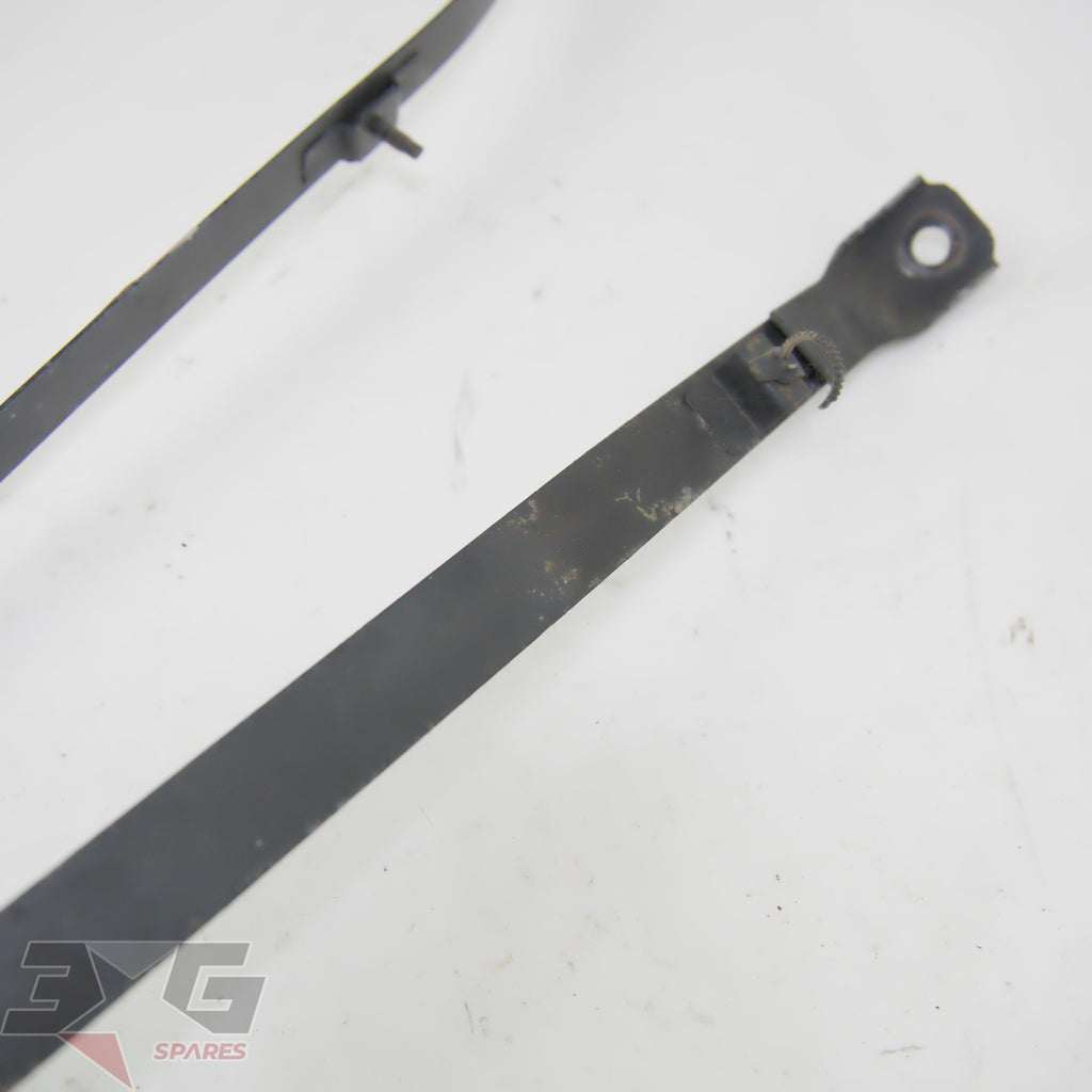 OEM factory fuel tank mounting straps or bands as removed from a R34 chassis Nissan Skyline, years 1998 - 2002.