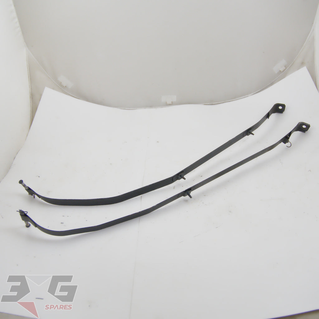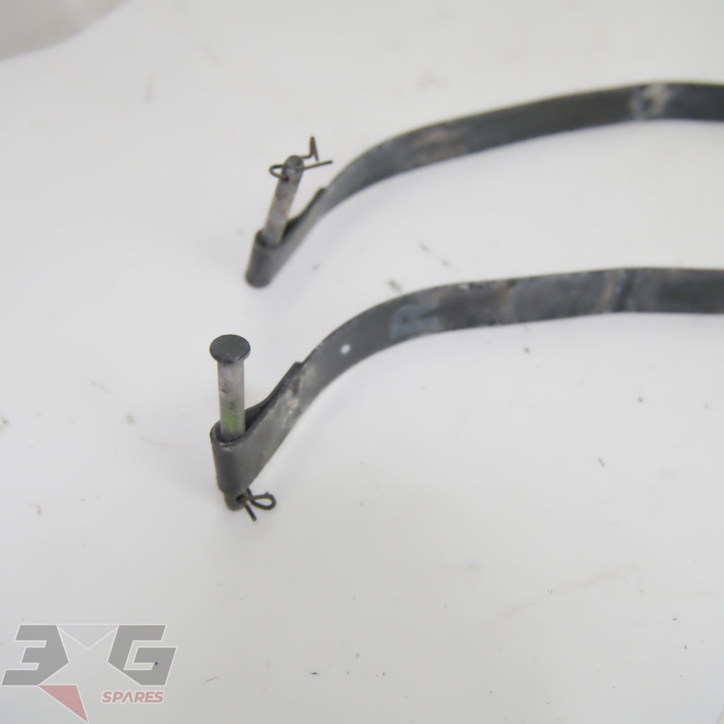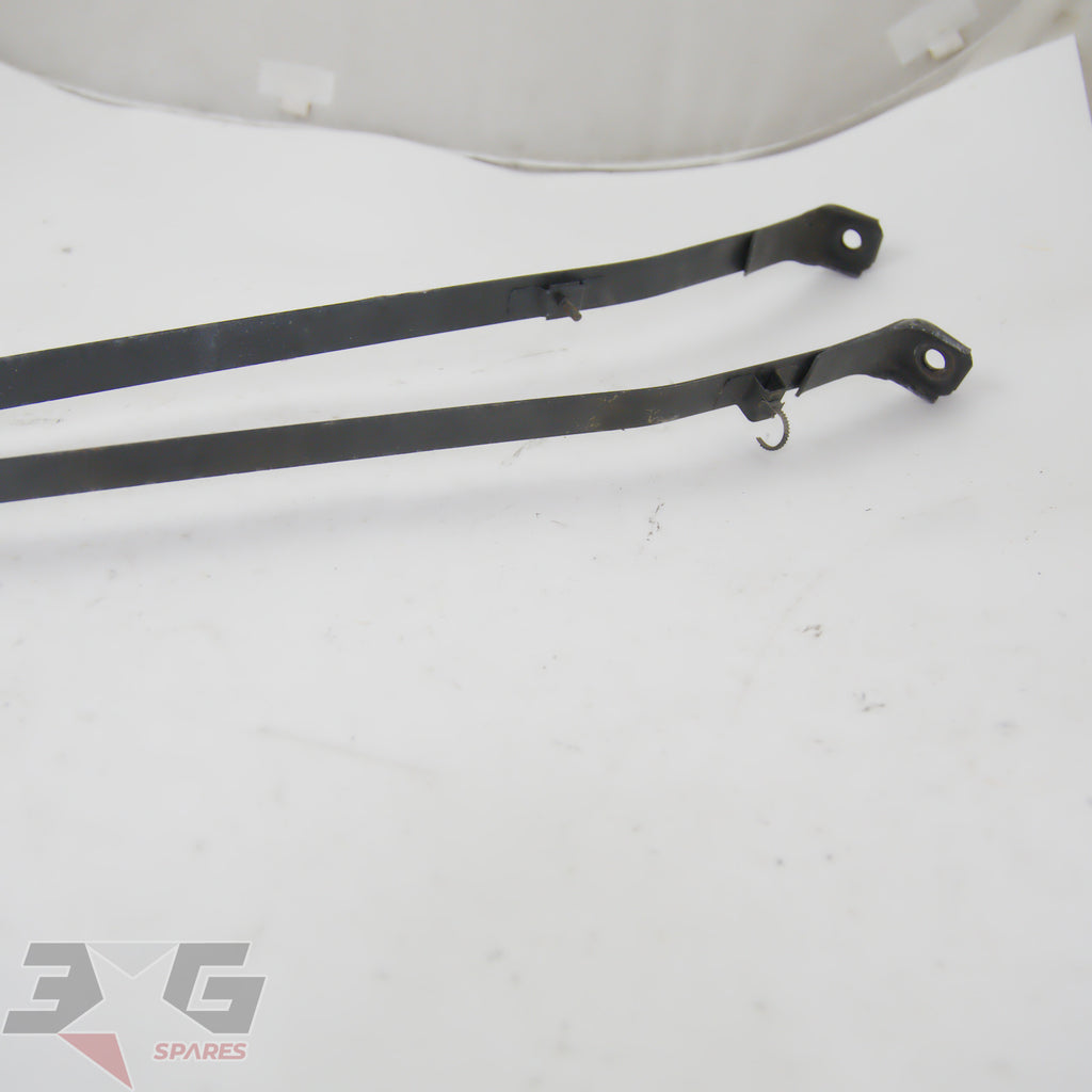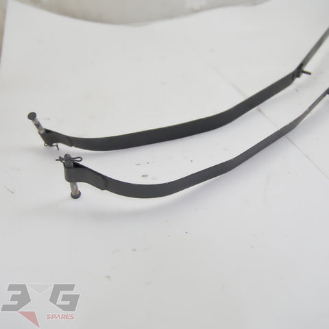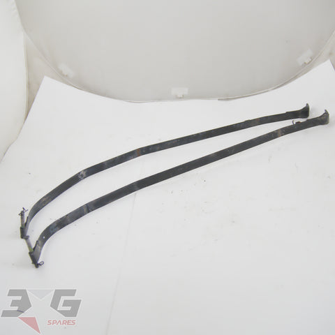 OEM factory fuel tank mounting straps or bands as removed from a R34 chassis Nissan Skyline, years 1998 - 2002.