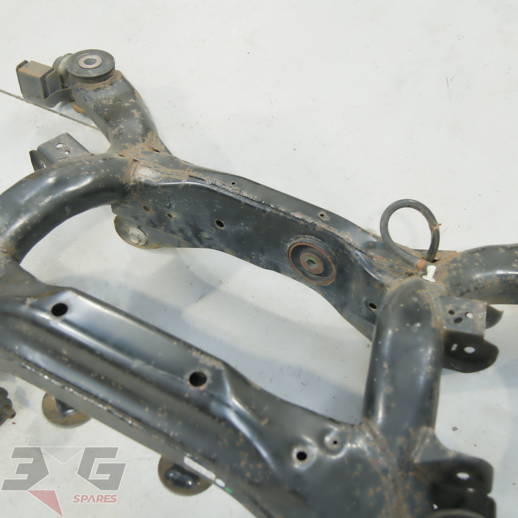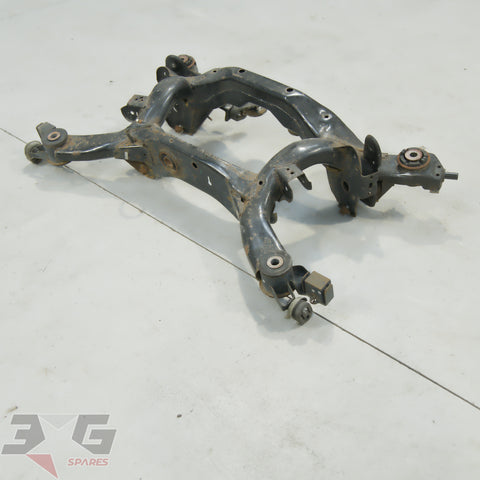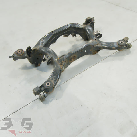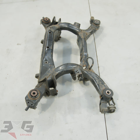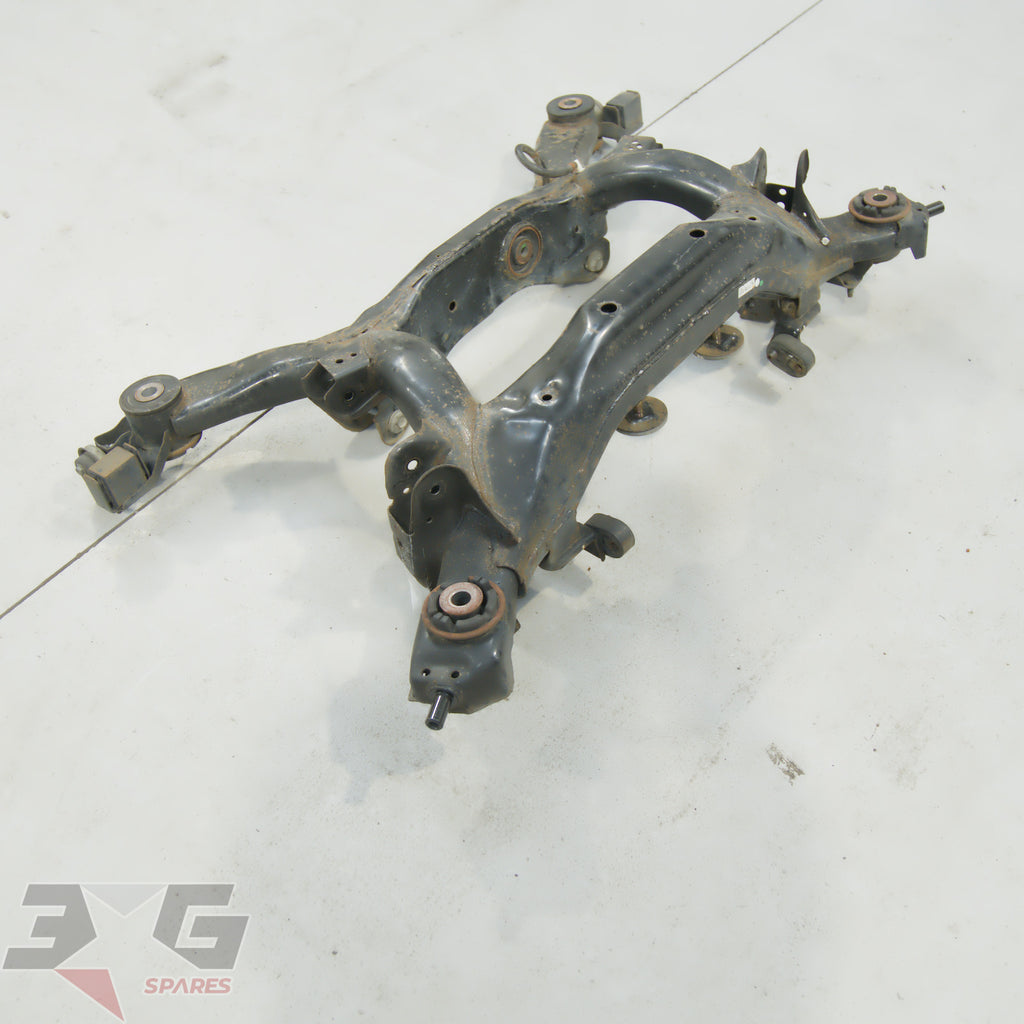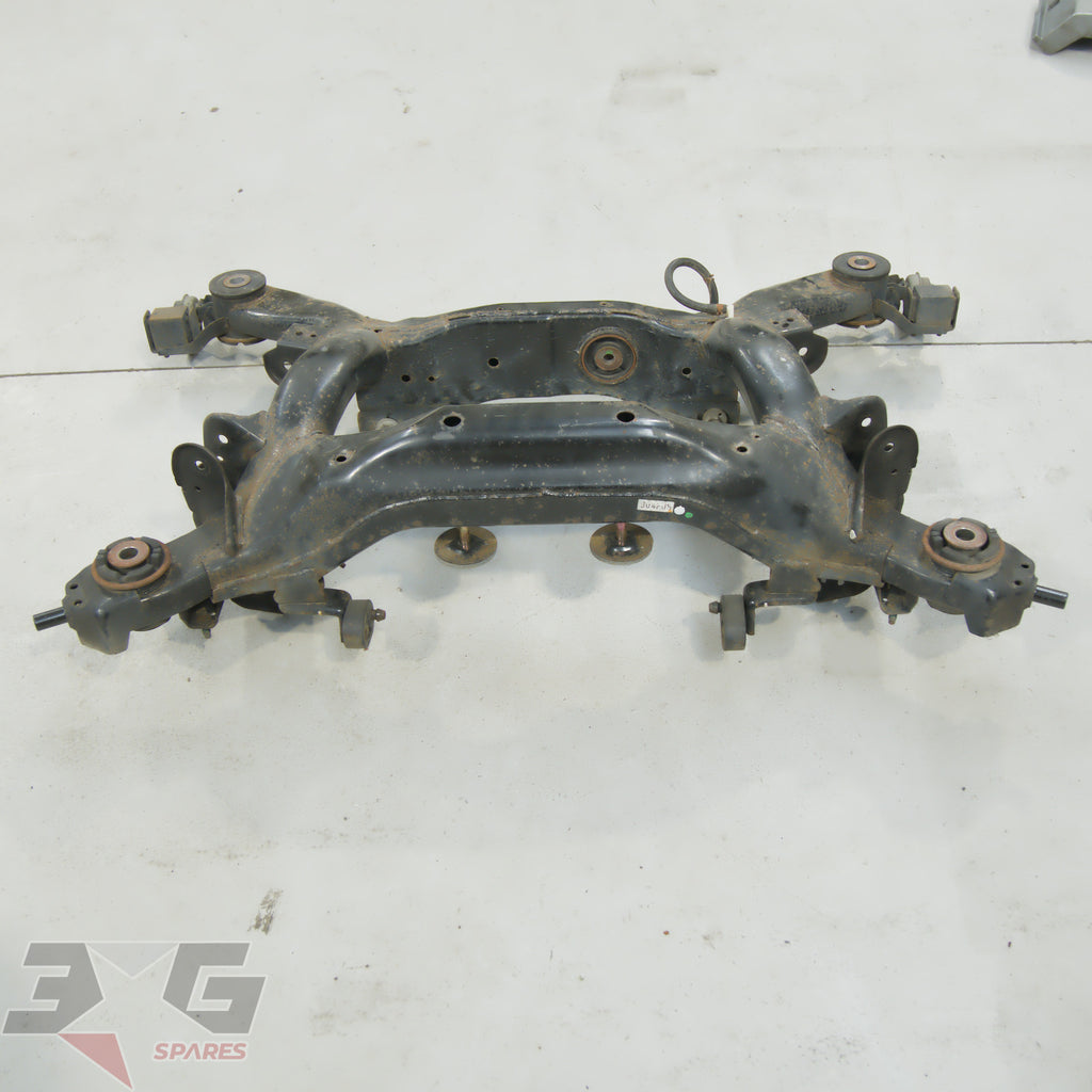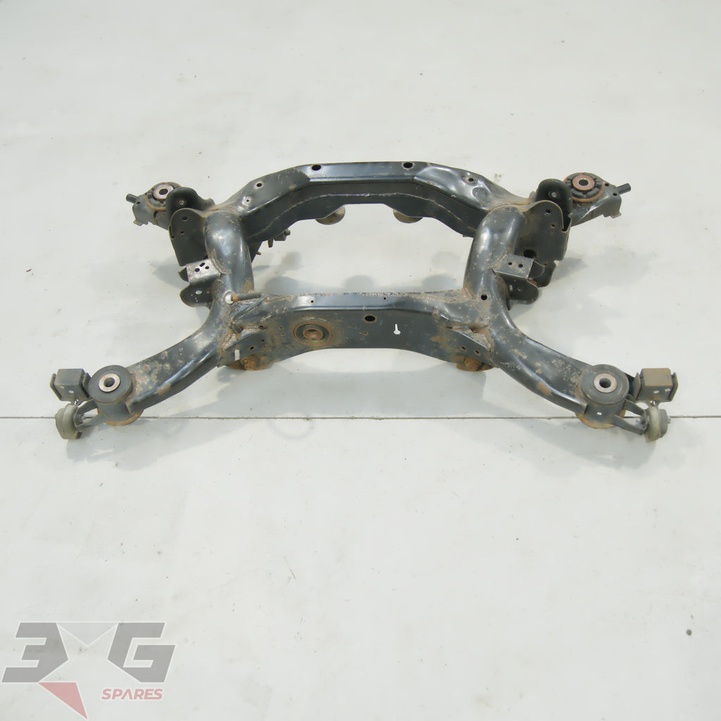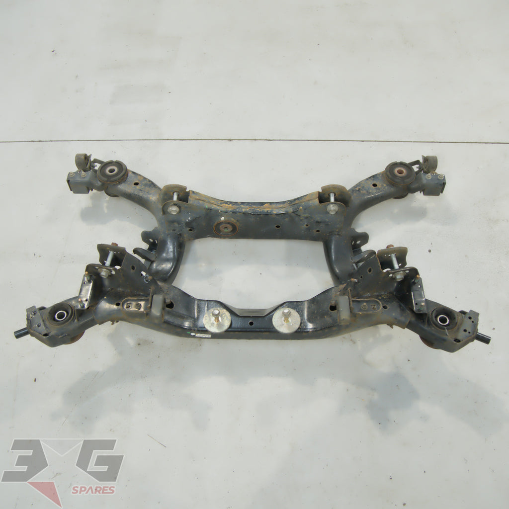 OEM factory rear suspension cross member or subframe assembly as removed from a Y50 chassis Nissan Fuga, years 2004 - 2009.This is a steel non HICAS / four wheel steer unit.