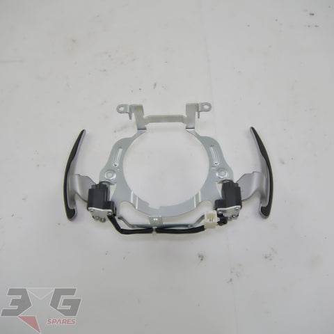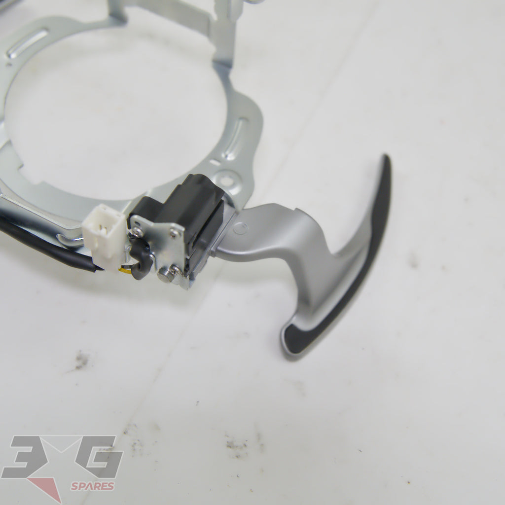 OEM factory automatic 5EAT steering wheel paddle shifter switch assembly, as removed from a BP5 chassis Subaru Legacy, years 2003 - 2008.