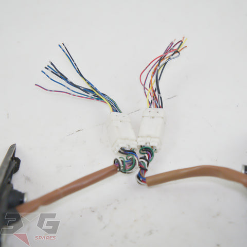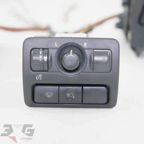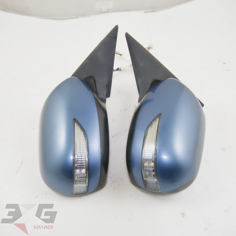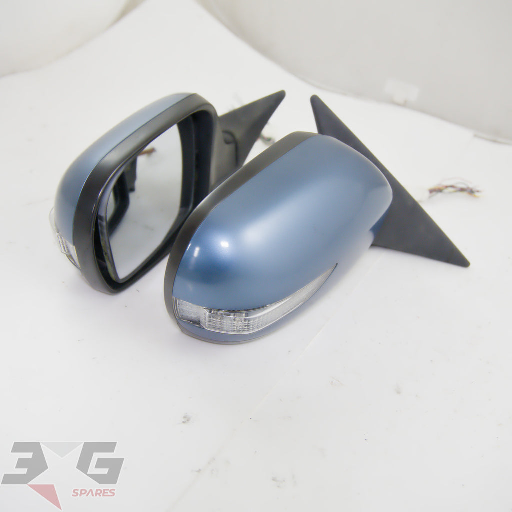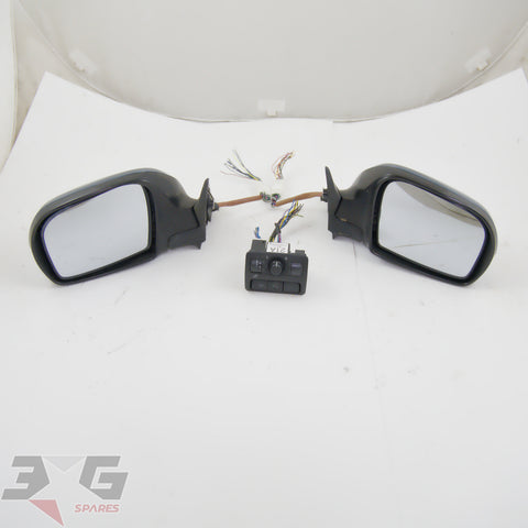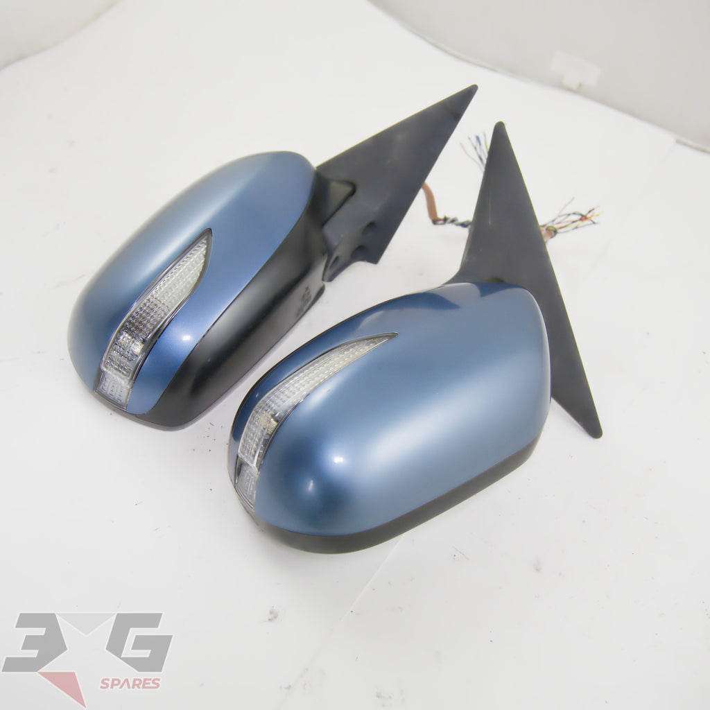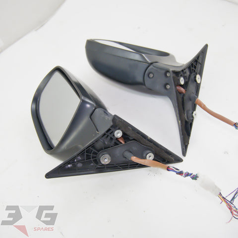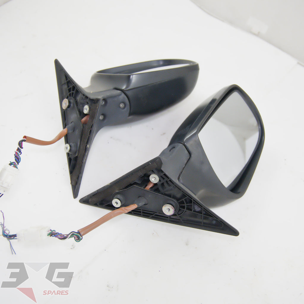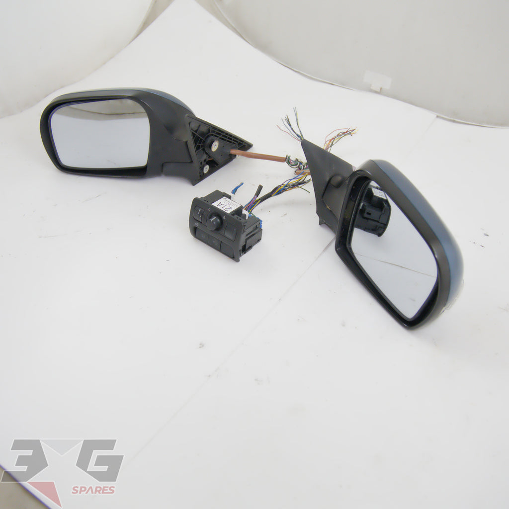 OEM factory left and right side power folding side mirrors including interior switch, as removed from a BP5 chassis Subaru Legacy, years 2003 - 2008.