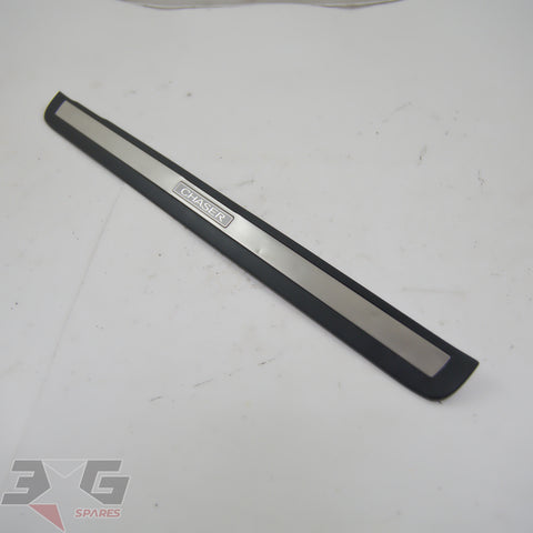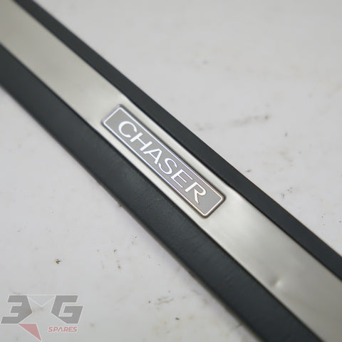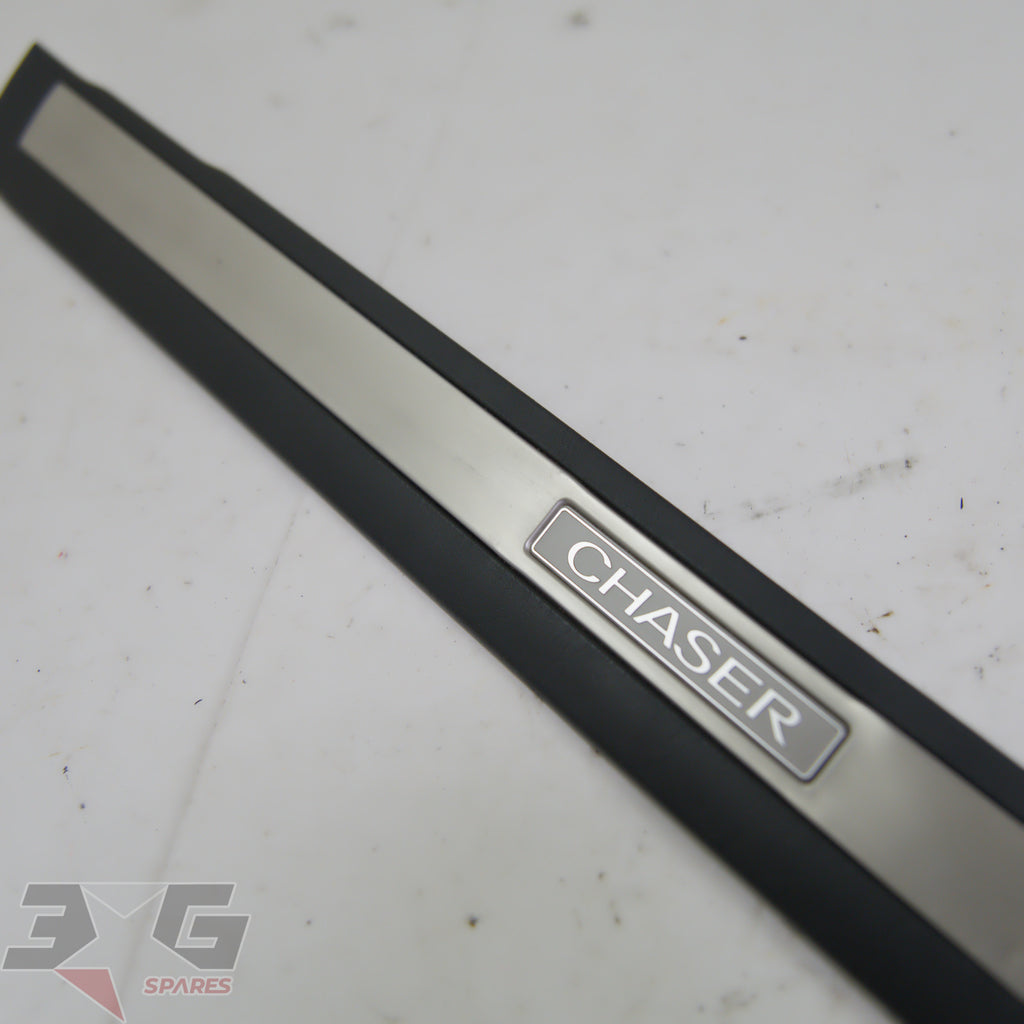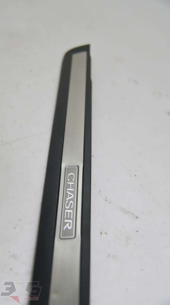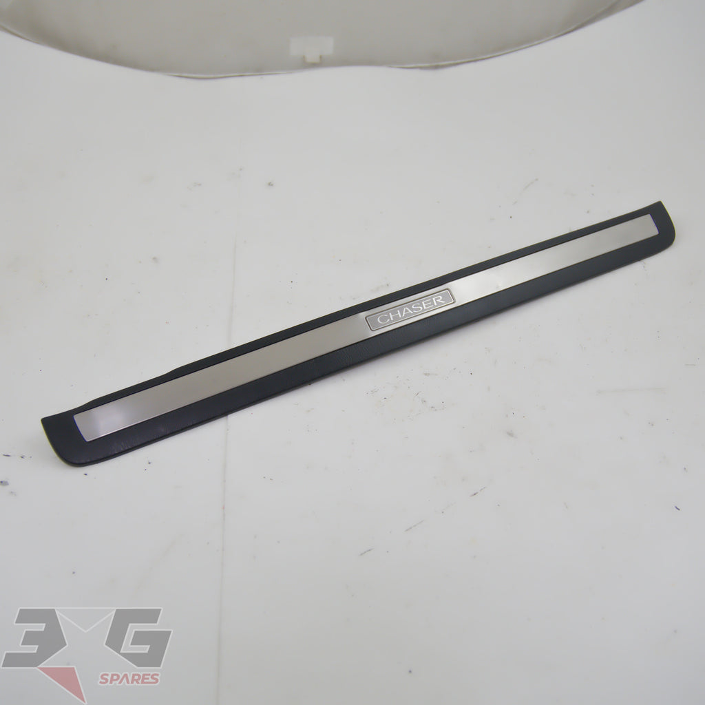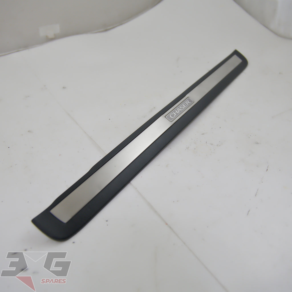 OEM factory left front door sill scuff plate, as removed from a JZX100 chassis Toyota Chaser Tourer V, years 1996-2001.