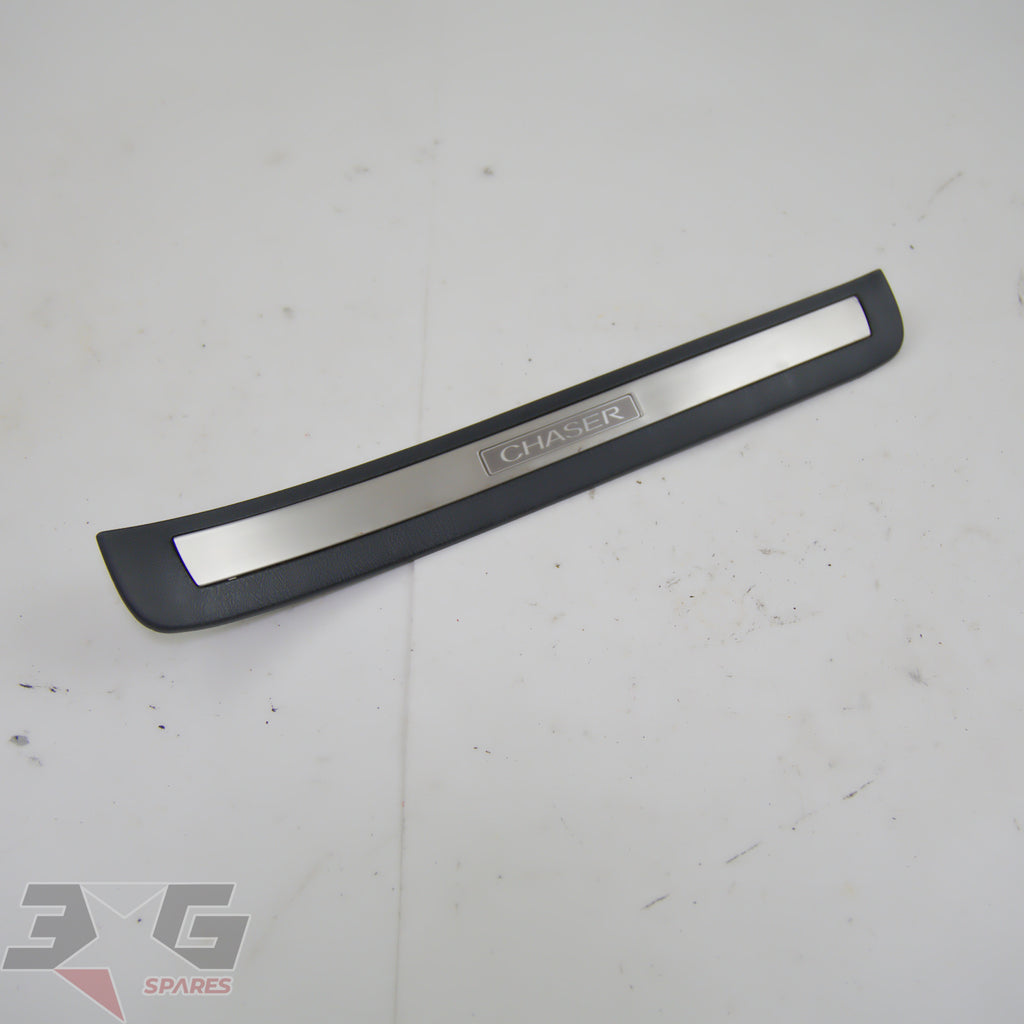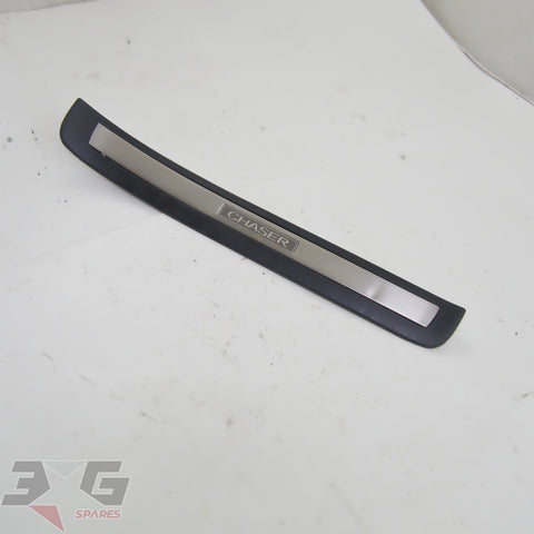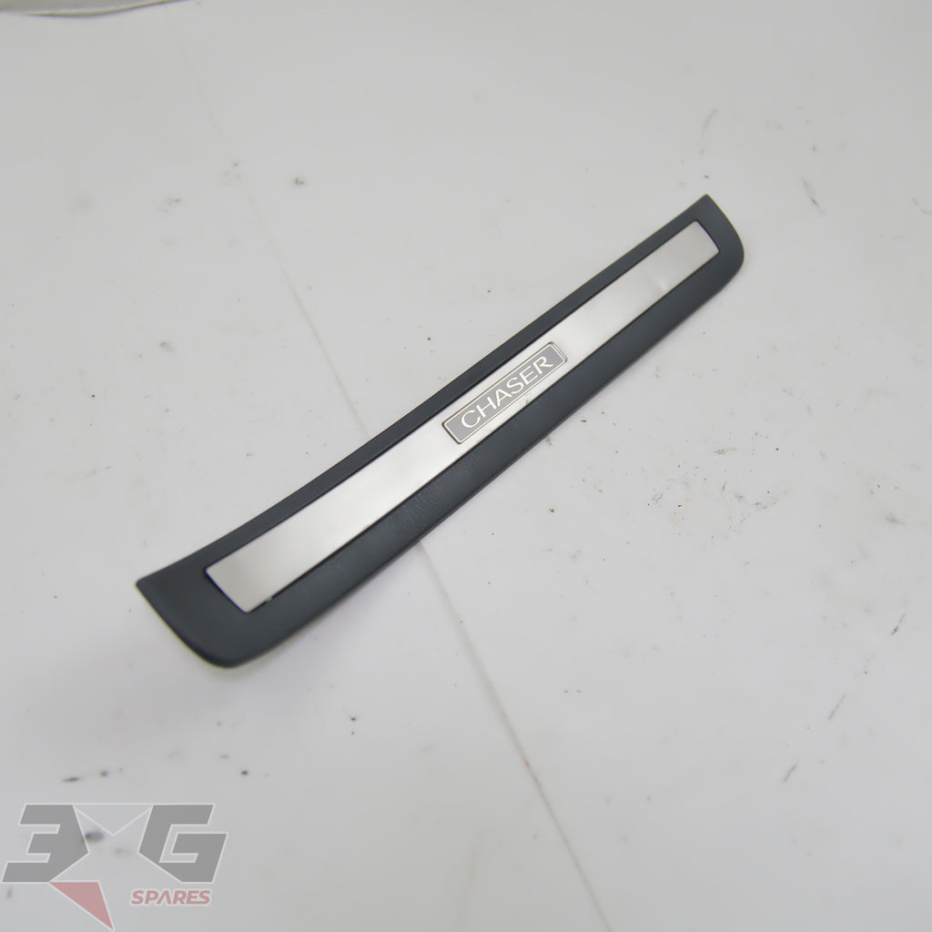 OEM factory right rear door sill scuff plate, as removed from a JZX100 chassis Toyota Chaser Tourer V, years 1996-2001.