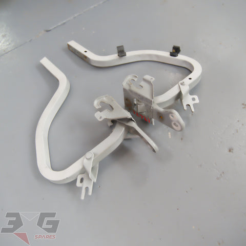 OEM factory left and right side boot or trunk hinge assemblies, as removed from a JZX100 chassis Toyota Mark II, years 1996 - 2000.