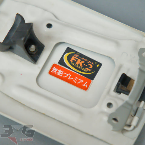 OEM factory fuel filler lid assembly, as removed from a JZX100 chassis Toyota Mark II, years 1996 - 2000.