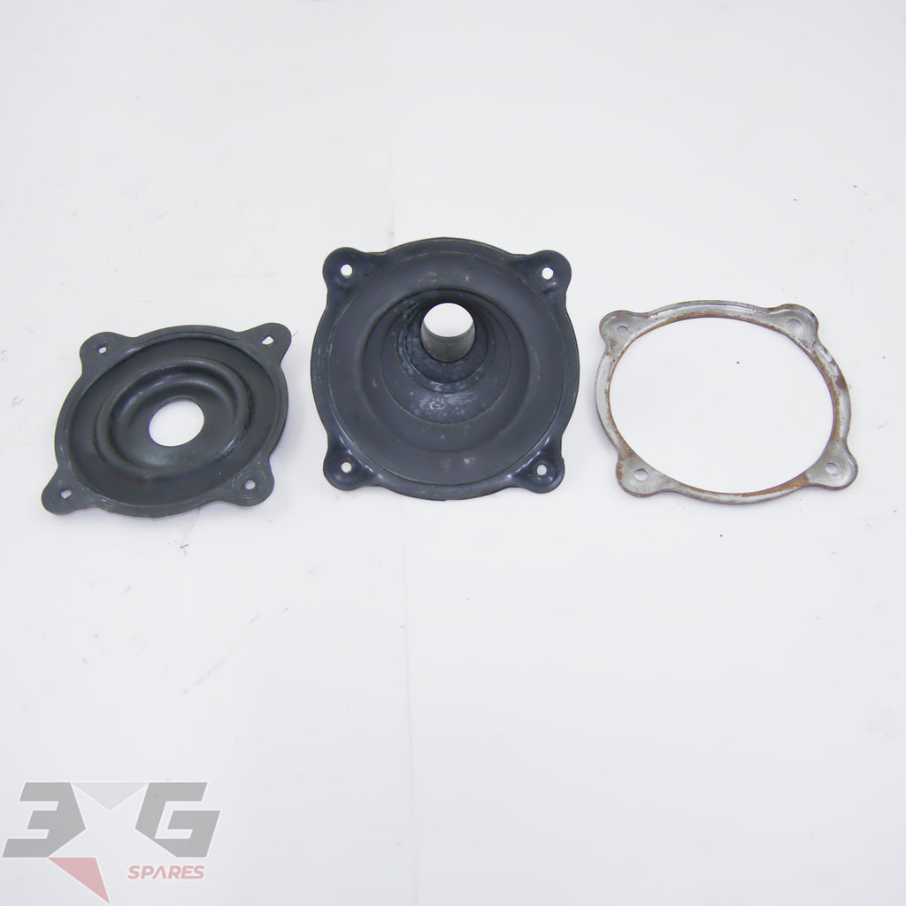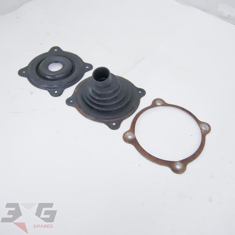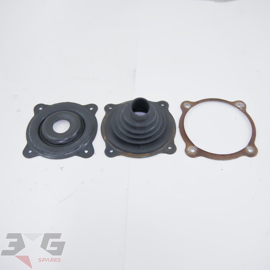 These parts mount to the transmission tunnel around the shifter assembly. Includes the lower and upper rubber boots as well as the steel retaining ring.