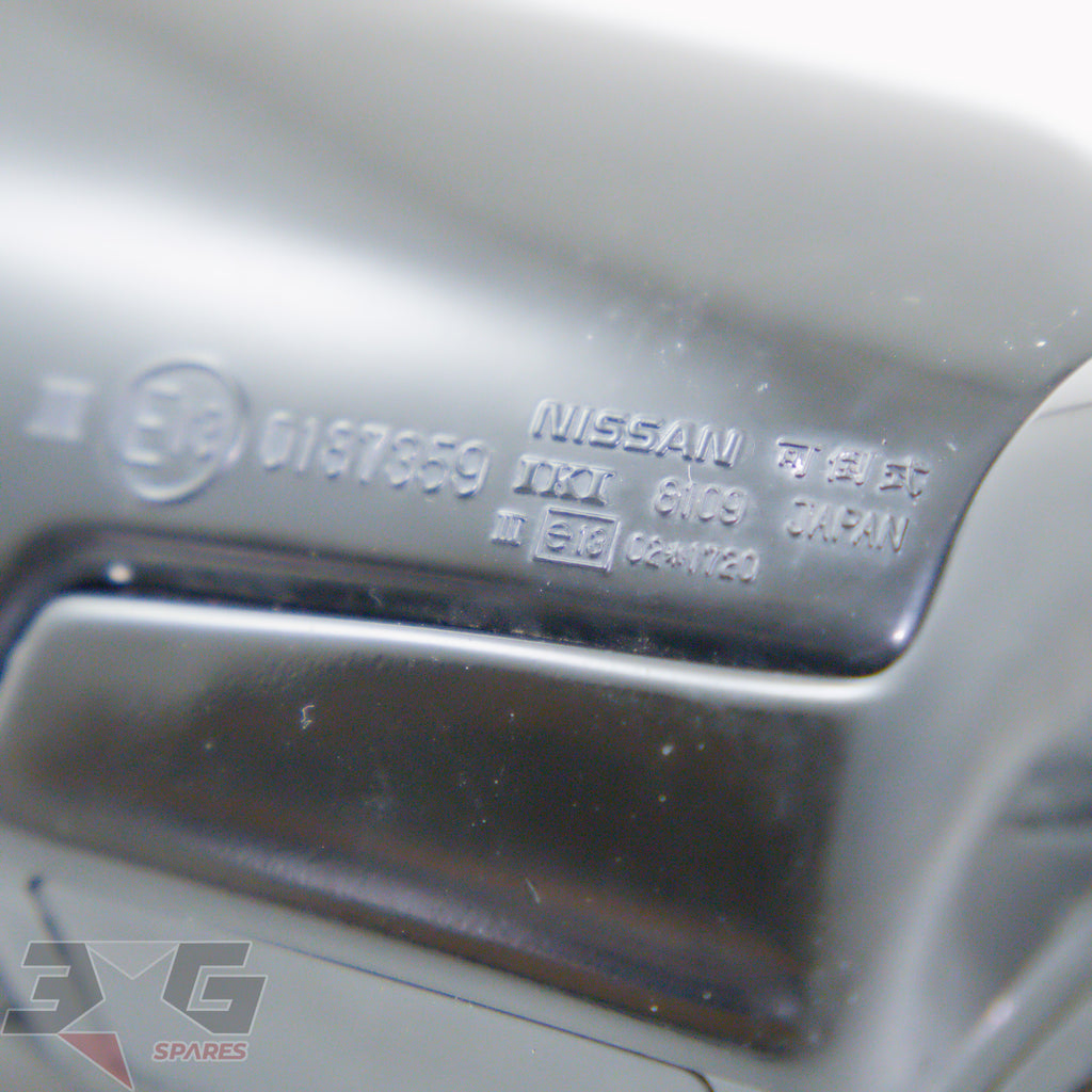 OEM factory right side power folding mirror, as removed from a right hand drive (RHD) S13 chassis Nissan 180SX, years 1989 - 1998.