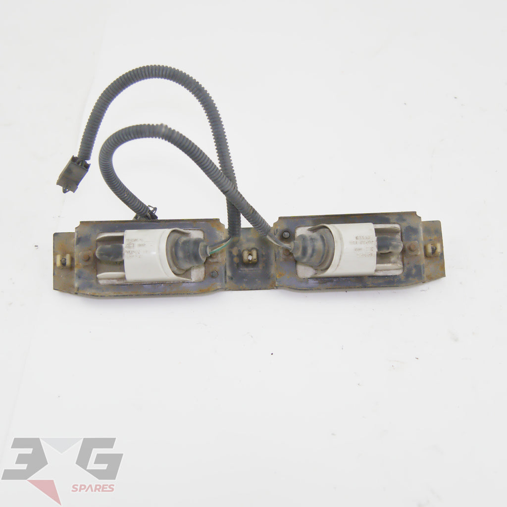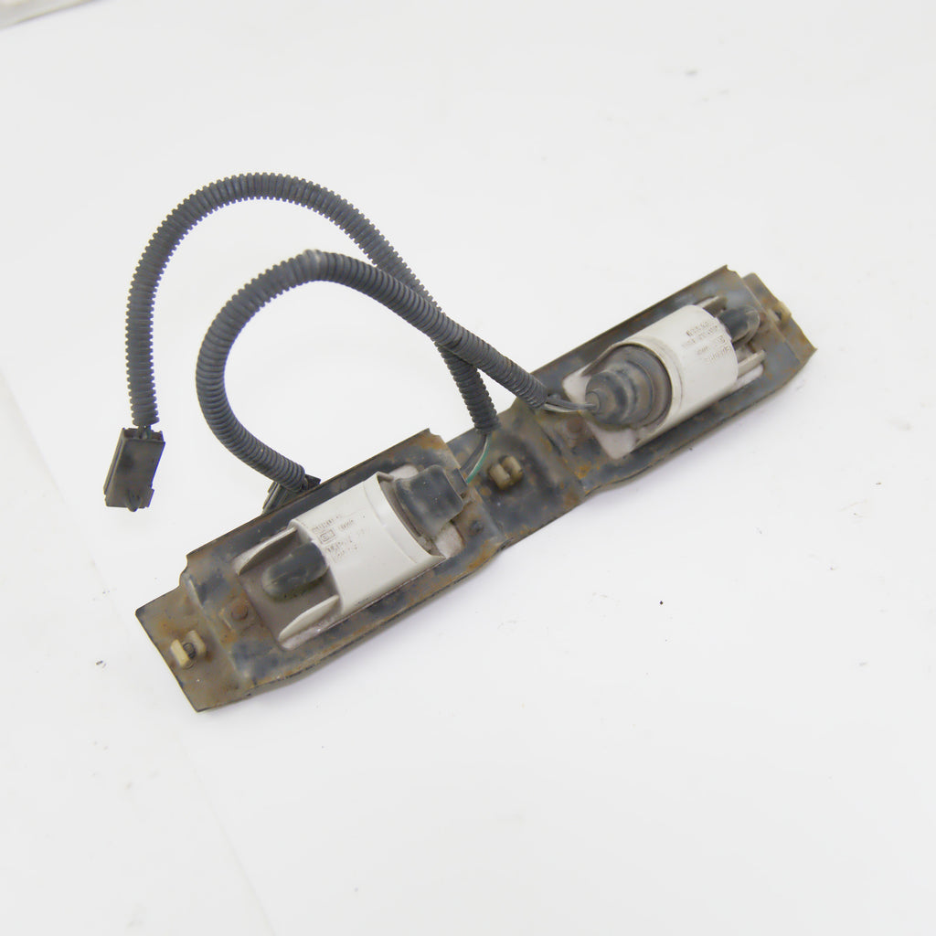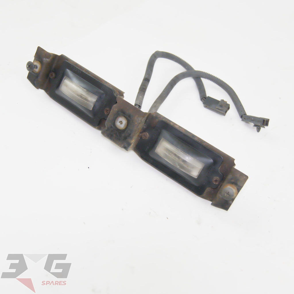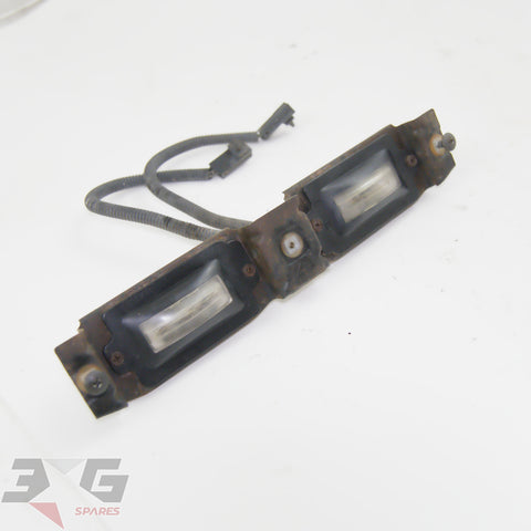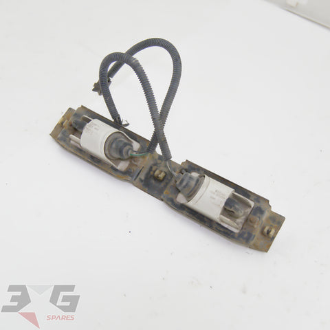 OEM factory rear license plate lights and bracket, as removed from a S13 chassis Nissan 180SX, years 1989 - 1998.This will also fit S13 Nissan Silvia 1988 - 1994. Condition: Good used condition with light rust as pictured. Both light lenses cracks as shown in photos 9 - 12. The photo's are of one of our stock but your item will be the same or better condition than pictured.