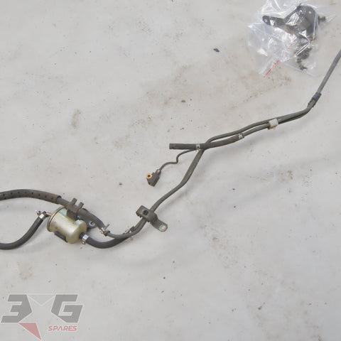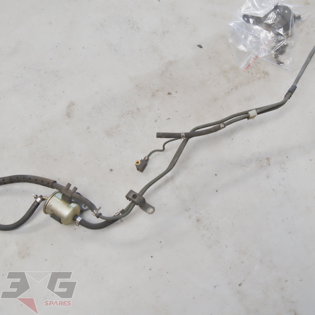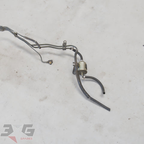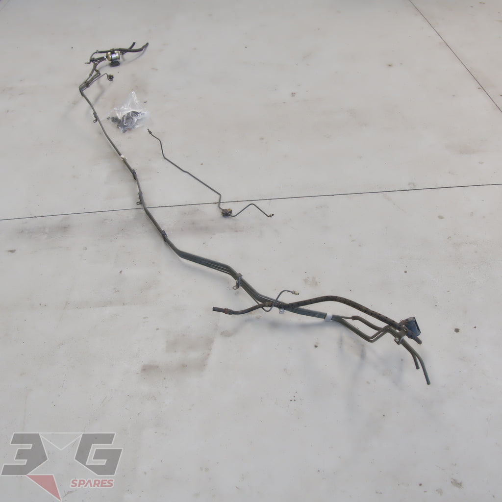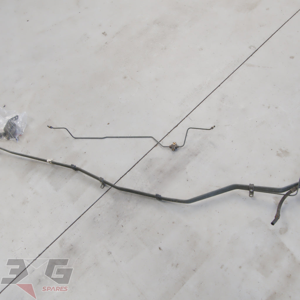 OEM factory under car brake and fuel feed / return hard line set, as removed from a S13 chassis Nissan 180SX, years 1989 - 1998.