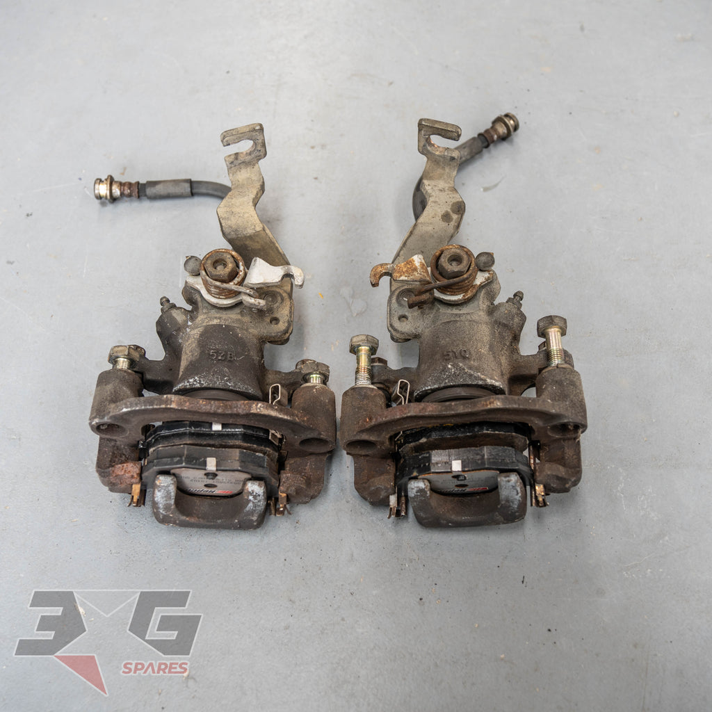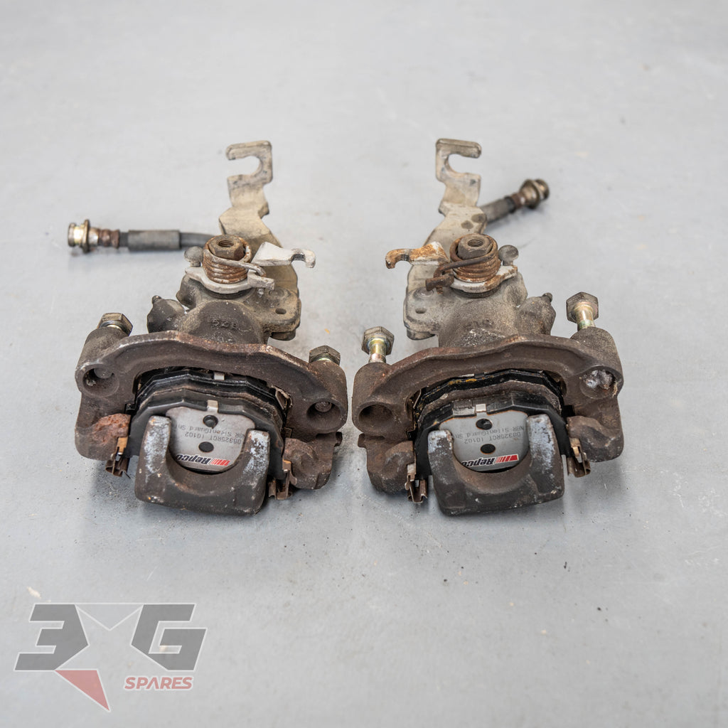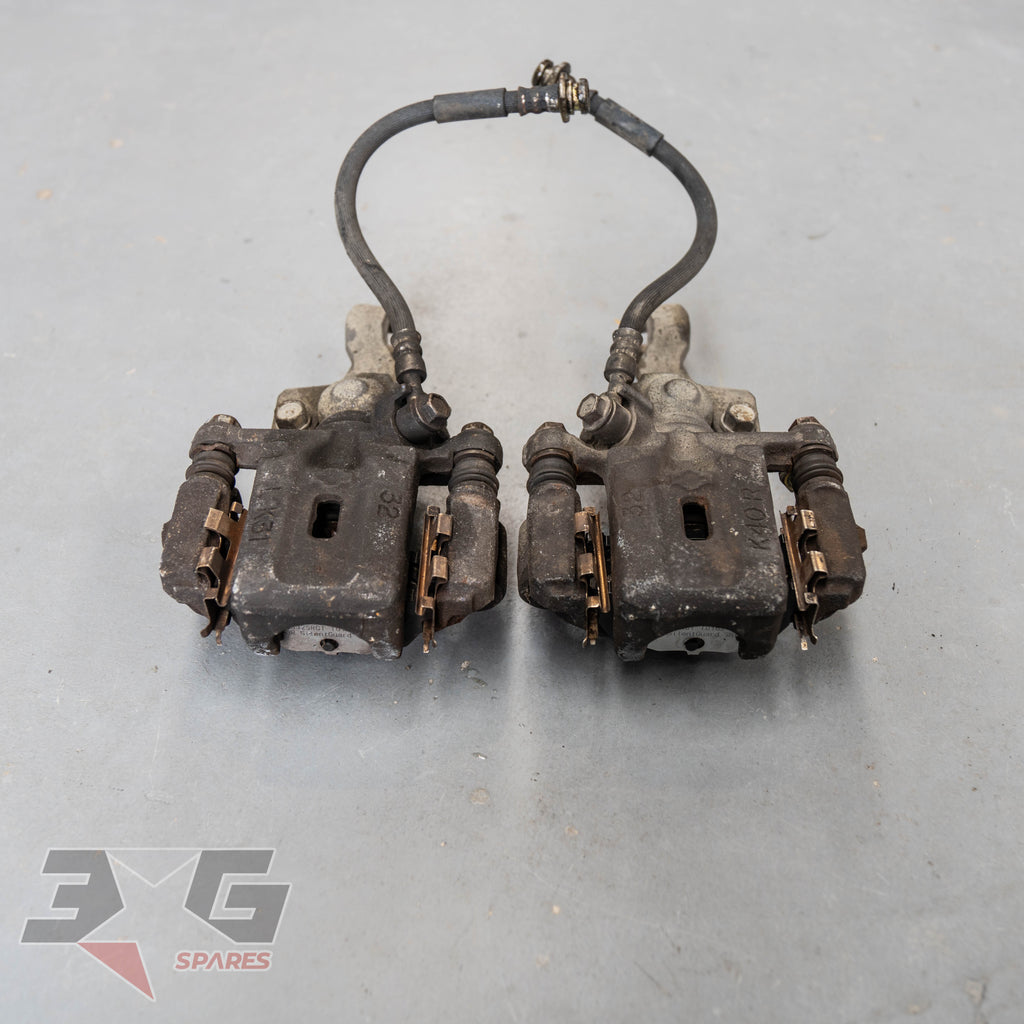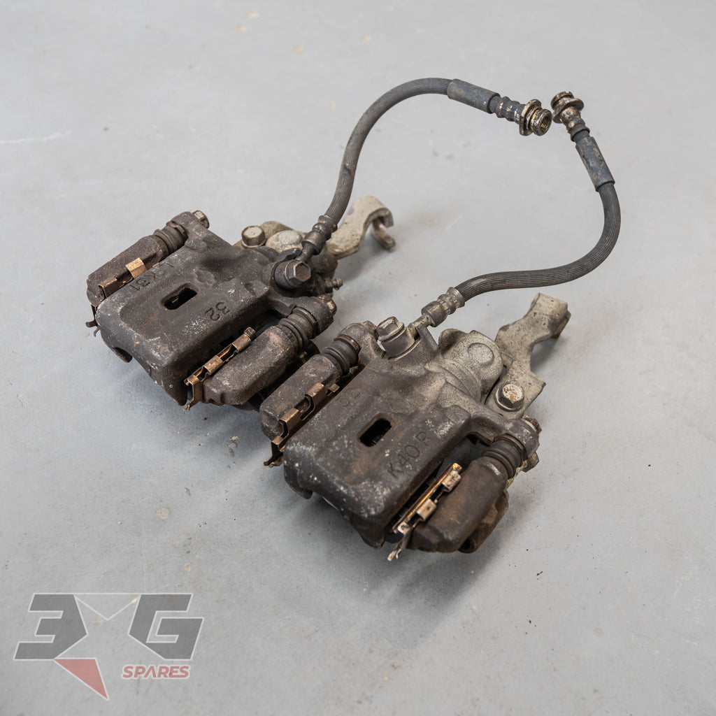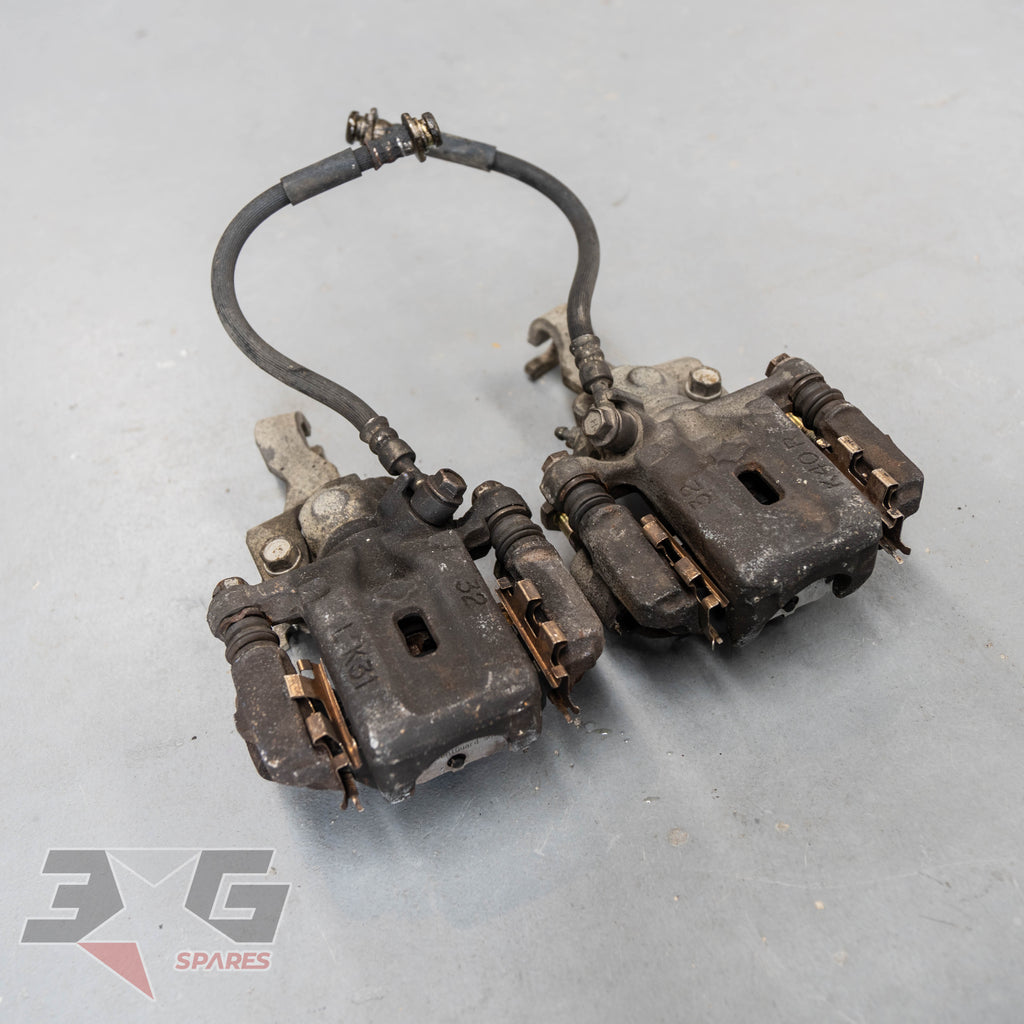 OEM factory rear brake calipers as removed from a S14 chassis Nissan Silvia, years 1993 - 1998Included is;Single piston factory brake calipersUsed brake padsUsed brake linesCondition: Good used condition as pictured, tested and verified working well prior to removal from the vehicle.