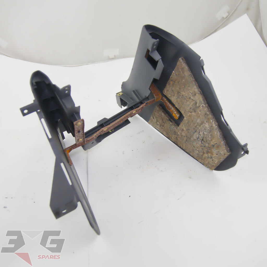OEM factory lower center dash console, as removed from a R34 chassis Nissan Skyline GT-t Sedan, years 1998 - August 2000.