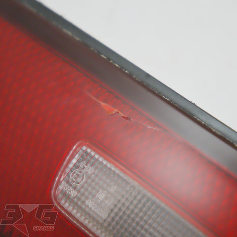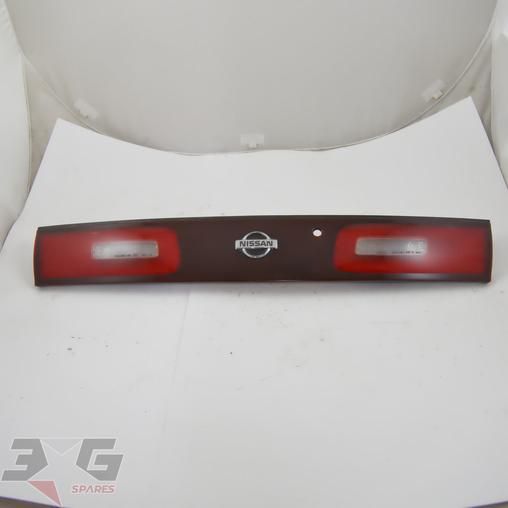 OEM factory rear center garnish, as removed from an S14 chassis Nissan Silvia, years 1993 - 1996.Condition: Average used condition as pictured. There is a crack on the left side of the garnish as shown in photos 12-14. There are also other light scratches and marks across the garnish as shown in the photos some of these are difficult to photograph.