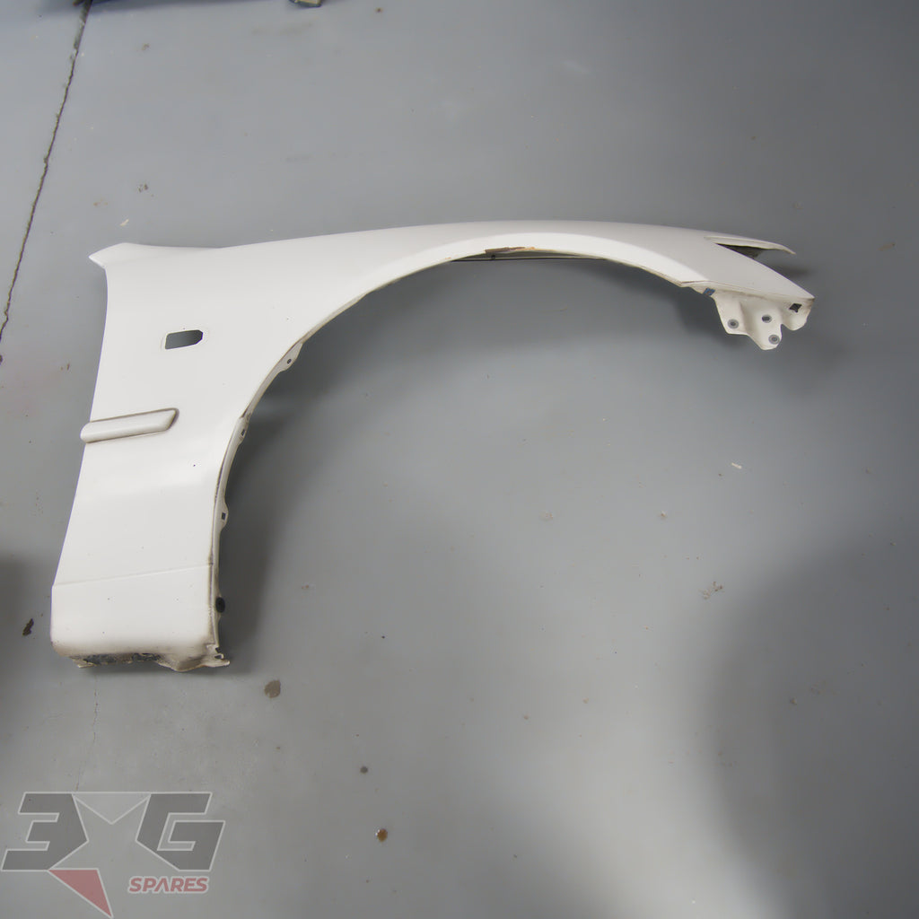 OEM factory pre-facelift right side front guard or fender, as removed from a SXE10 chassis Toyota Altezza, years 1998 - 2001.Please NOTE: This suits vehicles with factory NON HID headlights, both sedan and wagon.Condition: Good used condition as pictured. There are a some scratches in the paint finish. One area at the top of the wheel well which has missing paint as can be seen in photo 6 & 7. There is also a small bend near the bottom of the guard where the inner liner attaches.