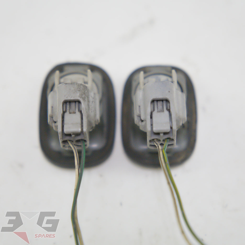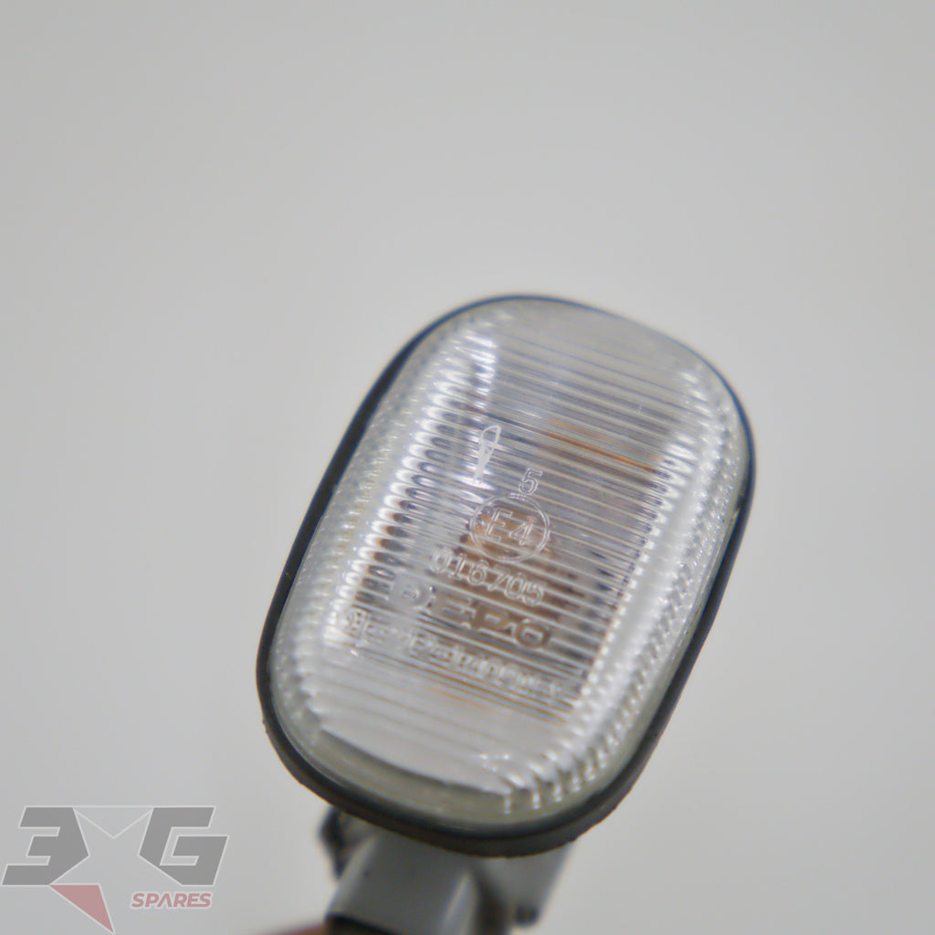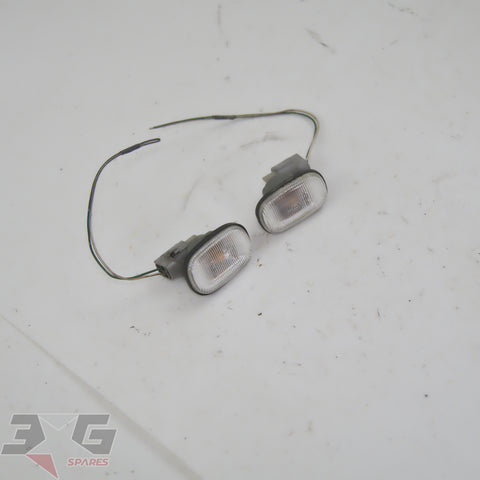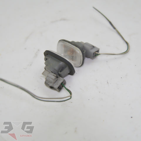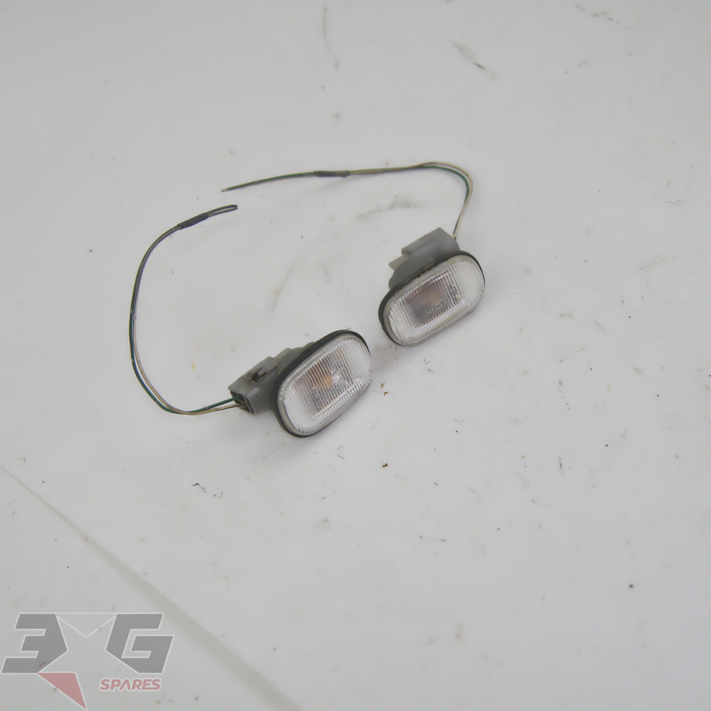 Aftermarket Depo branded left and right side clear lens side marker pair, as removed from an AE111 chassis Toyota Corolla Levin, years 1995 - 2000.