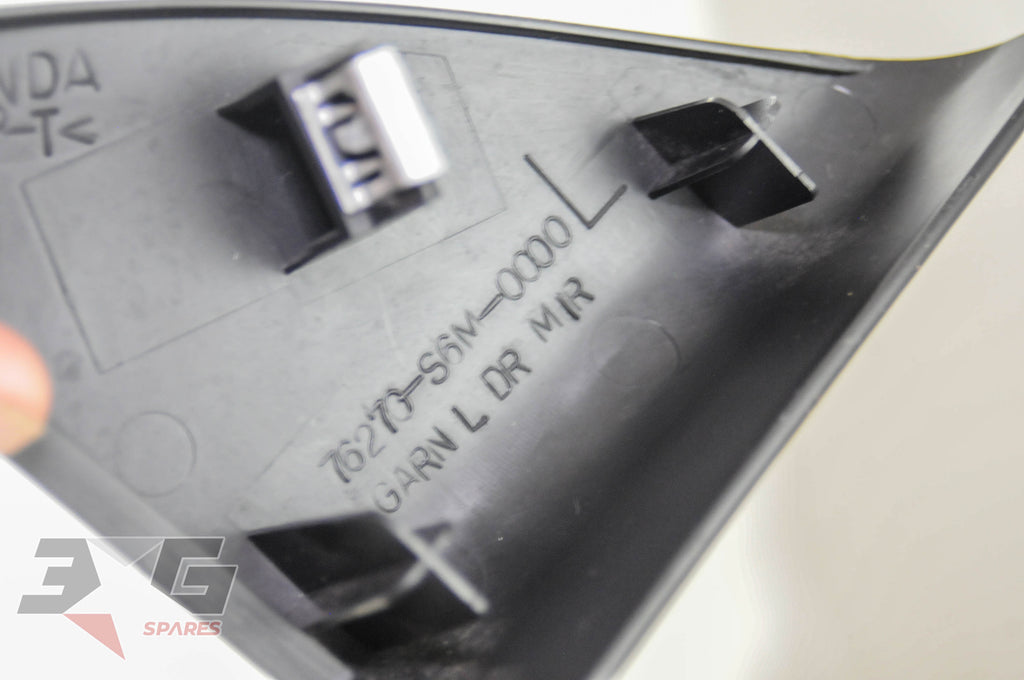 OEM factory left and right side interior mirror bolt covers, removed from a Japanese import DC5 chassis Honda Integra Type R, years 2001 - 2006.