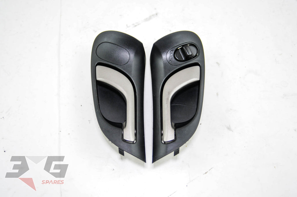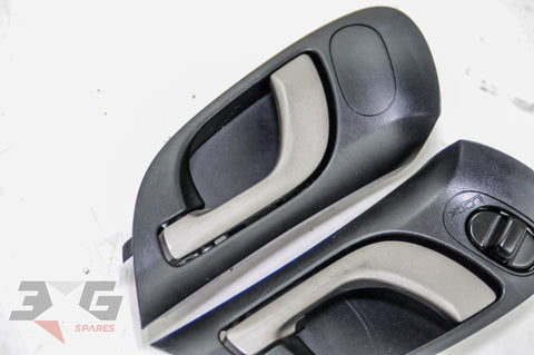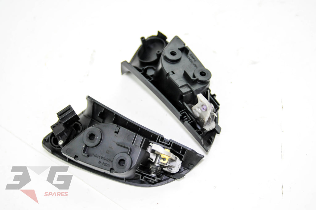 OEM factory left and right interior door handles, as removed from a Honda Integra DC5, years 2001 -2006.