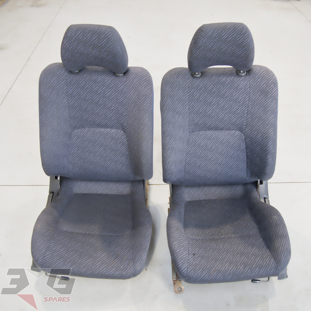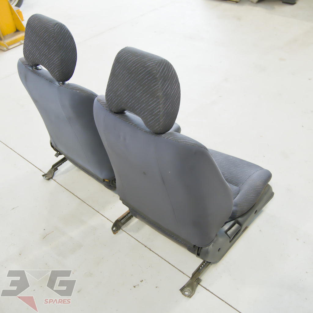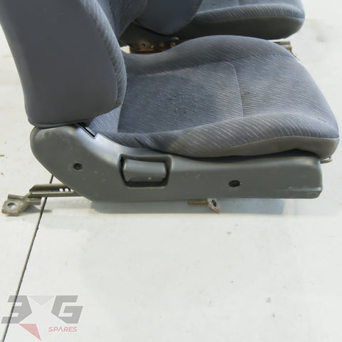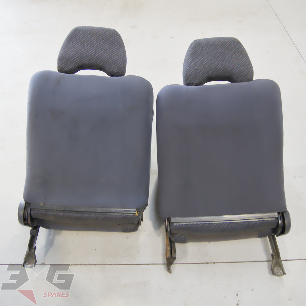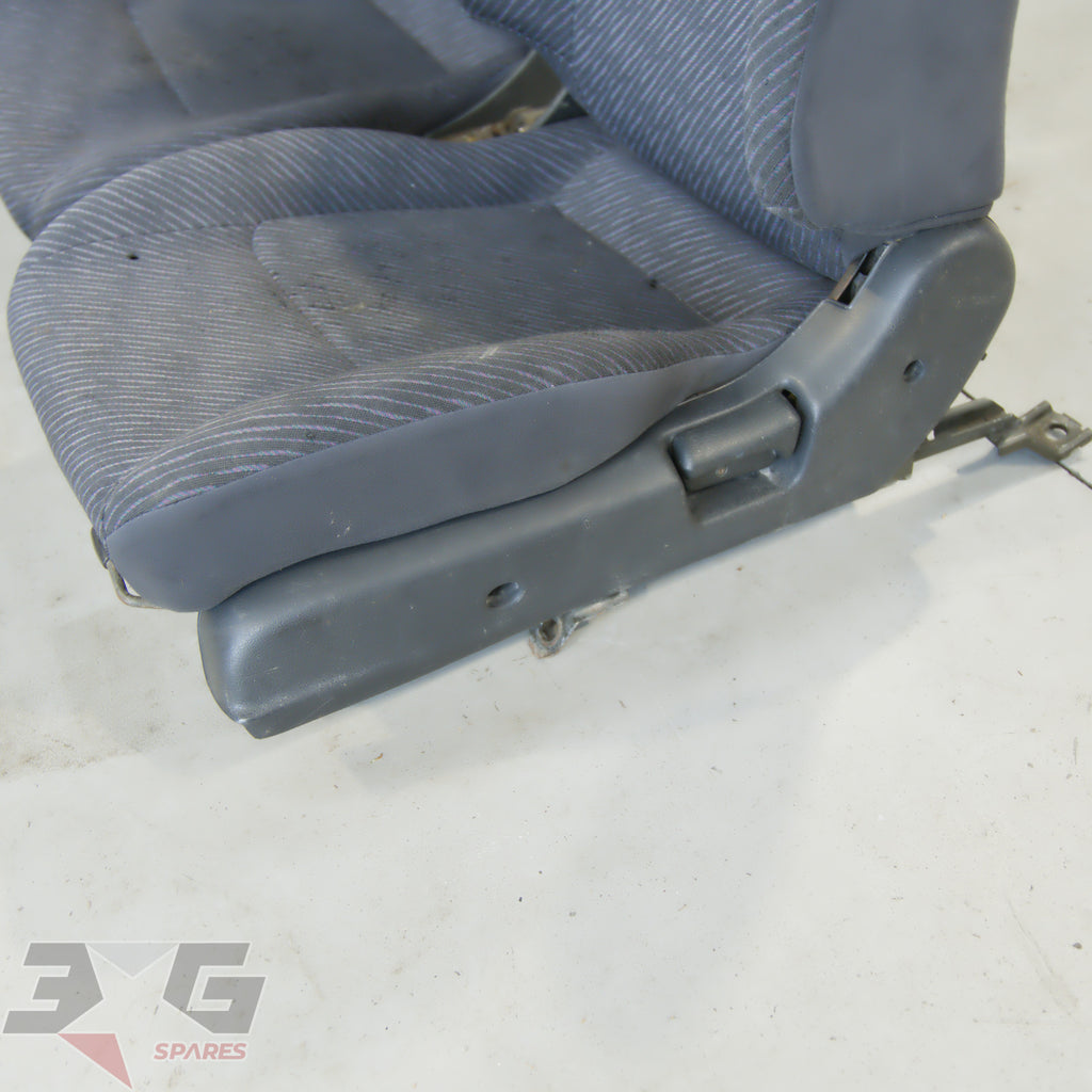 OEM factory pair of front seats as removed from a zenki or pre facelift S14 chassis Nissan Silvia, years 1993 - 1996.Condition: Good used condition as pictured. There are some marks and wear to the lower base fabric as shown in the photos. The left or passenger seat has a couple of burns as can be seen in photos 12-14.