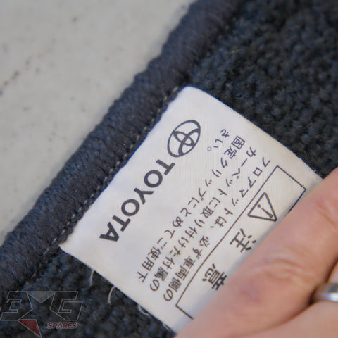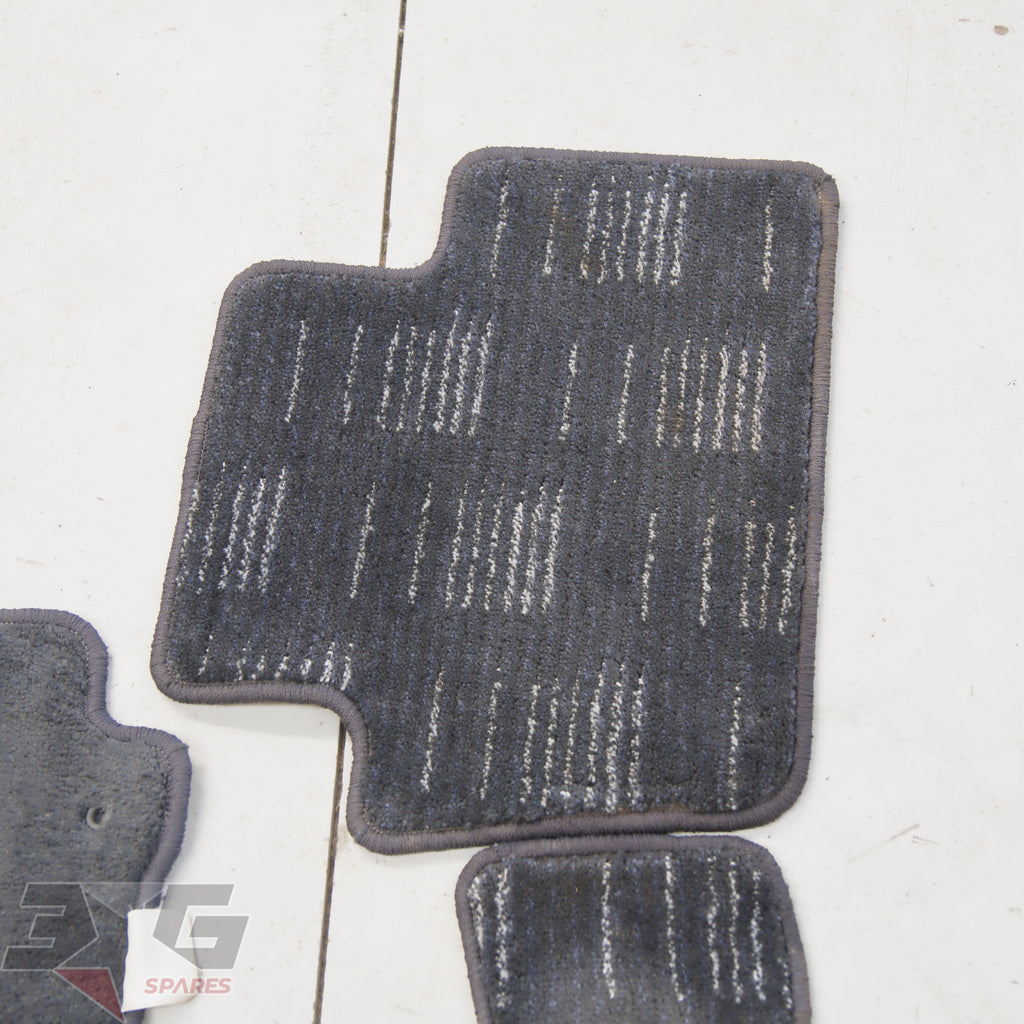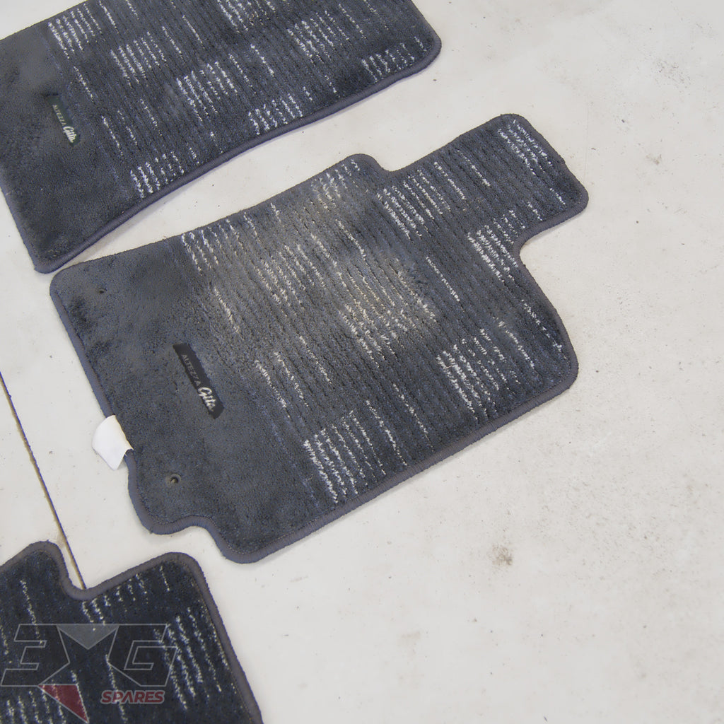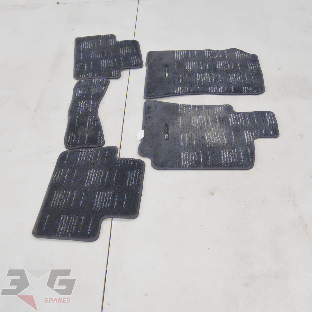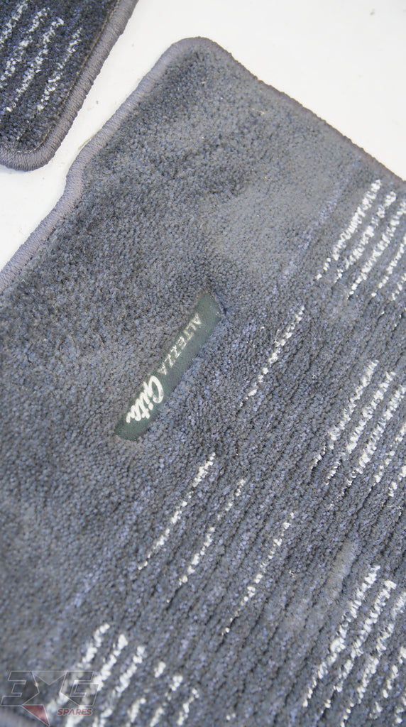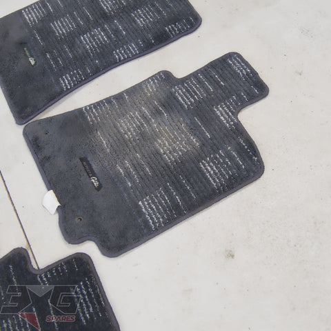 OEM factory front and rear floor mat set, as removed from a GXE10 chassis Toyota Altezza Sedan, years 1998 - 2005.Condition: Good used condition as pictured, there is some light wear and stains as shown in the photos. There is wear on the logos and on the drivers side mat as shown in the photos.
