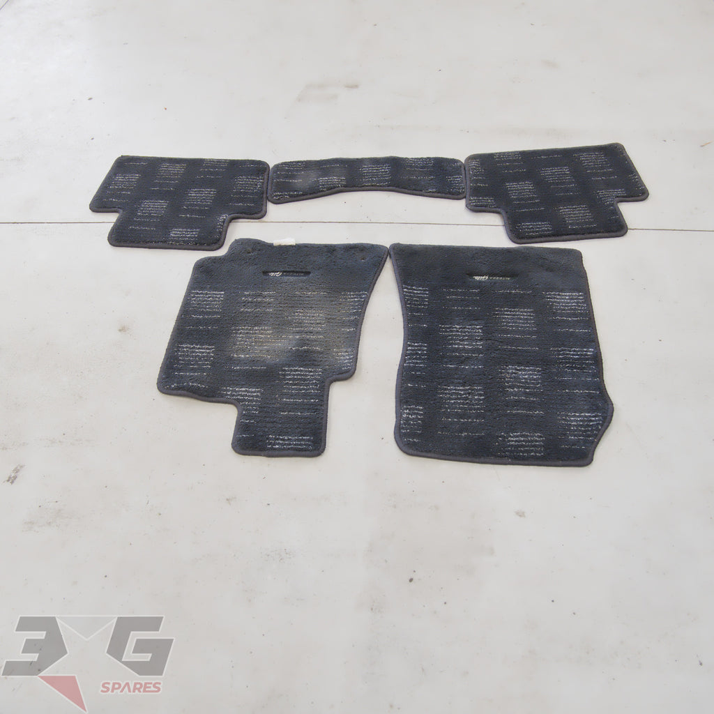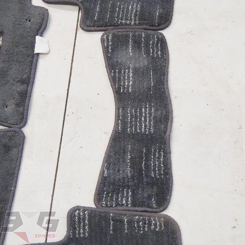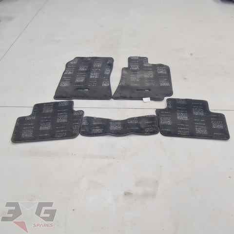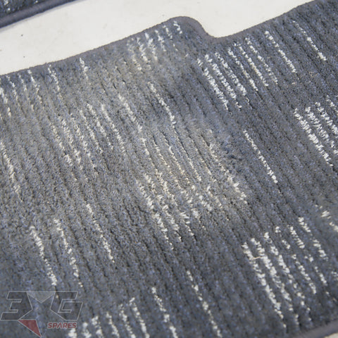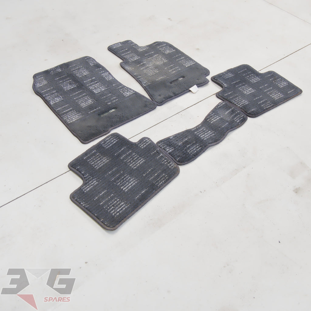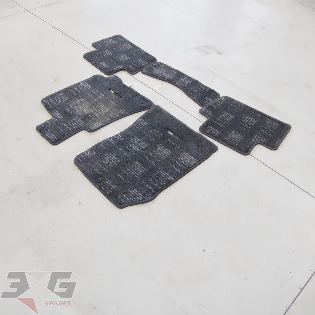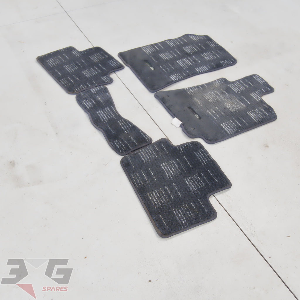 OEM factory front and rear floor mat set, as removed from a GXE10 chassis Toyota Altezza Sedan, years 1998 - 2005.Condition: Good used condition as pictured, there is some light wear and stains as shown in the photos. There is wear on the logos and on the drivers side mat as shown in the photos.