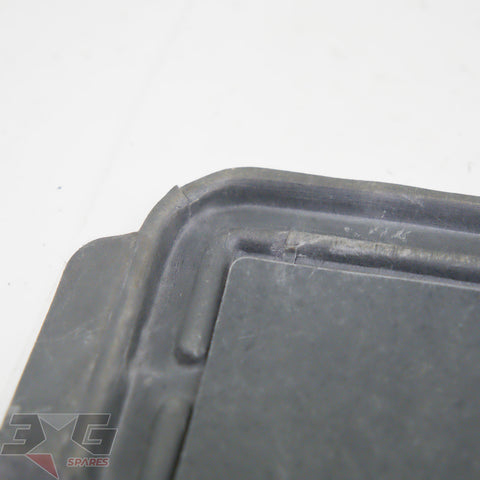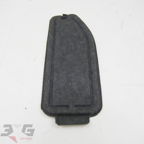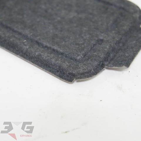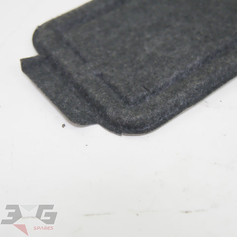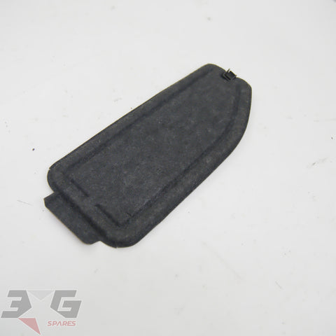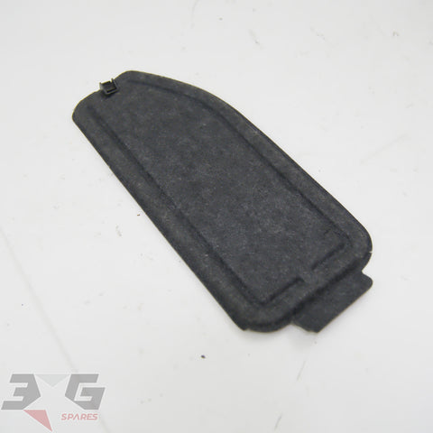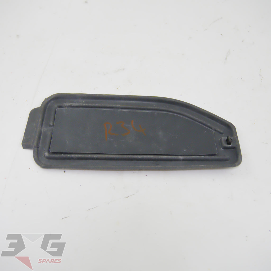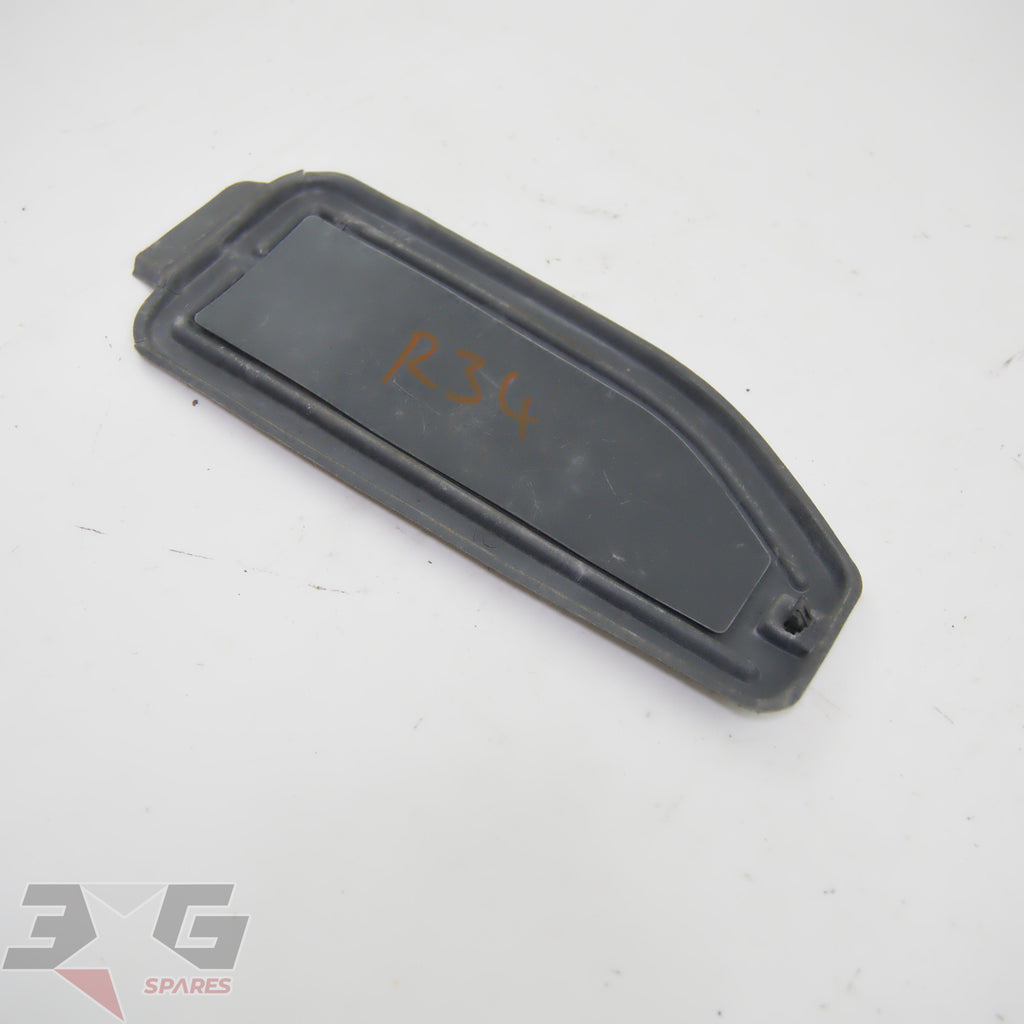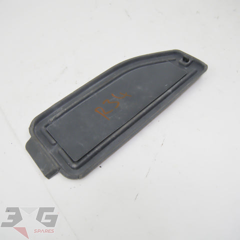 OEM factory left or passenger side trunk / boot lining trim finisher which covers over the jack opening on the side panel, as removed from a R34 chassis Nissan Skyline Coupe, years 1998 – 2002.Please NOTE: this does not suit BNR34 Skyline GT-R.Condition: Good used condition as pictured.