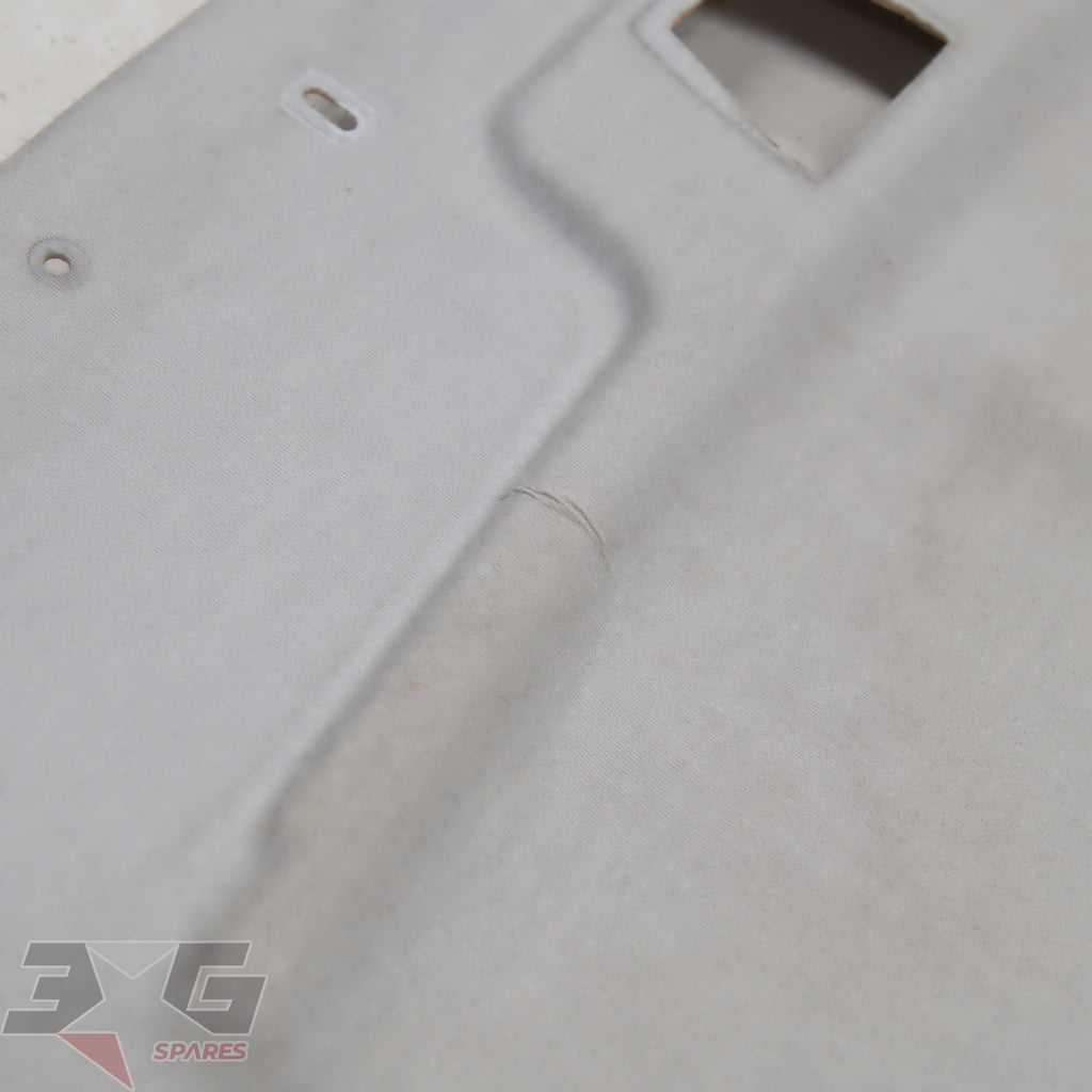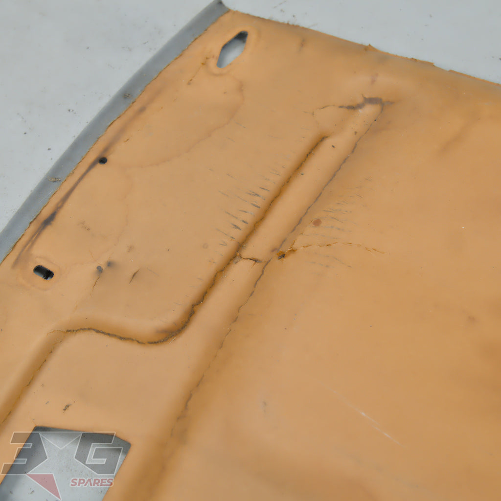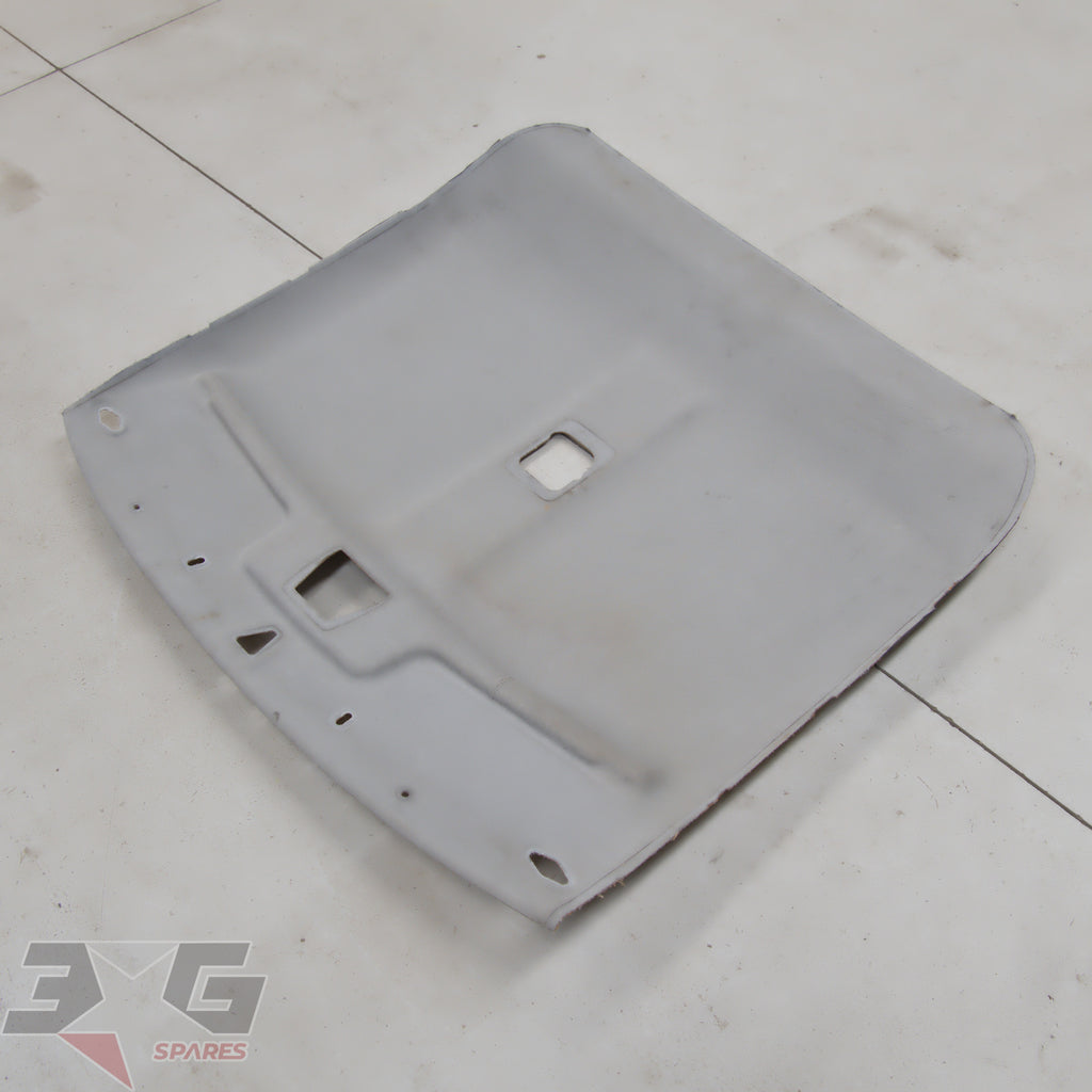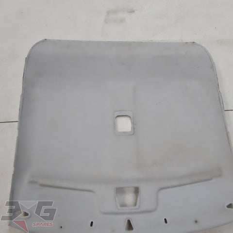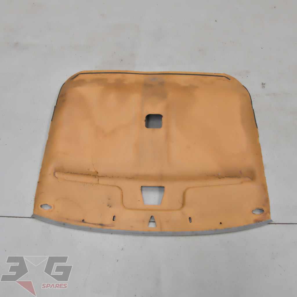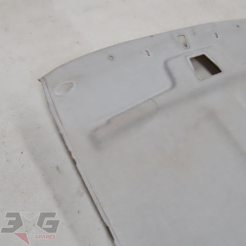 OEM factory interior roof or head lining, as removed from a early or pre facelift S13 chassis Nissan 180SX, years 1989 - 1996.Main difference in year for this is the color, it would physically fit all just the later vehicles have darker headlining.Condition: Used condition with some marks and stains as pictured. There is damage to the back of the headlining from when the vehicle was in a crash which has created creases next to where the sunvisor's mount as shown in photo's 16 & 17.