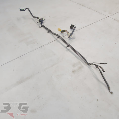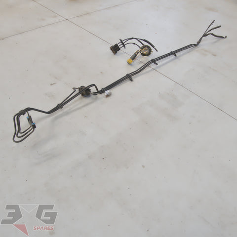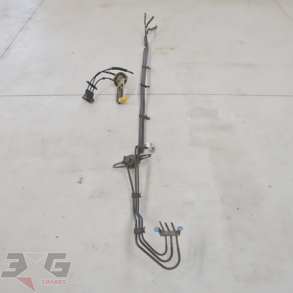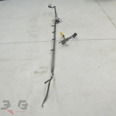 OEM factory fuel feed & return line assembly plus turbo type fuel pump cradle as removed from a JZX100 chassis Toyota Chaser Tourer V with 1JZ-GTE engine, years 1996–2001.These will also suit both JZX100 Mark II & CrestraThe return line including pump hat need to be added when converting a non turbo body to a turbo 1JZ or 2JZ engine.Condition: Good used condition as pictured all was working when removed from the vehicle. There is some damage to the mounting plastic where the fuel lines run out through the boot floor as can be seen in the photos.