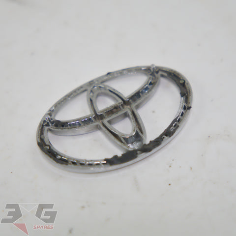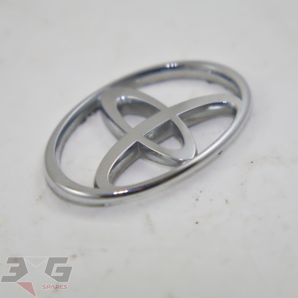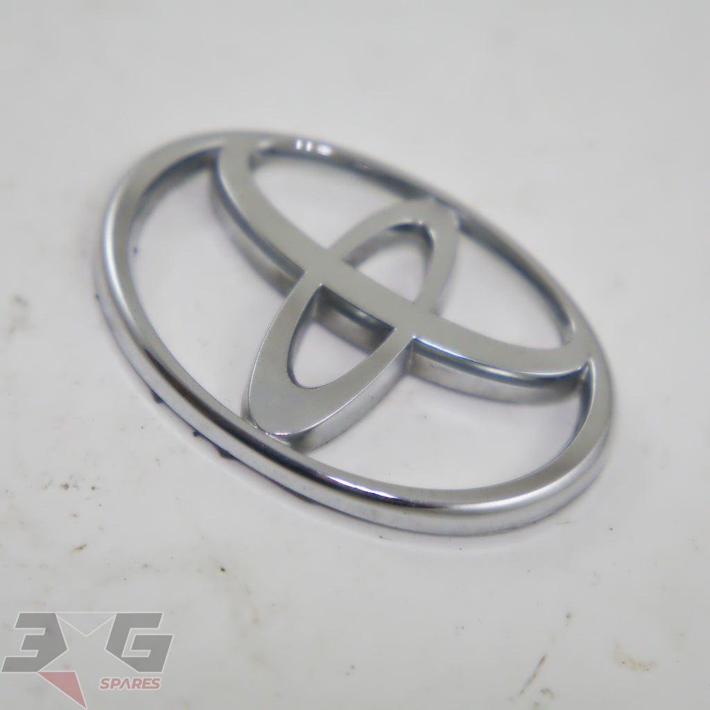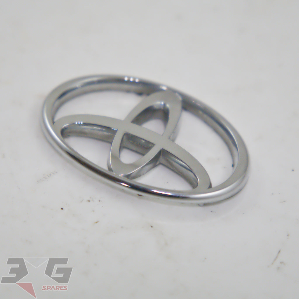 OEM factory rear trunk or boot lid emblem in silver finish, as removed from a JZX100 chassis Toyota Chaser Tourer V, years 1996–2001.