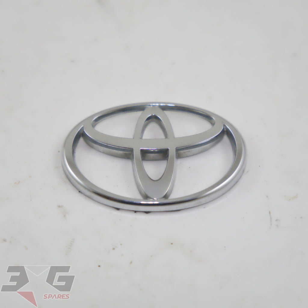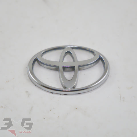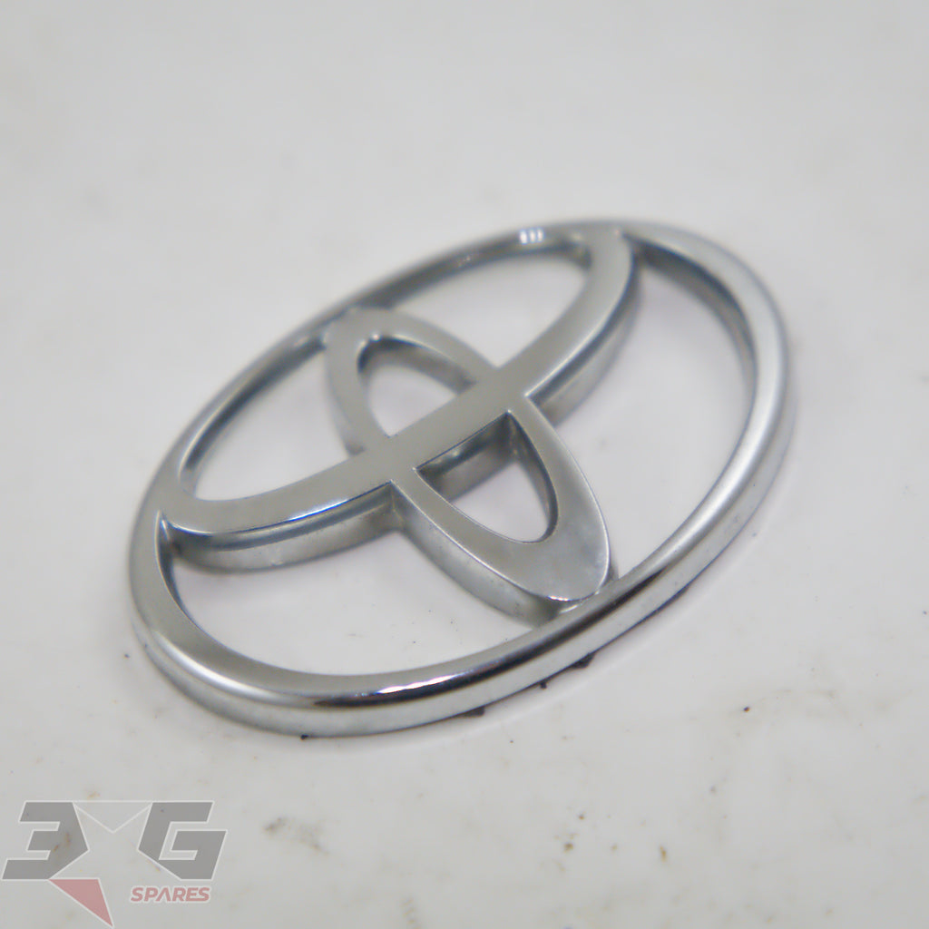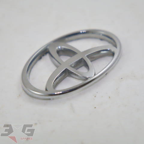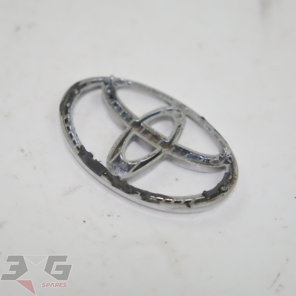 OEM factory rear trunk or boot lid emblem in silver finish, as removed from a JZX100 chassis Toyota Chaser Tourer V, years 1996–2001.